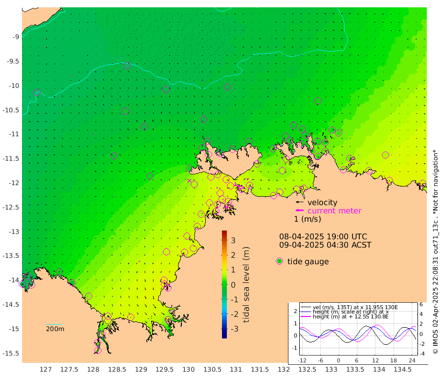 37cm/s 80T +4cm/s rms + 6cm/s 51T. Darwin_C1 52m 28cm/s 93T +4cm/s rms + 7cm/s -161T. Darwin_CW1 22m 30cm/s 72T +4cm/s rms + 8cm/s 61T. Darwin_CW2 34m 29cm/s 35T +3cm/s rms + 9cm/s 98T. Darwin_CW3 22m 42cm/s 89T +5cm/s rms + 7cm/s 88T. Darwin_C3 56m 15cm/s 65T +2cm/s rms + 9cm/s -126T. Darwin_CTbW 22m 3cm/s -19T +9cm/s rms + 2cm/s -110T. NWSLYN 196m 9cm/s 78T +1cm/s rms + 1cm/s -47T. DARBGF 30m 4cm/s -89T +7cm/s rms + 2cm/s -137T. ITFTIS 464m 5cm/s -63T +9cm/s rms + 1cm/s 74T. ITFMHB 146m 10cm/s -175T +4cm/s rms + 1cm/s -134T. ITFJBG 61m 5cm/s -105T +6cm/s rms + 4cm/s 121T. ITFFTB 108m 8cm/s 116T +4cm/s rms + 3cm/s 80T. NRSDAR 19m -58cm Carronade Island -63cm Guy Point -70cm Napier Broome Bay -7cm Lesueur Island 50cm Reveley Island -20cm Rocky Island 84cm Cape Domett 80cm Lacrosse Island 82cm Adolphus Island 44cm Pender Point 38cm Wyndham -28cm The Boxers -12cm Unnamed Shoal -70cm Loxton Shoal 106cm Pelican Island -35cm Calder Shoal -47cm Evans Shoal 102cm Quoin Island 98cm Port Keats 113cm Jones Point 122cm Catfish Island 68cm Cape Scott Offshore 94cm Cape Ford 82cm Anson Bay -34cm Goodrich Bank 73cm Peron Island North 71cm Point Jenny 67cm Native Point 85cm Fish Reef 81cm Tapa Bay 20cm Point Fawcett (Offshore) 96cm Burge Point 73cm Munkunuwa 59cm Beagle A 92cm Parsons Bank 92cm Fenton Patches -40cm Lynedoch Bank 92cm Hancox Shoal Area 95cm Nightcliff 101cm Darwin 87cm Charles Point Patches 83cm Glyde Point 82cm Chambers Bay 83cm Point Stuart 80cm Cape Hotham 65cm Christine Reef 88cm West Alligator Head 87cm East Field Island 65cm Two Hills Bay 10cm Newby Shoal 61cm Camp Point 78cm Medina Inlet South 4cm South Barlow Point -10cm St. Asaph Bay -30cm Cape Van Dieman -31cm Snake Bay -23cm Cache Point -70cm Echo Shoal -11cm Point Jahleel (Off) 24cm Cape Don 0cm Port Essington -1cm Smith Point - West -1cm NW Peacock Island -13cm North Of Jones Shoal -2cm Peacock Island 22cm Point David 4cm D'urville Point 1cm Money Shoal 27cm Copeland Island 38cm Cape Cockburn 19cm One Tree Point 32cm Hogmany Shoal 18cm New Year Island - West 21cm Grant Island 45cm Aurari Bay 57cm Cuthbert Point 43cm North Goulburn Island 64cm Paxie Shoal 85cm Entrance Island 117cm Yabooma Island