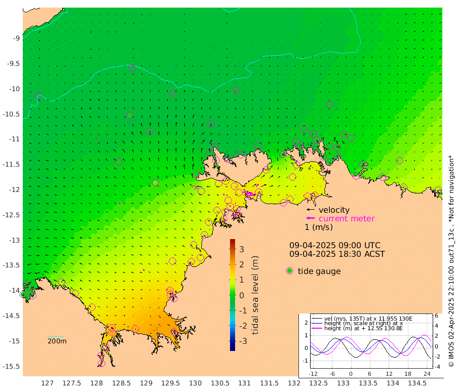 49cm/s 78T +4cm/s rms + 6cm/s 51T. Darwin_C1 52m 59cm/s 92T +4cm/s rms + 7cm/s -161T. Darwin_CW1 22m 43cm/s 72T +4cm/s rms + 8cm/s 61T. Darwin_CW2 34m 44cm/s 43T +3cm/s rms + 9cm/s 98T. Darwin_CW3 22m 76cm/s 90T +5cm/s rms + 7cm/s 88T. Darwin_C3 56m 21cm/s 66T +2cm/s rms + 9cm/s -126T. Darwin_CTbW 22m 6cm/s -3T +9cm/s rms + 2cm/s -110T. NWSLYN 196m 18cm/s -70T +1cm/s rms + 1cm/s -47T. DARBGF 30m 6cm/s -45T +7cm/s rms + 2cm/s -137T. ITFTIS 464m 13cm/s -27T +9cm/s rms + 1cm/s 74T. ITFMHB 146m 18cm/s -52T +4cm/s rms + 1cm/s -134T. ITFJBG 61m 25cm/s -53T +6cm/s rms + 4cm/s 121T. ITFFTB 108m 26cm/s -48T +4cm/s rms + 3cm/s 80T. NRSDAR 19m 1cm Carronade Island 2cm Guy Point 8cm Napier Broome Bay 60cm Lesueur Island 121cm Reveley Island 75cm Rocky Island 195cm Cape Domett 170cm Lacrosse Island 208cm Adolphus Island 223cm Pender Point 216cm Wyndham 2cm The Boxers 5cm Unnamed Shoal -34cm Loxton Shoal 190cm Pelican Island -14cm Calder Shoal -35cm Evans Shoal 251cm Quoin Island 164cm Port Keats 169cm Jones Point 174cm Catfish Island 88cm Cape Scott Offshore 130cm Cape Ford 94cm Anson Bay -28cm Goodrich Bank 79cm Peron Island North 78cm Point Jenny 79cm Native Point 88cm Fish Reef 98cm Tapa Bay 13cm Point Fawcett (Offshore) 119cm Burge Point 89cm Munkunuwa 62cm Beagle A 107cm Parsons Bank 108cm Fenton Patches -28cm Lynedoch Bank 109cm Hancox Shoal Area 108cm Nightcliff 132cm Darwin 111cm Charles Point Patches 114cm Glyde Point 116cm Chambers Bay 123cm Point Stuart 103cm Cape Hotham 104cm Christine Reef 137cm West Alligator Head 147cm East Field Island 90cm Two Hills Bay 35cm Newby Shoal 100cm Camp Point 96cm Medina Inlet South 3cm South Barlow Point -11cm St. Asaph Bay -29cm Cape Van Dieman -27cm Snake Bay -26cm Cache Point -46cm Echo Shoal -12cm Point Jahleel (Off) 24cm Cape Don -11cm Port Essington -19cm Smith Point - West -19cm NW Peacock Island -30cm North Of Jones Shoal -10cm Peacock Island -3cm Point David -19cm D'urville Point -16cm Money Shoal -3cm Copeland Island -4cm Cape Cockburn -6cm One Tree Point 5cm Hogmany Shoal -2cm New Year Island - West 1cm Grant Island 9cm Aurari Bay 25cm Cuthbert Point 11cm North Goulburn Island 44cm Paxie Shoal 53cm Entrance Island 66cm Yabooma Island