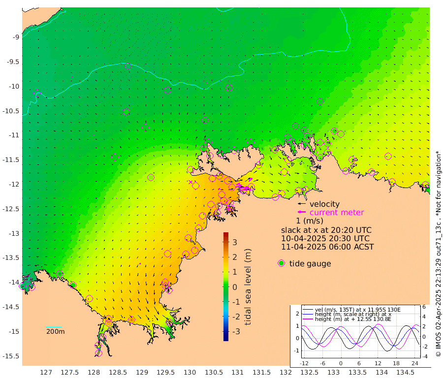 107cm/s 79T +4cm/s rms + 6cm/s 51T. Darwin_C1 52m 92cm/s 93T +4cm/s rms + 7cm/s -161T. Darwin_CW1 22m 82cm/s 72T +4cm/s rms + 8cm/s 61T. Darwin_CW2 34m 61cm/s 44T +3cm/s rms + 9cm/s 98T. Darwin_CW3 22m 129cm/s 89T +5cm/s rms + 7cm/s 88T. Darwin_C3 56m 48cm/s 66T +2cm/s rms + 9cm/s -126T. Darwin_CTbW 22m 4cm/s 4T +9cm/s rms + 2cm/s -110T. NWSLYN 196m 22cm/s 75T +1cm/s rms + 1cm/s -47T. DARBGF 30m 6cm/s -88T +7cm/s rms + 2cm/s -137T. ITFTIS 464m 7cm/s -94T +9cm/s rms + 1cm/s 74T. ITFMHB 146m 15cm/s -160T +4cm/s rms + 1cm/s -134T. ITFJBG 61m 9cm/s -102T +6cm/s rms + 4cm/s 121T. ITFFTB 108m 12cm/s 101T +4cm/s rms + 3cm/s 80T. NRSDAR 19m -80cm Carronade Island -81cm Guy Point -91cm Napier Broome Bay 20cm Lesueur Island 121cm Reveley Island 14cm Rocky Island 182cm Cape Domett 171cm Lacrosse Island 177cm Adolphus Island 114cm Pender Point 95cm Wyndham -7cm The Boxers 11cm Unnamed Shoal -64cm Loxton Shoal 212cm Pelican Island -15cm Calder Shoal -39cm Evans Shoal 226cm Quoin Island 203cm Port Keats 211cm Jones Point 197cm Catfish Island 154cm Cape Scott Offshore 179cm Cape Ford 177cm Anson Bay -22cm Goodrich Bank 158cm Peron Island North 146cm Point Jenny 142cm Native Point 168cm Fish Reef 170cm Tapa Bay 70cm Point Fawcett (Offshore) 187cm Burge Point 163cm Munkunuwa 122cm Beagle A 185cm Parsons Bank 175cm Fenton Patches -32cm Lynedoch Bank 182cm Hancox Shoal Area 190cm Nightcliff 206cm Darwin 184cm Charles Point Patches 150cm Glyde Point 125cm Chambers Bay 122cm Point Stuart 136cm Cape Hotham 103cm Christine Reef 130cm West Alligator Head 118cm East Field Island 107cm Two Hills Bay 52cm Newby Shoal 102cm Camp Point 170cm Medina Inlet South 47cm South Barlow Point 22cm St. Asaph Bay -17cm Cape Van Dieman -12cm Snake Bay -11cm Cache Point -75cm Echo Shoal 8cm Point Jahleel (Off) 54cm Cape Don 18cm Port Essington 16cm Smith Point - West 13cm NW Peacock Island 2cm North Of Jones Shoal 3cm Peacock Island 38cm Point David 19cm D'urville Point 11cm Money Shoal 42cm Copeland Island 58cm Cape Cockburn 37cm One Tree Point 52cm Hogmany Shoal 33cm New Year Island - West 38cm Grant Island 62cm Aurari Bay 73cm Cuthbert Point 61cm North Goulburn Island 87cm Paxie Shoal 103cm Entrance Island 134cm Yabooma Island