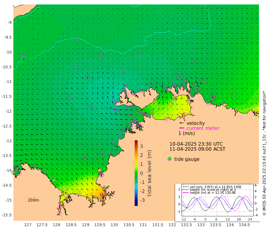 59cm/s -104T +4cm/s rms + 6cm/s 51T. Darwin_C1 52m 31cm/s -86T +4cm/s rms + 7cm/s -161T. Darwin_CW1 22m 39cm/s -109T +4cm/s rms + 8cm/s 61T. Darwin_CW2 34m 13cm/s -86T +3cm/s rms + 9cm/s 98T. Darwin_CW3 22m 32cm/s -95T +5cm/s rms + 7cm/s 88T. Darwin_C3 56m 44cm/s -116T +2cm/s rms + 9cm/s -126T. Darwin_CTbW 22m 9cm/s -29T +9cm/s rms + 2cm/s -110T. NWSLYN 196m 58cm/s -87T +1cm/s rms + 1cm/s -47T. DARBGF 30m 8cm/s -115T +7cm/s rms + 2cm/s -137T. ITFTIS 464m 13cm/s -40T +9cm/s rms + 1cm/s 74T. ITFMHB 146m 38cm/s -35T +4cm/s rms + 1cm/s -134T. ITFJBG 61m 40cm/s -53T +6cm/s rms + 4cm/s 121T. ITFFTB 108m 59cm/s -56T +4cm/s rms + 3cm/s 80T. NRSDAR 19m 29cm Carronade Island 35cm Guy Point 22cm Napier Broome Bay 19cm Lesueur Island 40cm Reveley Island 8cm Rocky Island 78cm Cape Domett 65cm Lacrosse Island 132cm Adolphus Island 180cm Pender Point 210cm Wyndham -62cm The Boxers -84cm Unnamed Shoal -46cm Loxton Shoal 58cm Pelican Island -65cm Calder Shoal -51cm Evans Shoal 178cm Quoin Island 7cm Port Keats 5cm Jones Point 145cm Catfish Island -51cm Cape Scott Offshore -71cm Cape Ford -66cm Anson Bay -64cm Goodrich Bank -56cm Peron Island North -75cm Point Jenny -78cm Native Point -68cm Fish Reef -71cm Tapa Bay -89cm Point Fawcett (Offshore) -50cm Burge Point -74cm Munkunuwa -76cm Beagle A -48cm Parsons Bank -55cm Fenton Patches -51cm Lynedoch Bank -36cm Hancox Shoal Area -50cm Nightcliff -40cm Darwin -58cm Charles Point Patches 9cm Glyde Point 70cm Chambers Bay 94cm Point Stuart 34cm Cape Hotham 68cm Christine Reef 111cm West Alligator Head 143cm East Field Island 50cm Two Hills Bay -65cm Newby Shoal 45cm Camp Point -67cm Medina Inlet South -86cm South Barlow Point -82cm St. Asaph Bay -70cm Cape Van Dieman -71cm Snake Bay -62cm Cache Point -34cm Echo Shoal -48cm Point Jahleel (Off) -26cm Cape Don -47cm Port Essington -50cm Smith Point - West -44cm NW Peacock Island -49cm North Of Jones Shoal -17cm Peacock Island -29cm Point David -47cm D'urville Point -37cm Money Shoal -24cm Copeland Island -26cm Cape Cockburn -29cm One Tree Point -18cm Hogmany Shoal -29cm New Year Island - West -24cm Grant Island -13cm Aurari Bay 7cm Cuthbert Point -13cm North Goulburn Island 17cm Paxie Shoal 37cm Entrance Island 72cm Yabooma Island