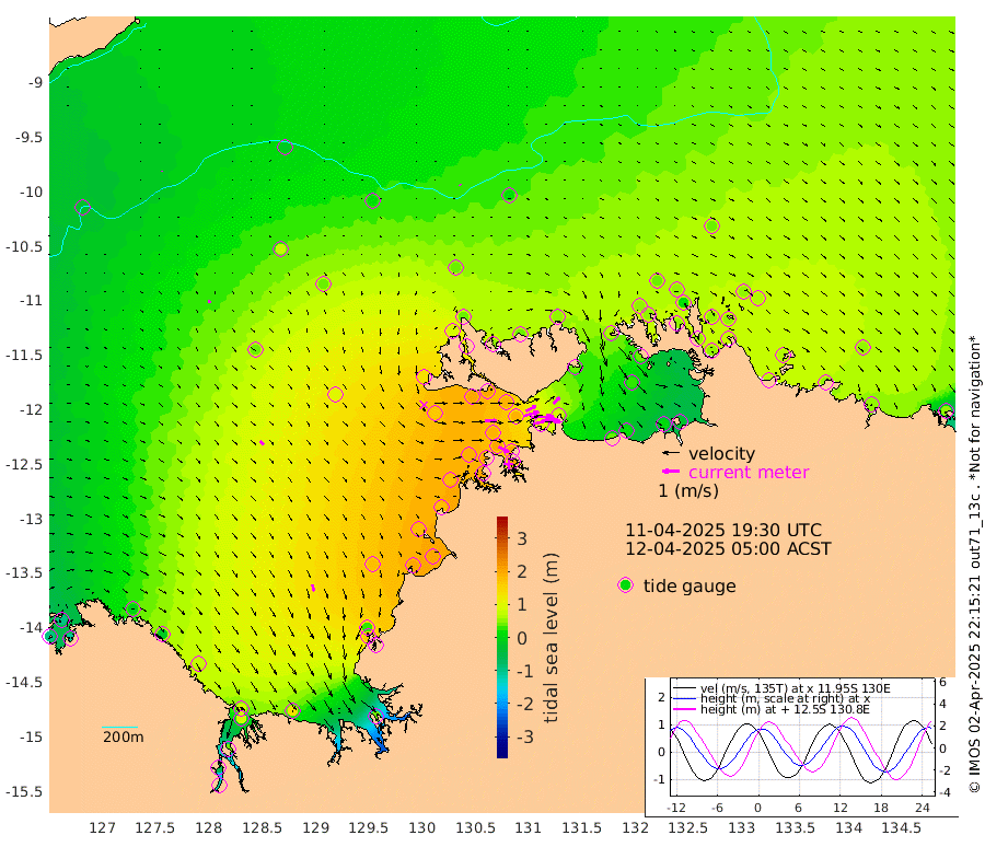 127cm/s 78T +4cm/s rms + 6cm/s 51T. Darwin_C1 52m 104cm/s 89T +4cm/s rms + 7cm/s -161T. Darwin_CW1 22m 91cm/s 74T +4cm/s rms + 8cm/s 61T. Darwin_CW2 34m 54cm/s 47T +3cm/s rms + 9cm/s 98T. Darwin_CW3 22m 129cm/s 88T +5cm/s rms + 7cm/s 88T. Darwin_C3 56m 66cm/s 65T +2cm/s rms + 9cm/s -126T. Darwin_CTbW 22m 5cm/s 128T +9cm/s rms + 2cm/s -110T. NWSLYN 196m 68cm/s 89T +1cm/s rms + 1cm/s -47T. DARBGF 30m 2cm/s 31T +7cm/s rms + 2cm/s -137T. ITFTIS 464m 12cm/s 173T +9cm/s rms + 1cm/s 74T. ITFMHB 146m 39cm/s 162T +4cm/s rms + 1cm/s -134T. ITFJBG 61m 30cm/s 140T +6cm/s rms + 4cm/s 121T. ITFFTB 108m 68cm/s 118T +4cm/s rms + 3cm/s 80T. NRSDAR 19m -94cm Carronade Island -96cm Guy Point -103cm Napier Broome Bay -1cm Lesueur Island 70cm Reveley Island -11cm Rocky Island 83cm Cape Domett 88cm Lacrosse Island 36cm Adolphus Island -62cm Pender Point -103cm Wyndham 40cm The Boxers 70cm Unnamed Shoal -13cm Loxton Shoal 126cm Pelican Island 43cm Calder Shoal 13cm Evans Shoal 42cm Quoin Island 159cm Port Keats 163cm Jones Point 28cm Catfish Island 171cm Cape Scott Offshore 202cm Cape Ford 201cm Anson Bay 35cm Goodrich Bank 178cm Peron Island North 180cm Point Jenny 178cm Native Point 190cm Fish Reef 198cm Tapa Bay 132cm Point Fawcett (Offshore) 192cm Burge Point 196cm Munkunuwa 160cm Beagle A 190cm Parsons Bank 185cm Fenton Patches 16cm Lynedoch Bank 181cm Hancox Shoal Area 201cm Nightcliff 201cm Darwin 198cm Charles Point Patches 110cm Glyde Point 40cm Chambers Bay 16cm Point Stuart 80cm Cape Hotham 25cm Christine Reef 8cm West Alligator Head -30cm East Field Island 42cm Two Hills Bay 90cm Newby Shoal 41cm Camp Point 194cm Medina Inlet South 110cm South Barlow Point 89cm St. Asaph Bay 44cm Cape Van Dieman 49cm Snake Bay 43cm Cache Point -29cm Echo Shoal 47cm Point Jahleel (Off) 62cm Cape Don 52cm Port Essington 54cm Smith Point - West 46cm NW Peacock Island 45cm North Of Jones Shoal 17cm Peacock Island 54cm Point David 54cm D'urville Point 38cm Money Shoal 54cm Copeland Island 68cm Cape Cockburn 53cm One Tree Point 57cm Hogmany Shoal 48cm New Year Island - West 49cm Grant Island 58cm Aurari Bay 48cm Cuthbert Point 57cm North Goulburn Island 52cm Paxie Shoal 50cm Entrance Island 50cm Yabooma Island