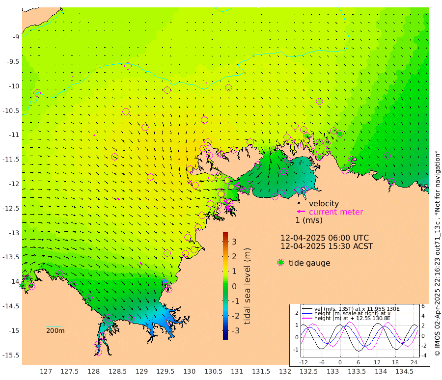 57cm/s 78T +4cm/s rms + 6cm/s 51T. Darwin_C1 52m 37cm/s 81T +4cm/s rms + 7cm/s -161T. Darwin_CW1 22m 30cm/s 75T +4cm/s rms + 8cm/s 61T. Darwin_CW2 34m 11cm/s 179T +3cm/s rms + 9cm/s 98T. Darwin_CW3 22m 12cm/s 77T +5cm/s rms + 7cm/s 88T. Darwin_C3 56m 55cm/s 63T +2cm/s rms + 9cm/s -126T. Darwin_CTbW 22m 6cm/s 142T +9cm/s rms + 2cm/s -110T. NWSLYN 196m 67cm/s 94T +1cm/s rms + 1cm/s -47T. DARBGF 30m 10cm/s 61T +7cm/s rms + 2cm/s -137T. ITFTIS 464m 16cm/s 133T +9cm/s rms + 1cm/s 74T. ITFMHB 146m 46cm/s 143T +4cm/s rms + 1cm/s -134T. ITFJBG 61m 46cm/s 124T +6cm/s rms + 4cm/s 121T. ITFFTB 108m 70cm/s 124T +4cm/s rms + 3cm/s 80T. NRSDAR 19m -13cm Carronade Island -22cm Guy Point -10cm Napier Broome Bay 0cm Lesueur Island -35cm Reveley Island 7cm Rocky Island -73cm Cape Domett -57cm Lacrosse Island -123cm Adolphus Island -202cm Pender Point -228cm Wyndham 86cm The Boxers 101cm Unnamed Shoal 70cm Loxton Shoal -63cm Pelican Island 94cm Calder Shoal 72cm Evans Shoal -190cm Quoin Island 16cm Port Keats -1cm Jones Point -191cm Catfish Island 66cm Cape Scott Offshore 111cm Cape Ford 82cm Anson Bay 87cm Goodrich Bank 80cm Peron Island North 102cm Point Jenny 105cm Native Point 97cm Fish Reef 92cm Tapa Bay 114cm Point Fawcett (Offshore) 86cm Burge Point 95cm Munkunuwa 118cm Beagle A 72cm Parsons Bank 95cm Fenton Patches 72cm Lynedoch Bank 56cm Hancox Shoal Area 82cm Nightcliff 65cm Darwin 83cm Charles Point Patches 4cm Glyde Point -74cm Chambers Bay -101cm Point Stuart -26cm Cape Hotham -61cm Christine Reef -121cm West Alligator Head -154cm East Field Island -48cm Two Hills Bay 118cm Newby Shoal -39cm Camp Point 93cm Medina Inlet South 117cm South Barlow Point 110cm St. Asaph Bay 93cm Cape Van Dieman 95cm Snake Bay 86cm Cache Point 55cm Echo Shoal 70cm Point Jahleel (Off) 42cm Cape Don 65cm Port Essington 71cm Smith Point - West 64cm NW Peacock Island 71cm North Of Jones Shoal 24cm Peacock Island 37cm Point David 68cm D'urville Point 56cm Money Shoal 32cm Copeland Island 46cm Cape Cockburn 42cm One Tree Point 21cm Hogmany Shoal 43cm New Year Island - West 36cm Grant Island 21cm Aurari Bay -3cm Cuthbert Point 21cm North Goulburn Island -25cm Paxie Shoal -41cm Entrance Island -82cm Yabooma Island