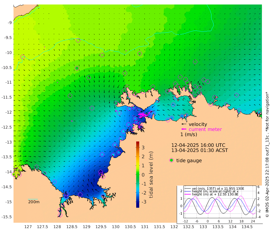 157cm/s -101T +4cm/s rms + 6cm/s 51T. Darwin_C1 52m 148cm/s -92T +4cm/s rms + 7cm/s -161T. Darwin_CW1 22m 86cm/s -106T +4cm/s rms + 8cm/s 61T. Darwin_CW2 34m 91cm/s -136T +3cm/s rms + 9cm/s 98T. Darwin_CW3 22m 159cm/s -91T +5cm/s rms + 7cm/s 88T. Darwin_C3 56m 77cm/s -116T +2cm/s rms + 9cm/s -126T. Darwin_CTbW 22m 11cm/s 172T +9cm/s rms + 2cm/s -110T. NWSLYN 196m 9cm/s -180T +1cm/s rms + 1cm/s -47T. DARBGF 30m 9cm/s 104T +7cm/s rms + 2cm/s -137T. ITFTIS 464m 13cm/s 131T +9cm/s rms + 1cm/s 74T. ITFMHB 146m 17cm/s 89T +4cm/s rms + 1cm/s -134T. ITFJBG 61m 27cm/s 117T +6cm/s rms + 4cm/s 121T. ITFFTB 108m 16cm/s 161T +4cm/s rms + 3cm/s 80T. NRSDAR 19m 46cm Carronade Island 49cm Guy Point 46cm Napier Broome Bay -74cm Lesueur Island -182cm Reveley Island -97cm Rocky Island -290cm Cape Domett -261cm Lacrosse Island -315cm Adolphus Island -260cm Pender Point -253cm Wyndham -9cm The Boxers -22cm Unnamed Shoal 54cm Loxton Shoal -302cm Pelican Island 10cm Calder Shoal 39cm Evans Shoal -393cm Quoin Island -282cm Port Keats -274cm Jones Point -334cm Catfish Island -185cm Cape Scott Offshore -179cm Cape Ford -204cm Anson Bay 24cm Goodrich Bank -186cm Peron Island North -163cm Point Jenny -160cm Native Point -194cm Fish Reef -193cm Tapa Bay -68cm Point Fawcett (Offshore) -226cm Burge Point -181cm Munkunuwa -141cm Beagle A -221cm Parsons Bank -213cm Fenton Patches 27cm Lynedoch Bank -219cm Hancox Shoal Area -228cm Nightcliff -258cm Darwin -223cm Charles Point Patches -205cm Glyde Point -187cm Chambers Bay -196cm Point Stuart -188cm Cape Hotham -168cm Christine Reef -213cm West Alligator Head -213cm East Field Island -165cm Two Hills Bay -89cm Newby Shoal -158cm Camp Point -201cm Medina Inlet South -51cm South Barlow Point -18cm St. Asaph Bay 23cm Cape Van Dieman 12cm Snake Bay 13cm Cache Point 73cm Echo Shoal -13cm Point Jahleel (Off) -76cm Cape Don -24cm Port Essington -20cm Smith Point - West -18cm NW Peacock Island -4cm North Of Jones Shoal -4cm Peacock Island -43cm Point David -23cm D'urville Point -16cm Money Shoal -47cm Copeland Island -71cm Cape Cockburn -46cm One Tree Point -57cm Hogmany Shoal -46cm New Year Island - West -51cm Grant Island -77cm Aurari Bay -97cm Cuthbert Point -75cm North Goulburn Island -109cm Paxie Shoal -127cm Entrance Island -159cm Yabooma Island