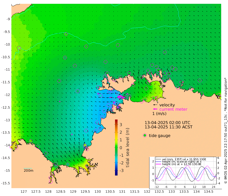 129cm/s -103T +4cm/s rms + 6cm/s 51T. Darwin_C1 52m 101cm/s -89T +4cm/s rms + 7cm/s -161T. Darwin_CW1 22m 104cm/s -108T +4cm/s rms + 8cm/s 61T. Darwin_CW2 34m 47cm/s -125T +3cm/s rms + 9cm/s 98T. Darwin_CW3 22m 129cm/s -92T +5cm/s rms + 7cm/s 88T. Darwin_C3 56m 78cm/s -115T +2cm/s rms + 9cm/s -126T. Darwin_CTbW 22m 2cm/s -50T +9cm/s rms + 2cm/s -110T. NWSLYN 196m 66cm/s -91T +1cm/s rms + 1cm/s -47T. DARBGF 30m 3cm/s -145T +7cm/s rms + 2cm/s -137T. ITFTIS 464m 8cm/s -6T +9cm/s rms + 1cm/s 74T. ITFMHB 146m 38cm/s -22T +4cm/s rms + 1cm/s -134T. ITFJBG 61m 27cm/s -39T +6cm/s rms + 4cm/s 121T. ITFFTB 108m 59cm/s -63T +4cm/s rms + 3cm/s 80T. NRSDAR 19m 131cm Carronade Island 135cm Guy Point 131cm Napier Broome Bay 40cm Lesueur Island -37cm Reveley Island -15cm Rocky Island -58cm Cape Domett -49cm Lacrosse Island -16cm Adolphus Island 81cm Pender Point 130cm Wyndham -26cm The Boxers -57cm Unnamed Shoal 25cm Loxton Shoal -100cm Pelican Island -23cm Calder Shoal 4cm Evans Shoal -8cm Quoin Island -139cm Port Keats -143cm Jones Point 48cm Catfish Island -142cm Cape Scott Offshore -177cm Cape Ford -174cm Anson Bay -25cm Goodrich Bank -147cm Peron Island North -159cm Point Jenny -160cm Native Point -165cm Fish Reef -177cm Tapa Bay -104cm Point Fawcett (Offshore) -172cm Burge Point -180cm Munkunuwa -139cm Beagle A -174cm Parsons Bank -168cm Fenton Patches -7cm Lynedoch Bank -160cm Hancox Shoal Area -176cm Nightcliff -183cm Darwin -178cm Charles Point Patches -89cm Glyde Point -8cm Chambers Bay 19cm Point Stuart -48cm Cape Hotham 0cm Christine Reef 29cm West Alligator Head 68cm East Field Island -11cm Two Hills Bay -73cm Newby Shoal -20cm Camp Point -174cm Medina Inlet South -98cm South Barlow Point -71cm St. Asaph Bay -33cm Cape Van Dieman -38cm Snake Bay -25cm Cache Point 52cm Echo Shoal -30cm Point Jahleel (Off) -44cm Cape Don -39cm Port Essington -39cm Smith Point - West -32cm NW Peacock Island -23cm North Of Jones Shoal -10cm Peacock Island -38cm Point David -40cm D'urville Point -24cm Money Shoal -37cm Copeland Island -41cm Cape Cockburn -35cm One Tree Point -30cm Hogmany Shoal -32cm New Year Island - West -34cm Grant Island -40cm Aurari Bay -33cm Cuthbert Point -37cm North Goulburn Island -31cm Paxie Shoal -30cm Entrance Island -19cm Yabooma Island