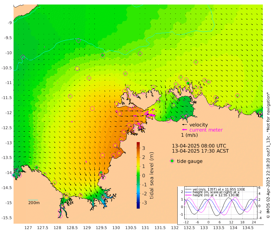 155cm/s 77T +4cm/s rms + 6cm/s 51T. Darwin_C1 52m 125cm/s 88T +4cm/s rms + 7cm/s -161T. Darwin_CW1 22m 96cm/s 75T +4cm/s rms + 8cm/s 61T. Darwin_CW2 34m 68cm/s 48T +3cm/s rms + 9cm/s 98T. Darwin_CW3 22m 133cm/s 88T +5cm/s rms + 7cm/s 88T. Darwin_C3 56m 90cm/s 64T +2cm/s rms + 9cm/s -126T. Darwin_CTbW 22m 3cm/s 56T +9cm/s rms + 2cm/s -110T. NWSLYN 196m 66cm/s 88T +1cm/s rms + 1cm/s -47T. DARBGF 30m 6cm/s 16T +7cm/s rms + 2cm/s -137T. ITFTIS 464m 4cm/s 133T +9cm/s rms + 1cm/s 74T. ITFMHB 146m 37cm/s 162T +4cm/s rms + 1cm/s -134T. ITFJBG 61m 24cm/s 134T +6cm/s rms + 4cm/s 121T. ITFFTB 108m 66cm/s 116T +4cm/s rms + 3cm/s 80T. NRSDAR 19m -89cm Carronade Island -99cm Guy Point -86cm Napier Broome Bay 12cm Lesueur Island 72cm Reveley Island 48cm Rocky Island 107cm Cape Domett 98cm Lacrosse Island 72cm Adolphus Island -40cm Pender Point -81cm Wyndham 65cm The Boxers 96cm Unnamed Shoal 5cm Loxton Shoal 136cm Pelican Island 60cm Calder Shoal 22cm Evans Shoal 61cm Quoin Island 193cm Port Keats 180cm Jones Point -10cm Catfish Island 178cm Cape Scott Offshore 218cm Cape Ford 212cm Anson Bay 52cm Goodrich Bank 190cm Peron Island North 198cm Point Jenny 200cm Native Point 210cm Fish Reef 214cm Tapa Bay 138cm Point Fawcett (Offshore) 225cm Burge Point 213cm Munkunuwa 189cm Beagle A 216cm Parsons Bank 221cm Fenton Patches 35cm Lynedoch Bank 199cm Hancox Shoal Area 224cm Nightcliff 232cm Darwin 224cm Charles Point Patches 131cm Glyde Point 39cm Chambers Bay 15cm Point Stuart 87cm Cape Hotham 36cm Christine Reef 4cm West Alligator Head -32cm East Field Island 46cm Two Hills Bay 140cm Newby Shoal 55cm Camp Point 218cm Medina Inlet South 134cm South Barlow Point 102cm St. Asaph Bay 60cm Cape Van Dieman 70cm Snake Bay 55cm Cache Point -26cm Echo Shoal 59cm Point Jahleel (Off) 78cm Cape Don 67cm Port Essington 68cm Smith Point - West 62cm NW Peacock Island 55cm North Of Jones Shoal 21cm Peacock Island 63cm Point David 70cm D'urville Point 55cm Money Shoal 61cm Copeland Island 82cm Cape Cockburn 65cm One Tree Point 55cm Hogmany Shoal 65cm New Year Island - West 64cm Grant Island 69cm Aurari Bay 61cm Cuthbert Point 67cm North Goulburn Island 55cm Paxie Shoal 52cm Entrance Island 38cm Yabooma Island