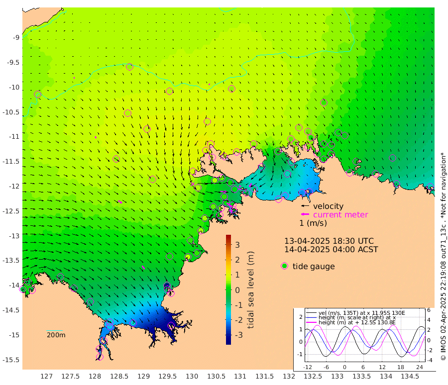 1cm/s -96T +4cm/s rms + 6cm/s 51T. Darwin_C1 52m 20cm/s -83T +4cm/s rms + 7cm/s -161T. Darwin_CW1 22m 17cm/s 72T +4cm/s rms + 8cm/s 61T. Darwin_CW2 34m 49cm/s -147T +3cm/s rms + 9cm/s 98T. Darwin_CW3 22m 23cm/s -82T +5cm/s rms + 7cm/s 88T. Darwin_C3 56m 24cm/s 60T +2cm/s rms + 9cm/s -126T. Darwin_CTbW 22m 12cm/s 159T +9cm/s rms + 2cm/s -110T. NWSLYN 196m 74cm/s 95T +1cm/s rms + 1cm/s -47T. DARBGF 30m 10cm/s 86T +7cm/s rms + 2cm/s -137T. ITFTIS 464m 24cm/s 149T +9cm/s rms + 1cm/s 74T. ITFMHB 146m 54cm/s 142T +4cm/s rms + 1cm/s -134T. ITFJBG 61m 58cm/s 128T +6cm/s rms + 4cm/s 121T. ITFFTB 108m 81cm/s 126T +4cm/s rms + 3cm/s 80T. NRSDAR 19m -52cm Carronade Island -52cm Guy Point -59cm Napier Broome Bay -61cm Lesueur Island -86cm Reveley Island -64cm Rocky Island -166cm Cape Domett -141cm Lacrosse Island -234cm Adolphus Island -300cm Pender Point -340cm Wyndham 50cm The Boxers 61cm Unnamed Shoal 54cm Loxton Shoal -139cm Pelican Island 71cm Calder Shoal 61cm Evans Shoal -318cm Quoin Island -71cm Port Keats -71cm Jones Point -337cm Catfish Island 17cm Cape Scott Offshore 89cm Cape Ford 30cm Anson Bay 74cm Goodrich Bank 26cm Peron Island North 57cm Point Jenny 61cm Native Point 38cm Fish Reef 48cm Tapa Bay 85cm Point Fawcett (Offshore) 19cm Burge Point 59cm Munkunuwa 64cm Beagle A 14cm Parsons Bank 27cm Fenton Patches 54cm Lynedoch Bank 3cm Hancox Shoal Area 19cm Nightcliff -7cm Darwin 21cm Charles Point Patches -67cm Glyde Point -141cm Chambers Bay -179cm Point Stuart -93cm Cape Hotham -128cm Christine Reef -204cm West Alligator Head -245cm East Field Island -116cm Two Hills Bay 46cm Newby Shoal -103cm Camp Point 36cm Medina Inlet South 88cm South Barlow Point 92cm St. Asaph Bay 81cm Cape Van Dieman 75cm Snake Bay 67cm Cache Point 47cm Echo Shoal 46cm Point Jahleel (Off) -2cm Cape Don 37cm Port Essington 45cm Smith Point - West 37cm NW Peacock Island 46cm North Of Jones Shoal 15cm Peacock Island 10cm Point David 39cm D'urville Point 26cm Money Shoal 5cm Copeland Island -4cm Cape Cockburn 7cm One Tree Point -6cm Hogmany Shoal 4cm New Year Island - West 1cm Grant Island -23cm Aurari Bay -52cm Cuthbert Point -21cm North Goulburn Island -69cm Paxie Shoal -85cm Entrance Island -129cm Yabooma Island