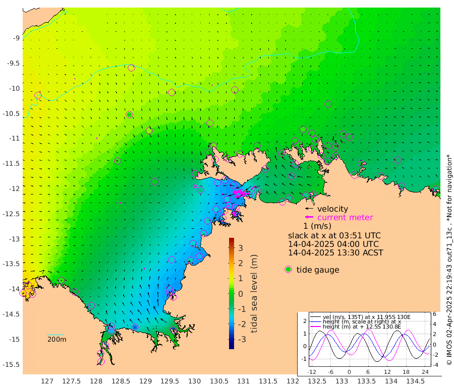 147cm/s -101T +4cm/s rms + 6cm/s 51T. Darwin_C1 52m 130cm/s -90T +4cm/s rms + 7cm/s -161T. Darwin_CW1 22m 97cm/s -106T +4cm/s rms + 8cm/s 61T. Darwin_CW2 34m 69cm/s -134T +3cm/s rms + 9cm/s 98T. Darwin_CW3 22m 156cm/s -91T +5cm/s rms + 7cm/s 88T. Darwin_C3 56m 80cm/s -115T +2cm/s rms + 9cm/s -126T. Darwin_CTbW 22m 6cm/s 155T +9cm/s rms + 2cm/s -110T. NWSLYN 196m 24cm/s -103T +1cm/s rms + 1cm/s -47T. DARBGF 30m 7cm/s 74T +7cm/s rms + 2cm/s -137T. ITFTIS 464m 9cm/s 85T +9cm/s rms + 1cm/s 74T. ITFMHB 146m 15cm/s 26T +4cm/s rms + 1cm/s -134T. ITFJBG 61m 15cm/s 80T +6cm/s rms + 4cm/s 121T. ITFFTB 108m 19cm/s -89T +4cm/s rms + 3cm/s 80T. NRSDAR 19m 141cm Carronade Island 141cm Guy Point 144cm Napier Broome Bay 30cm Lesueur Island -102cm Reveley Island -45cm Rocky Island -177cm Cape Domett -148cm Lacrosse Island -182cm Adolphus Island -113cm Pender Point -81cm Wyndham 33cm The Boxers 14cm Unnamed Shoal 88cm Loxton Shoal -217cm Pelican Island 47cm Calder Shoal 64cm Evans Shoal -239cm Quoin Island -199cm Port Keats -205cm Jones Point -174cm Catfish Island -143cm Cape Scott Offshore -122cm Cape Ford -170cm Anson Bay 43cm Goodrich Bank -138cm Peron Island North -130cm Point Jenny -128cm Native Point -146cm Fish Reef -161cm Tapa Bay -41cm Point Fawcett (Offshore) -168cm Burge Point -159cm Munkunuwa -94cm Beagle A -181cm Parsons Bank -157cm Fenton Patches 50cm Lynedoch Bank -178cm Hancox Shoal Area -181cm Nightcliff -202cm Darwin -176cm Charles Point Patches -136cm Glyde Point -103cm Chambers Bay -94cm Point Stuart -110cm Cape Hotham -84cm Christine Reef -102cm West Alligator Head -84cm East Field Island -82cm Two Hills Bay -17cm Newby Shoal -81cm Camp Point -161cm Medina Inlet South -31cm South Barlow Point 1cm St. Asaph Bay 39cm Cape Van Dieman 31cm Snake Bay 38cm Cache Point 111cm Echo Shoal 16cm Point Jahleel (Off) -34cm Cape Don 1cm Port Essington 2cm Smith Point - West 7cm NW Peacock Island 23cm North Of Jones Shoal 6cm Peacock Island -20cm Point David -2cm D'urville Point 11cm Money Shoal -25cm Copeland Island -26cm Cape Cockburn -17cm One Tree Point -24cm Hogmany Shoal -13cm New Year Island - West -20cm Grant Island -45cm Aurari Bay -60cm Cuthbert Point -40cm North Goulburn Island -70cm Paxie Shoal -85cm Entrance Island -109cm Yabooma Island