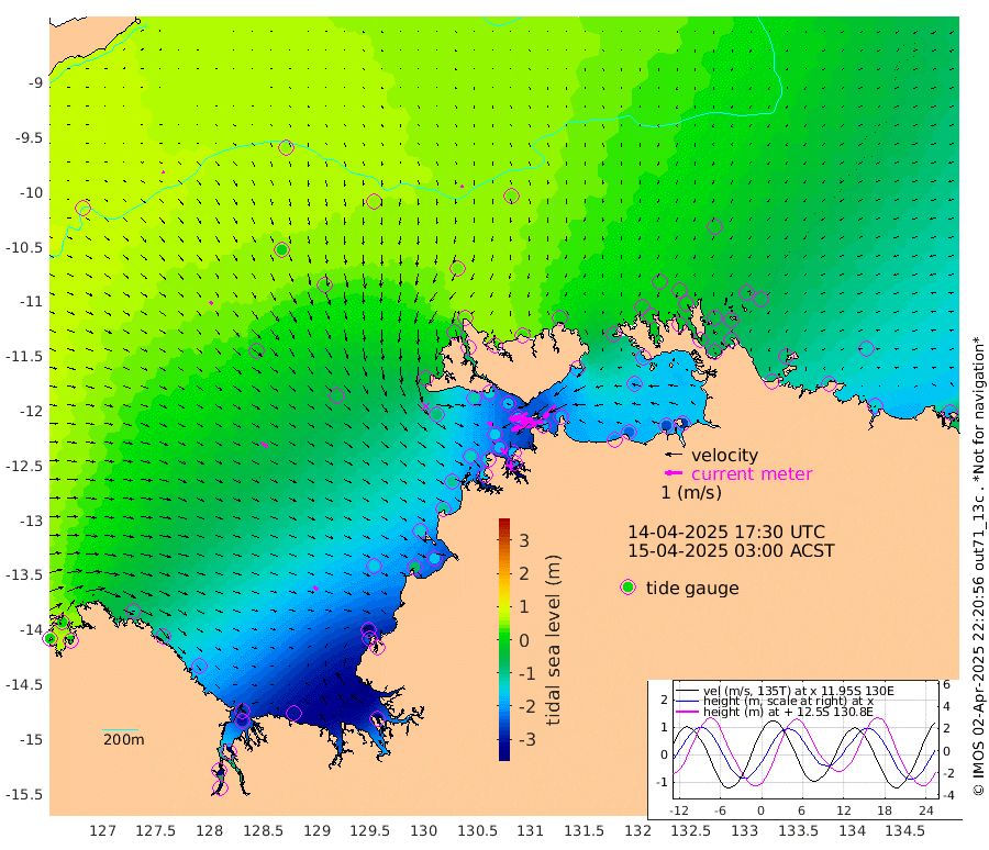 149cm/s -100T +4cm/s rms + 6cm/s 51T. Darwin_C1 52m 143cm/s -92T +4cm/s rms + 7cm/s -161T. Darwin_CW1 22m 63cm/s -105T +4cm/s rms + 8cm/s 61T. Darwin_CW2 34m 97cm/s -137T +3cm/s rms + 9cm/s 98T. Darwin_CW3 22m 140cm/s -90T +5cm/s rms + 7cm/s 88T. Darwin_C3 56m 73cm/s -116T +2cm/s rms + 9cm/s -126T. Darwin_CTbW 22m 11cm/s 175T +9cm/s rms + 2cm/s -110T. NWSLYN 196m 31cm/s 109T +1cm/s rms + 1cm/s -47T. DARBGF 30m 12cm/s 102T +7cm/s rms + 2cm/s -137T. ITFTIS 464m 20cm/s 142T +9cm/s rms + 1cm/s 74T. ITFMHB 146m 31cm/s 123T +4cm/s rms + 1cm/s -134T. ITFJBG 61m 45cm/s 123T +6cm/s rms + 4cm/s 121T. ITFFTB 108m 44cm/s 136T +4cm/s rms + 3cm/s 80T. NRSDAR 19m 8cm Carronade Island 8cm Guy Point 3cm Napier Broome Bay -94cm Lesueur Island -184cm Reveley Island -91cm Rocky Island -298cm Cape Domett -269cm Lacrosse Island -345cm Adolphus Island -331cm Pender Point -343cm Wyndham 5cm The Boxers -8cm Unnamed Shoal 56cm Loxton Shoal -301cm Pelican Island 29cm Calder Shoal 49cm Evans Shoal -449cm Quoin Island -252cm Port Keats -243cm Jones Point -422cm Catfish Island -149cm Cape Scott Offshore -75cm Cape Ford -161cm Anson Bay 42cm Goodrich Bank -141cm Peron Island North -107cm Point Jenny -103cm Native Point -134cm Fish Reef -138cm Tapa Bay -26cm Point Fawcett (Offshore) -165cm Burge Point -119cm Munkunuwa -81cm Beagle A -169cm Parsons Bank -151cm Fenton Patches 35cm Lynedoch Bank -177cm Hancox Shoal Area -178cm Nightcliff -209cm Darwin -170cm Charles Point Patches -191cm Glyde Point -209cm Chambers Bay -228cm Point Stuart -189cm Cape Hotham -187cm Christine Reef -252cm West Alligator Head -267cm East Field Island -181cm Two Hills Bay -51cm Newby Shoal -170cm Camp Point -146cm Medina Inlet South -10cm South Barlow Point 17cm St. Asaph Bay 44cm Cape Van Dieman 29cm Snake Bay 30cm Cache Point 68cm Echo Shoal 1cm Point Jahleel (Off) -68cm Cape Don -11cm Port Essington -6cm Smith Point - West -8cm NW Peacock Island 5cm North Of Jones Shoal -1cm Peacock Island -45cm Point David -12cm D'urville Point -12cm Money Shoal -49cm Copeland Island -71cm Cape Cockburn -47cm One Tree Point -65cm Hogmany Shoal -49cm New Year Island - West -53cm Grant Island -85cm Aurari Bay -110cm Cuthbert Point -81cm North Goulburn Island -132cm Paxie Shoal -146cm Entrance Island -188cm Yabooma Island