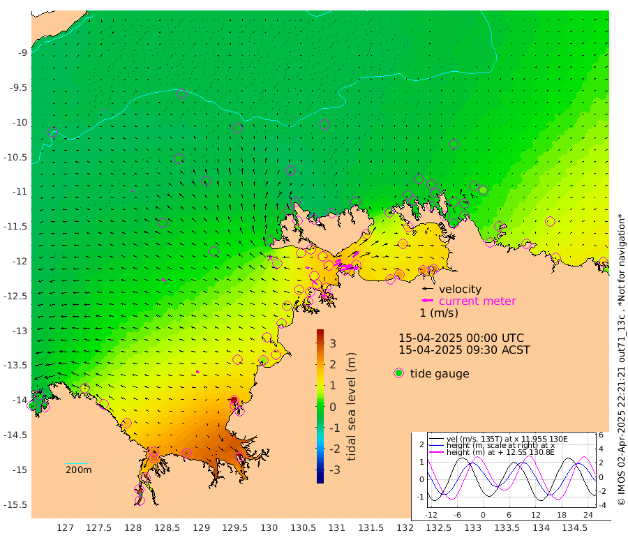 120cm/s 80T +4cm/s rms + 6cm/s 51T. Darwin_C1 52m 115cm/s 91T +4cm/s rms + 7cm/s -161T. Darwin_CW1 22m 68cm/s 70T +4cm/s rms + 8cm/s 61T. Darwin_CW2 34m 75cm/s 47T +3cm/s rms + 9cm/s 98T. Darwin_CW3 22m 128cm/s 90T +5cm/s rms + 7cm/s 88T. Darwin_C3 56m 58cm/s 66T +2cm/s rms + 9cm/s -126T. Darwin_CTbW 22m 8cm/s -12T +9cm/s rms + 2cm/s -110T. NWSLYN 196m 30cm/s -72T +1cm/s rms + 1cm/s -47T. DARBGF 30m 11cm/s -107T +7cm/s rms + 2cm/s -137T. ITFTIS 464m 13cm/s -73T +9cm/s rms + 1cm/s 74T. ITFMHB 146m 28cm/s -53T +4cm/s rms + 1cm/s -134T. ITFJBG 61m 37cm/s -62T +6cm/s rms + 4cm/s 121T. ITFFTB 108m 52cm/s -50T +4cm/s rms + 3cm/s 80T. NRSDAR 19m 9cm Carronade Island 16cm Guy Point 7cm Napier Broome Bay 84cm Lesueur Island 169cm Reveley Island 77cm Rocky Island 257cm Cape Domett 236cm Lacrosse Island 301cm Adolphus Island 304cm Pender Point 318cm Wyndham -14cm The Boxers -20cm Unnamed Shoal -49cm Loxton Shoal 265cm Pelican Island -32cm Calder Shoal -43cm Evans Shoal 401cm Quoin Island 200cm Port Keats 197cm Jones Point 404cm Catfish Island 120cm Cape Scott Offshore 47cm Cape Ford 123cm Anson Bay -46cm Goodrich Bank 105cm Peron Island North 76cm Point Jenny 72cm Native Point 94cm Fish Reef 104cm Tapa Bay 11cm Point Fawcett (Offshore) 113cm Burge Point 84cm Munkunuwa 48cm Beagle A 120cm Parsons Bank 105cm Fenton Patches -41cm Lynedoch Bank 135cm Hancox Shoal Area 132cm Nightcliff 152cm Darwin 123cm Charles Point Patches 148cm Glyde Point 182cm Chambers Bay 197cm Point Stuart 152cm Cape Hotham 161cm Christine Reef 222cm West Alligator Head 237cm East Field Island 151cm Two Hills Bay 16cm Newby Shoal 137cm Camp Point 103cm Medina Inlet South -11cm South Barlow Point -25cm St. Asaph Bay -49cm Cape Van Dieman -42cm Snake Bay -36cm Cache Point -49cm Echo Shoal -11cm Point Jahleel (Off) 43cm Cape Don -7cm Port Essington -9cm Smith Point - West -10cm NW Peacock Island -18cm North Of Jones Shoal -5cm Peacock Island 15cm Point David -8cm D'urville Point -11cm Money Shoal 20cm Copeland Island 28cm Cape Cockburn 16cm One Tree Point 38cm Hogmany Shoal 17cm New Year Island - West 21cm Grant Island 46cm Aurari Bay 68cm Cuthbert Point 42cm North Goulburn Island 88cm Paxie Shoal 100cm Entrance Island 138cm Yabooma Island