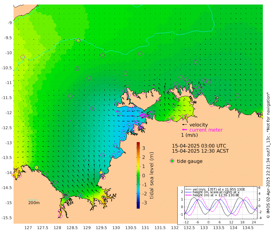 130cm/s -103T +4cm/s rms + 6cm/s 51T. Darwin_C1 52m 87cm/s -89T +4cm/s rms + 7cm/s -161T. Darwin_CW1 22m 103cm/s -109T +4cm/s rms + 8cm/s 61T. Darwin_CW2 34m 48cm/s -122T +3cm/s rms + 9cm/s 98T. Darwin_CW3 22m 118cm/s -92T +5cm/s rms + 7cm/s 88T. Darwin_C3 56m 79cm/s -115T +2cm/s rms + 9cm/s -126T. Darwin_CTbW 22m 1cm/s 141T +9cm/s rms + 2cm/s -110T. NWSLYN 196m 59cm/s -92T +1cm/s rms + 1cm/s -47T. DARBGF 30m 0cm/s -5T +7cm/s rms + 2cm/s -137T. ITFTIS 464m 8cm/s 10T +9cm/s rms + 1cm/s 74T. ITFMHB 146m 37cm/s -18T +4cm/s rms + 1cm/s -134T. ITFJBG 61m 24cm/s -32T +6cm/s rms + 4cm/s 121T. ITFFTB 108m 51cm/s -64T +4cm/s rms + 3cm/s 80T. NRSDAR 19m 158cm Carronade Island 161cm Guy Point 162cm Napier Broome Bay 70cm Lesueur Island -23cm Reveley Island -6cm Rocky Island -44cm Cape Domett -30cm Lacrosse Island -14cm Adolphus Island 92cm Pender Point 143cm Wyndham 0cm The Boxers -27cm Unnamed Shoal 44cm Loxton Shoal -86cm Pelican Island -1cm Calder Shoal 20cm Evans Shoal -1cm Quoin Island -127cm Port Keats -124cm Jones Point 101cm Catfish Island -120cm Cape Scott Offshore -152cm Cape Ford -154cm Anson Bay -9cm Goodrich Bank -128cm Peron Island North -141cm Point Jenny -142cm Native Point -144cm Fish Reef -159cm Tapa Bay -79cm Point Fawcett (Offshore) -160cm Burge Point -168cm Munkunuwa -120cm Beagle A -166cm Parsons Bank -154cm Fenton Patches 7cm Lynedoch Bank -151cm Hancox Shoal Area -165cm Nightcliff -169cm Darwin -161cm Charles Point Patches -76cm Glyde Point 5cm Chambers Bay 32cm Point Stuart -36cm Cape Hotham 6cm Christine Reef 43cm West Alligator Head 82cm East Field Island 2cm Two Hills Bay -54cm Newby Shoal -8cm Camp Point -158cm Medina Inlet South -83cm South Barlow Point -52cm St. Asaph Bay -17cm Cape Van Dieman -23cm Snake Bay -8cm Cache Point 73cm Echo Shoal -15cm Point Jahleel (Off) -31cm Cape Don -26cm Port Essington -28cm Smith Point - West -22cm NW Peacock Island -11cm North Of Jones Shoal -6cm Peacock Island -30cm Point David -31cm D'urville Point -15cm Money Shoal -31cm Copeland Island -34cm Cape Cockburn -26cm One Tree Point -20cm Hogmany Shoal -22cm New Year Island - West -27cm Grant Island -33cm Aurari Bay -30cm Cuthbert Point -31cm North Goulburn Island -26cm Paxie Shoal -31cm Entrance Island -25cm Yabooma Island