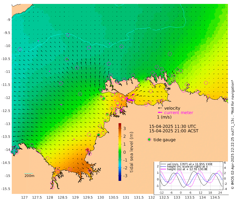 125cm/s 79T +4cm/s rms + 6cm/s 51T. Darwin_C1 52m 105cm/s 92T +4cm/s rms + 7cm/s -161T. Darwin_CW1 22m 68cm/s 70T +4cm/s rms + 8cm/s 61T. Darwin_CW2 34m 87cm/s 44T +3cm/s rms + 9cm/s 98T. Darwin_CW3 22m 126cm/s 90T +5cm/s rms + 7cm/s 88T. Darwin_C3 56m 58cm/s 66T +2cm/s rms + 9cm/s -126T. Darwin_CTbW 22m 12cm/s -22T +9cm/s rms + 2cm/s -110T. NWSLYN 196m 31cm/s -74T +1cm/s rms + 1cm/s -47T. DARBGF 30m 12cm/s -95T +7cm/s rms + 2cm/s -137T. ITFTIS 464m 21cm/s -43T +9cm/s rms + 1cm/s 74T. ITFMHB 146m 27cm/s -58T +4cm/s rms + 1cm/s -134T. ITFJBG 61m 43cm/s -61T +6cm/s rms + 4cm/s 121T. ITFFTB 108m 46cm/s -47T +4cm/s rms + 3cm/s 80T. NRSDAR 19m -89cm Carronade Island -91cm Guy Point -84cm Napier Broome Bay -1cm Lesueur Island 104cm Reveley Island 53cm Rocky Island 206cm Cape Domett 171cm Lacrosse Island 253cm Adolphus Island 236cm Pender Point 238cm Wyndham -63cm The Boxers -44cm Unnamed Shoal -106cm Loxton Shoal 220cm Pelican Island -86cm Calder Shoal -92cm Evans Shoal 345cm Quoin Island 174cm Port Keats 174cm Jones Point 310cm Catfish Island 83cm Cape Scott Offshore -13cm Cape Ford 99cm Anson Bay -80cm Goodrich Bank 75cm Peron Island North 48cm Point Jenny 45cm Native Point 70cm Fish Reef 76cm Tapa Bay -32cm Point Fawcett (Offshore) 99cm Burge Point 69cm Munkunuwa 18cm Beagle A 116cm Parsons Bank 86cm Fenton Patches -70cm Lynedoch Bank 120cm Hancox Shoal Area 116cm Nightcliff 143cm Darwin 104cm Charles Point Patches 131cm Glyde Point 152cm Chambers Bay 167cm Point Stuart 129cm Cape Hotham 131cm Christine Reef 186cm West Alligator Head 197cm East Field Island 125cm Two Hills Bay -23cm Newby Shoal 116cm Camp Point 85cm Medina Inlet South -34cm South Barlow Point -64cm St. Asaph Bay -81cm Cape Van Dieman -67cm Snake Bay -73cm Cache Point -121cm Echo Shoal -42cm Point Jahleel (Off) 27cm Cape Don -21cm Port Essington -27cm Smith Point - West -23cm NW Peacock Island -41cm North Of Jones Shoal -11cm Peacock Island 21cm Point David -17cm D'urville Point -16cm Money Shoal 28cm Copeland Island 38cm Cape Cockburn 20cm One Tree Point 29cm Hogmany Shoal 19cm New Year Island - West 26cm Grant Island 64cm Aurari Bay 91cm Cuthbert Point 57cm North Goulburn Island 111cm Paxie Shoal 130cm Entrance Island 178cm Yabooma Island