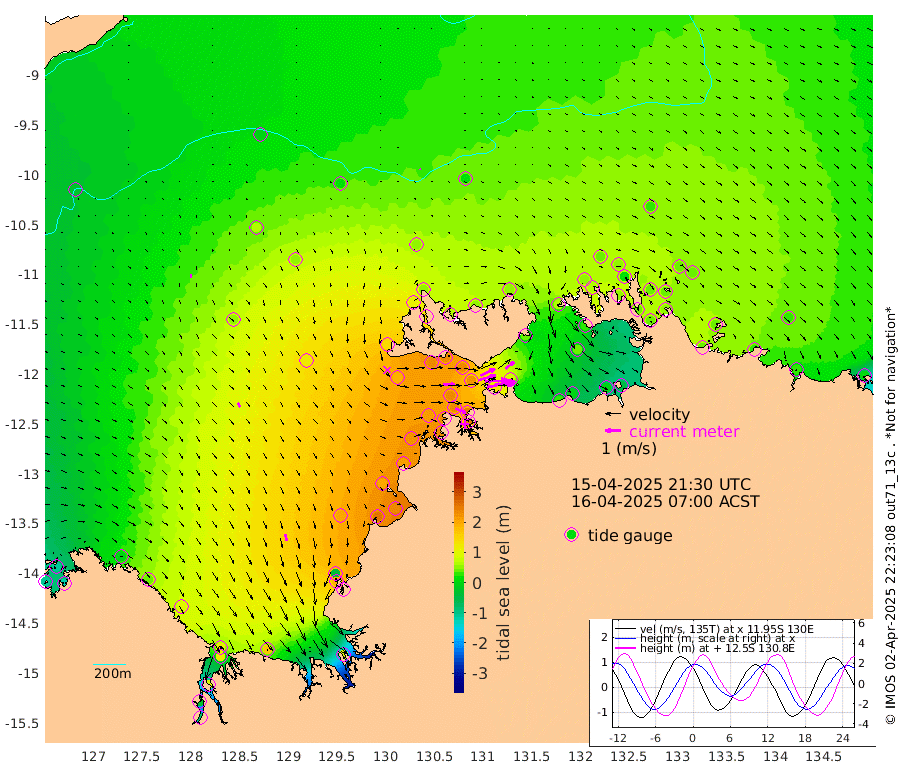 178cm/s 77T +4cm/s rms + 6cm/s 51T. Darwin_C1 52m 125cm/s 89T +4cm/s rms + 7cm/s -161T. Darwin_CW1 22m 115cm/s 74T +4cm/s rms + 8cm/s 61T. Darwin_CW2 34m 72cm/s 52T +3cm/s rms + 9cm/s 98T. Darwin_CW3 22m 152cm/s 88T +5cm/s rms + 7cm/s 88T. Darwin_C3 56m 103cm/s 64T +2cm/s rms + 9cm/s -126T. Darwin_CTbW 22m 3cm/s 127T +9cm/s rms + 2cm/s -110T. NWSLYN 196m 73cm/s 87T +1cm/s rms + 1cm/s -47T. DARBGF 30m 1cm/s 119T +7cm/s rms + 2cm/s -137T. ITFTIS 464m 18cm/s 180T +9cm/s rms + 1cm/s 74T. ITFMHB 146m 41cm/s 168T +4cm/s rms + 1cm/s -134T. ITFJBG 61m 31cm/s 146T +6cm/s rms + 4cm/s 121T. ITFFTB 108m 71cm/s 115T +4cm/s rms + 3cm/s 80T. NRSDAR 19m -107cm Carronade Island -103cm Guy Point -115cm Napier Broome Bay -2cm Lesueur Island 100cm Reveley Island 42cm Rocky Island 123cm Cape Domett 113cm Lacrosse Island 87cm Adolphus Island -33cm Pender Point -85cm Wyndham 51cm The Boxers 64cm Unnamed Shoal 0cm Loxton Shoal 166cm Pelican Island 54cm Calder Shoal 21cm Evans Shoal 79cm Quoin Island 206cm Port Keats 191cm Jones Point -37cm Catfish Island 196cm Cape Scott Offshore 252cm Cape Ford 227cm Anson Bay 46cm Goodrich Bank 199cm Peron Island North 213cm Point Jenny 215cm Native Point 213cm Fish Reef 236cm Tapa Bay 141cm Point Fawcett (Offshore) 231cm Burge Point 236cm Munkunuwa 190cm Beagle A 229cm Parsons Bank 226cm Fenton Patches 22cm Lynedoch Bank 220cm Hancox Shoal Area 241cm Nightcliff 240cm Darwin 234cm Charles Point Patches 126cm Glyde Point 33cm Chambers Bay -1cm Point Stuart 79cm Cape Hotham 35cm Christine Reef -9cm West Alligator Head -54cm East Field Island 33cm Two Hills Bay 119cm Newby Shoal 42cm Camp Point 228cm Medina Inlet South 132cm South Barlow Point 104cm St. Asaph Bay 53cm Cape Van Dieman 57cm Snake Bay 46cm Cache Point -30cm Echo Shoal 52cm Point Jahleel (Off) 63cm Cape Don 52cm Port Essington 59cm Smith Point - West 47cm NW Peacock Island 39cm North Of Jones Shoal 14cm Peacock Island 42cm Point David 55cm D'urville Point 31cm Money Shoal 41cm Copeland Island 48cm Cape Cockburn 40cm One Tree Point 43cm Hogmany Shoal 37cm New Year Island - West 41cm Grant Island 37cm Aurari Bay 32cm Cuthbert Point 38cm North Goulburn Island 26cm Paxie Shoal 27cm Entrance Island 10cm Yabooma Island