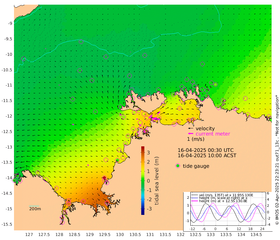 128cm/s 79T +4cm/s rms + 6cm/s 51T. Darwin_C1 52m 114cm/s 92T +4cm/s rms + 7cm/s -161T. Darwin_CW1 22m 67cm/s 70T +4cm/s rms + 8cm/s 61T. Darwin_CW2 34m 78cm/s 47T +3cm/s rms + 9cm/s 98T. Darwin_CW3 22m 123cm/s 90T +5cm/s rms + 7cm/s 88T. Darwin_C3 56m 65cm/s 66T +2cm/s rms + 9cm/s -126T. Darwin_CTbW 22m 7cm/s -13T +9cm/s rms + 2cm/s -110T. NWSLYN 196m 29cm/s -71T +1cm/s rms + 1cm/s -47T. DARBGF 30m 10cm/s -108T +7cm/s rms + 2cm/s -137T. ITFTIS 464m 12cm/s -78T +9cm/s rms + 1cm/s 74T. ITFMHB 146m 28cm/s -52T +4cm/s rms + 1cm/s -134T. ITFJBG 61m 35cm/s -62T +6cm/s rms + 4cm/s 121T. ITFFTB 108m 50cm/s -49T +4cm/s rms + 3cm/s 80T. NRSDAR 19m 23cm Carronade Island 31cm Guy Point 23cm Napier Broome Bay 91cm Lesueur Island 166cm Reveley Island 86cm Rocky Island 251cm Cape Domett 230cm Lacrosse Island 297cm Adolphus Island 302cm Pender Point 318cm Wyndham -6cm The Boxers -16cm Unnamed Shoal -39cm Loxton Shoal 258cm Pelican Island -26cm Calder Shoal -36cm Evans Shoal 392cm Quoin Island 195cm Port Keats 186cm Jones Point 407cm Catfish Island 117cm Cape Scott Offshore 32cm Cape Ford 119cm Anson Bay -40cm Goodrich Bank 98cm Peron Island North 74cm Point Jenny 71cm Native Point 88cm Fish Reef 100cm Tapa Bay 12cm Point Fawcett (Offshore) 105cm Burge Point 77cm Munkunuwa 48cm Beagle A 112cm Parsons Bank 100cm Fenton Patches -35cm Lynedoch Bank 130cm Hancox Shoal Area 127cm Nightcliff 143cm Darwin 117cm Charles Point Patches 143cm Glyde Point 179cm Chambers Bay 191cm Point Stuart 145cm Cape Hotham 161cm Christine Reef 215cm West Alligator Head 231cm East Field Island 147cm Two Hills Bay 22cm Newby Shoal 134cm Camp Point 97cm Medina Inlet South -10cm South Barlow Point -21cm St. Asaph Bay -44cm Cape Van Dieman -38cm Snake Bay -31cm Cache Point -39cm Echo Shoal -8cm Point Jahleel (Off) 43cm Cape Don -5cm Port Essington -6cm Smith Point - West -7cm NW Peacock Island -15cm North Of Jones Shoal -5cm Peacock Island 13cm Point David -6cm D'urville Point -9cm Money Shoal 18cm Copeland Island 24cm Cape Cockburn 15cm One Tree Point 36cm Hogmany Shoal 16cm New Year Island - West 20cm Grant Island 43cm Aurari Bay 65cm Cuthbert Point 39cm North Goulburn Island 82cm Paxie Shoal 93cm Entrance Island 126cm Yabooma Island