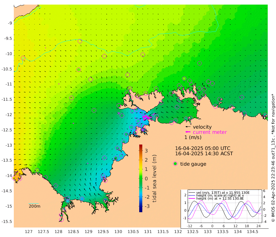 145cm/s -102T +4cm/s rms + 6cm/s 51T. Darwin_C1 52m 109cm/s -90T +4cm/s rms + 7cm/s -161T. Darwin_CW1 22m 86cm/s -107T +4cm/s rms + 8cm/s 61T. Darwin_CW2 34m 67cm/s -134T +3cm/s rms + 9cm/s 98T. Darwin_CW3 22m 129cm/s -91T +5cm/s rms + 7cm/s 88T. Darwin_C3 56m 83cm/s -115T +2cm/s rms + 9cm/s -126T. Darwin_CTbW 22m 7cm/s 143T +9cm/s rms + 2cm/s -110T. NWSLYN 196m 17cm/s -106T +1cm/s rms + 1cm/s -47T. DARBGF 30m 9cm/s 55T +7cm/s rms + 2cm/s -137T. ITFTIS 464m 11cm/s 72T +9cm/s rms + 1cm/s 74T. ITFMHB 146m 14cm/s 35T +4cm/s rms + 1cm/s -134T. ITFJBG 61m 17cm/s 79T +6cm/s rms + 4cm/s 121T. ITFFTB 108m 14cm/s -103T +4cm/s rms + 3cm/s 80T. NRSDAR 19m 143cm Carronade Island 141cm Guy Point 147cm Napier Broome Bay 53cm Lesueur Island -75cm Reveley Island -35cm Rocky Island -141cm Cape Domett -113cm Lacrosse Island -158cm Adolphus Island -92cm Pender Point -67cm Wyndham 55cm The Boxers 42cm Unnamed Shoal 97cm Loxton Shoal -176cm Pelican Island 65cm Calder Shoal 73cm Evans Shoal -210cm Quoin Island -160cm Port Keats -156cm Jones Point -137cm Catfish Island -104cm Cape Scott Offshore -52cm Cape Ford -128cm Anson Bay 57cm Goodrich Bank -99cm Peron Island North -92cm Point Jenny -90cm Native Point -102cm Fish Reef -118cm Tapa Bay -9cm Point Fawcett (Offshore) -126cm Burge Point -120cm Munkunuwa -59cm Beagle A -143cm Parsons Bank -117cm Fenton Patches 60cm Lynedoch Bank -142cm Hancox Shoal Area -146cm Nightcliff -157cm Darwin -129cm Charles Point Patches -104cm Glyde Point -83cm Chambers Bay -75cm Point Stuart -84cm Cape Hotham -73cm Christine Reef -83cm West Alligator Head -69cm East Field Island -64cm Two Hills Bay 8cm Newby Shoal -60cm Camp Point -119cm Medina Inlet South -7cm South Barlow Point 23cm St. Asaph Bay 54cm Cape Van Dieman 46cm Snake Bay 54cm Cache Point 116cm Echo Shoal 31cm Point Jahleel (Off) -18cm Cape Don 16cm Port Essington 14cm Smith Point - West 18cm NW Peacock Island 34cm North Of Jones Shoal 9cm Peacock Island -8cm Point David 10cm D'urville Point 21cm Money Shoal -14cm Copeland Island -14cm Cape Cockburn -5cm One Tree Point -8cm Hogmany Shoal 0cm New Year Island - West -8cm Grant Island -34cm Aurari Bay -50cm Cuthbert Point -28cm North Goulburn Island -57cm Paxie Shoal -75cm Entrance Island -102cm Yabooma Island