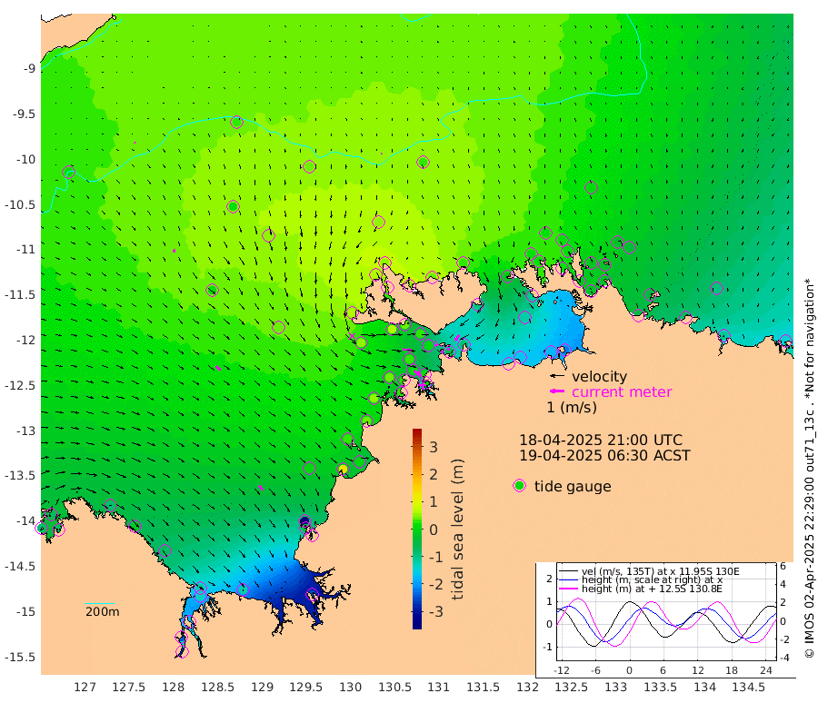 18cm/s -102T +4cm/s rms + 6cm/s 51T. Darwin_C1 52m 18cm/s -98T +4cm/s rms + 7cm/s -161T. Darwin_CW1 22m 24cm/s 70T +4cm/s rms + 8cm/s 61T. Darwin_CW2 34m 48cm/s -144T +3cm/s rms + 9cm/s 98T. Darwin_CW3 22m 5cm/s 60T +5cm/s rms + 7cm/s 88T. Darwin_C3 56m 6cm/s -113T +2cm/s rms + 9cm/s -126T. Darwin_CTbW 22m 5cm/s -172T +9cm/s rms + 2cm/s -110T. NWSLYN 196m 58cm/s 94T +1cm/s rms + 1cm/s -47T. DARBGF 30m 8cm/s 116T +7cm/s rms + 2cm/s -137T. ITFTIS 464m 22cm/s 161T +9cm/s rms + 1cm/s 74T. ITFMHB 146m 41cm/s 147T +4cm/s rms + 1cm/s -134T. ITFJBG 61m 42cm/s 133T +6cm/s rms + 4cm/s 121T. ITFFTB 108m 63cm/s 125T +4cm/s rms + 3cm/s 80T. NRSDAR 19m -78cm Carronade Island -79cm Guy Point -86cm Napier Broome Bay -85cm Lesueur Island -71cm Reveley Island -20cm Rocky Island -129cm Cape Domett -119cm Lacrosse Island -179cm Adolphus Island -244cm Pender Point -288cm Wyndham 20cm The Boxers 13cm Unnamed Shoal 33cm Loxton Shoal -117cm Pelican Island 46cm Calder Shoal 42cm Evans Shoal -252cm Quoin Island -50cm Port Keats -53cm Jones Point -346cm Catfish Island 2cm Cape Scott Offshore 126cm Cape Ford 9cm Anson Bay 48cm Goodrich Bank 24cm Peron Island North 43cm Point Jenny 45cm Native Point 38cm Fish Reef 32cm Tapa Bay 59cm Point Fawcett (Offshore) 33cm Burge Point 65cm Munkunuwa 53cm Beagle A 25cm Parsons Bank 30cm Fenton Patches 31cm Lynedoch Bank 1cm Hancox Shoal Area 12cm Nightcliff 3cm Darwin 19cm Charles Point Patches -59cm Glyde Point -138cm Chambers Bay -159cm Point Stuart -83cm Cape Hotham -117cm Christine Reef -179cm West Alligator Head -216cm East Field Island -107cm Two Hills Bay 35cm Newby Shoal -100cm Camp Point 38cm Medina Inlet South 70cm South Barlow Point 67cm St. Asaph Bay 53cm Cape Van Dieman 47cm Snake Bay 40cm Cache Point 19cm Echo Shoal 24cm Point Jahleel (Off) -14cm Cape Don 17cm Port Essington 22cm Smith Point - West 13cm NW Peacock Island 20cm North Of Jones Shoal 6cm Peacock Island -20cm Point David 15cm D'urville Point 1cm Money Shoal -23cm Copeland Island -28cm Cape Cockburn -17cm One Tree Point -40cm Hogmany Shoal -26cm New Year Island - West -25cm Grant Island -53cm Aurari Bay -72cm Cuthbert Point -46cm North Goulburn Island -95cm Paxie Shoal -102cm Entrance Island -140cm Yabooma Island
