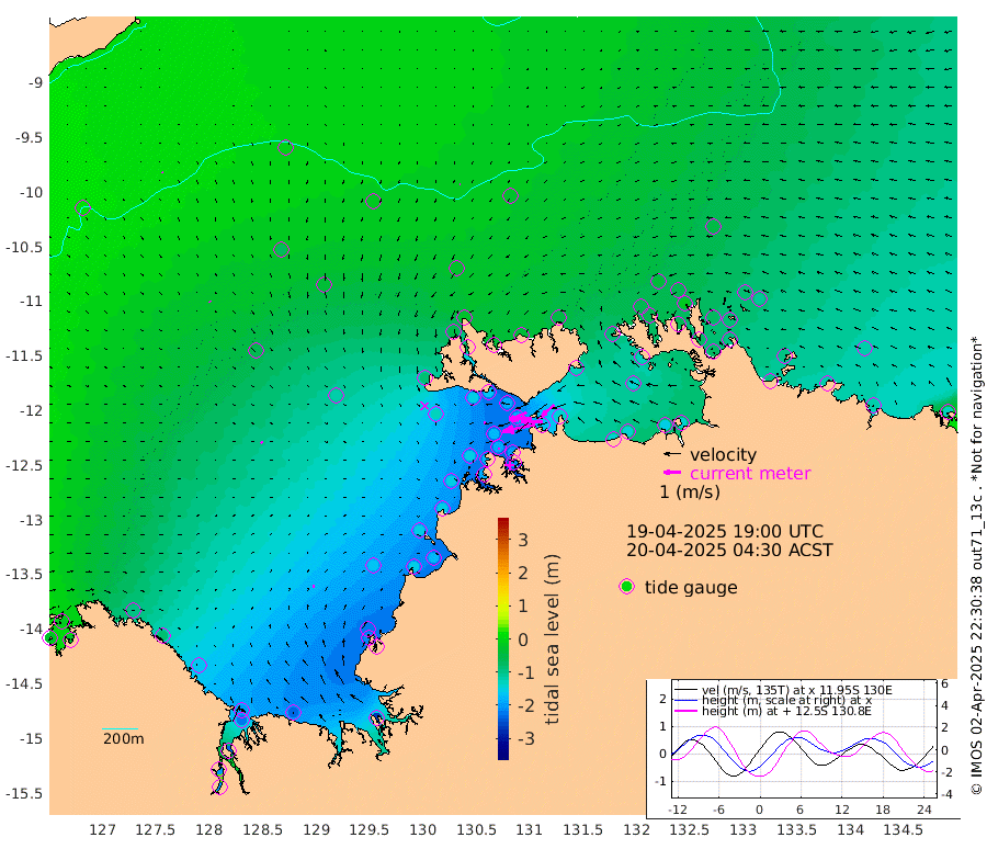 194cm/s -102T +4cm/s rms + 6cm/s 51T. Darwin_C1 52m 125cm/s -90T +4cm/s rms + 7cm/s -161T. Darwin_CW1 22m 76cm/s -106T +4cm/s rms + 8cm/s 61T. Darwin_CW2 34m 95cm/s -133T +3cm/s rms + 9cm/s 98T. Darwin_CW3 22m 119cm/s -90T +5cm/s rms + 7cm/s 88T. Darwin_C3 56m 113cm/s -115T +2cm/s rms + 9cm/s -126T. Darwin_CTbW 22m 5cm/s -97T +9cm/s rms + 2cm/s -110T. NWSLYN 196m 13cm/s -115T +1cm/s rms + 1cm/s -47T. DARBGF 30m 7cm/s 137T +7cm/s rms + 2cm/s -137T. ITFTIS 464m 7cm/s 140T +9cm/s rms + 1cm/s 74T. ITFMHB 146m 9cm/s 99T +4cm/s rms + 1cm/s -134T. ITFJBG 61m 14cm/s 119T +6cm/s rms + 4cm/s 121T. ITFFTB 108m 9cm/s -148T +4cm/s rms + 3cm/s 80T. NRSDAR 19m -22cm Carronade Island -28cm Guy Point -30cm Napier Broome Bay -99cm Lesueur Island -158cm Reveley Island -86cm Rocky Island -222cm Cape Domett -199cm Lacrosse Island -235cm Adolphus Island -200cm Pender Point -193cm Wyndham -59cm The Boxers -71cm Unnamed Shoal -11cm Loxton Shoal -233cm Pelican Island -38cm Calder Shoal -14cm Evans Shoal -269cm Quoin Island -225cm Port Keats -203cm Jones Point -219cm Catfish Island -163cm Cape Scott Offshore -147cm Cape Ford -178cm Anson Bay -29cm Goodrich Bank -156cm Peron Island North -156cm Point Jenny -156cm Native Point -154cm Fish Reef -178cm Tapa Bay -86cm Point Fawcett (Offshore) -182cm Burge Point -151cm Munkunuwa -130cm Beagle A -184cm Parsons Bank -175cm Fenton Patches -23cm Lynedoch Bank -190cm Hancox Shoal Area -193cm Nightcliff -206cm Darwin -190cm Charles Point Patches -164cm Glyde Point -142cm Chambers Bay -138cm Point Stuart -142cm Cape Hotham -142cm Christine Reef -147cm West Alligator Head -139cm East Field Island -129cm Two Hills Bay -113cm Newby Shoal -130cm Camp Point -168cm Medina Inlet South -76cm South Barlow Point -53cm St. Asaph Bay -30cm Cape Van Dieman -39cm Snake Bay -36cm Cache Point 14cm Echo Shoal -50cm Point Jahleel (Off) -89cm Cape Don -57cm Port Essington -59cm Smith Point - West -59cm NW Peacock Island -41cm North Of Jones Shoal -16cm Peacock Island -78cm Point David -63cm D'urville Point -55cm Money Shoal -77cm Copeland Island -98cm Cape Cockburn -74cm One Tree Point -104cm Hogmany Shoal -80cm New Year Island - West -86cm Grant Island -91cm Aurari Bay -113cm Cuthbert Point -96cm North Goulburn Island -119cm Paxie Shoal -123cm Entrance Island -127cm Yabooma Island