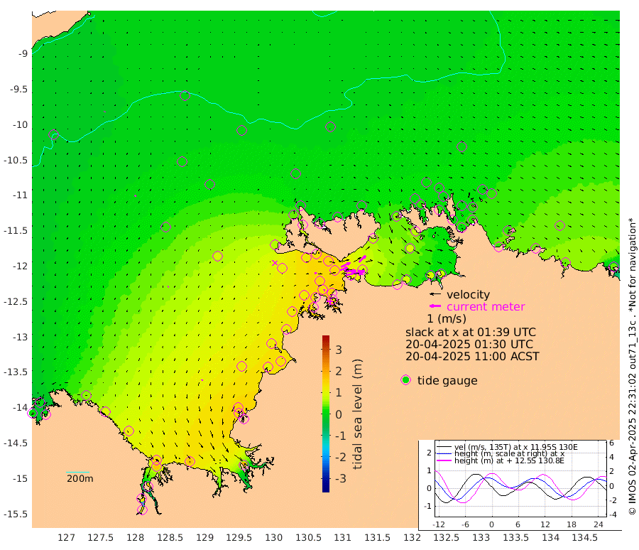 166cm/s 78T +4cm/s rms + 6cm/s 51T. Darwin_C1 52m 97cm/s 94T +4cm/s rms + 7cm/s -161T. Darwin_CW1 22m 73cm/s 72T +4cm/s rms + 8cm/s 61T. Darwin_CW2 34m 84cm/s 48T +3cm/s rms + 9cm/s 98T. Darwin_CW3 22m 106cm/s 90T +5cm/s rms + 7cm/s 88T. Darwin_C3 56m 91cm/s 66T +2cm/s rms + 9cm/s -126T. Darwin_CTbW 22m 1cm/s -29T +9cm/s rms + 2cm/s -110T. NWSLYN 196m 19cm/s 76T +1cm/s rms + 1cm/s -47T. DARBGF 30m 5cm/s -142T +7cm/s rms + 2cm/s -137T. ITFTIS 464m 13cm/s -159T +9cm/s rms + 1cm/s 74T. ITFMHB 146m 10cm/s -139T +4cm/s rms + 1cm/s -134T. ITFJBG 61m 8cm/s -145T +6cm/s rms + 4cm/s 121T. ITFFTB 108m 14cm/s 90T +4cm/s rms + 3cm/s 80T. NRSDAR 19m 8cm Carronade Island 13cm Guy Point 11cm Napier Broome Bay 50cm Lesueur Island 115cm Reveley Island 95cm Rocky Island 158cm Cape Domett 142cm Lacrosse Island 168cm Adolphus Island 127cm Pender Point 118cm Wyndham 31cm The Boxers 18cm Unnamed Shoal -1cm Loxton Shoal 164cm Pelican Island 22cm Calder Shoal 4cm Evans Shoal 188cm Quoin Island 166cm Port Keats 137cm Jones Point 155cm Catfish Island 122cm Cape Scott Offshore 91cm Cape Ford 131cm Anson Bay 7cm Goodrich Bank 114cm Peron Island North 122cm Point Jenny 121cm Native Point 118cm Fish Reef 132cm Tapa Bay 62cm Point Fawcett (Offshore) 138cm Burge Point 122cm Munkunuwa 104cm Beagle A 136cm Parsons Bank 135cm Fenton Patches 0cm Lynedoch Bank 138cm Hancox Shoal Area 151cm Nightcliff 144cm Darwin 129cm Charles Point Patches 107cm Glyde Point 91cm Chambers Bay 82cm Point Stuart 89cm Cape Hotham 99cm Christine Reef 91cm West Alligator Head 81cm East Field Island 79cm Two Hills Bay 84cm Newby Shoal 73cm Camp Point 126cm Medina Inlet South 53cm South Barlow Point 36cm St. Asaph Bay 7cm Cape Van Dieman 10cm Snake Bay 12cm Cache Point -16cm Echo Shoal 22cm Point Jahleel (Off) 50cm Cape Don 19cm Port Essington 27cm Smith Point - West 20cm NW Peacock Island 12cm North Of Jones Shoal 4cm Peacock Island 16cm Point David 23cm D'urville Point 9cm Money Shoal 17cm Copeland Island 27cm Cape Cockburn 19cm One Tree Point 23cm Hogmany Shoal 19cm New Year Island - West 23cm Grant Island 25cm Aurari Bay 38cm Cuthbert Point 28cm North Goulburn Island 34cm Paxie Shoal 40cm Entrance Island 38cm Yabooma Island