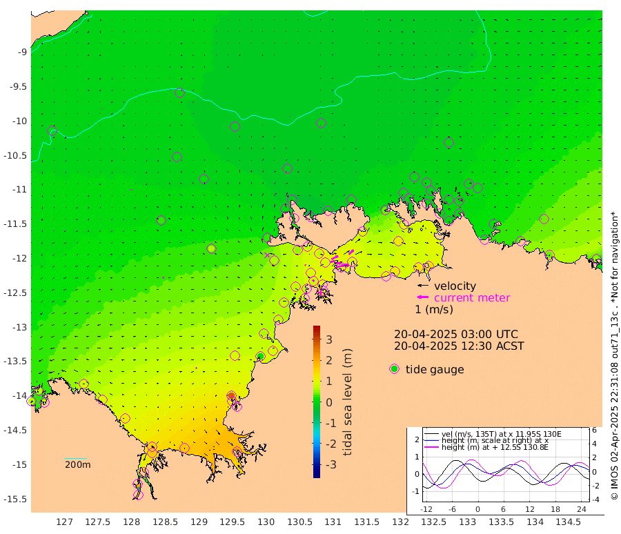 111cm/s 78T +4cm/s rms + 6cm/s 51T. Darwin_C1 52m 69cm/s 92T +4cm/s rms + 7cm/s -161T. Darwin_CW1 22m 42cm/s 70T +4cm/s rms + 8cm/s 61T. Darwin_CW2 34m 63cm/s 49T +3cm/s rms + 9cm/s 98T. Darwin_CW3 22m 61cm/s 91T +5cm/s rms + 7cm/s 88T. Darwin_C3 56m 67cm/s 66T +2cm/s rms + 9cm/s -126T. Darwin_CTbW 22m 1cm/s -7T +9cm/s rms + 2cm/s -110T. NWSLYN 196m 10cm/s -59T +1cm/s rms + 1cm/s -47T. DARBGF 30m 3cm/s -113T +7cm/s rms + 2cm/s -137T. ITFTIS 464m 6cm/s -131T +9cm/s rms + 1cm/s 74T. ITFMHB 146m 11cm/s -51T +4cm/s rms + 1cm/s -134T. ITFJBG 61m 12cm/s -66T +6cm/s rms + 4cm/s 121T. ITFFTB 108m 21cm/s -45T +4cm/s rms + 3cm/s 80T. NRSDAR 19m 72cm Carronade Island 77cm Guy Point 80cm Napier Broome Bay 89cm Lesueur Island 114cm Reveley Island 92cm Rocky Island 165cm Cape Domett 153cm Lacrosse Island 192cm Adolphus Island 198cm Pender Point 214cm Wyndham 30cm The Boxers 8cm Unnamed Shoal 4cm Loxton Shoal 159cm Pelican Island 12cm Calder Shoal -2cm Evans Shoal 232cm Quoin Island 135cm Port Keats 111cm Jones Point 273cm Catfish Island 87cm Cape Scott Offshore 14cm Cape Ford 87cm Anson Bay -7cm Goodrich Bank 67cm Peron Island North 73cm Point Jenny 70cm Native Point 69cm Fish Reef 78cm Tapa Bay 28cm Point Fawcett (Offshore) 82cm Burge Point 55cm Munkunuwa 60cm Beagle A 73cm Parsons Bank 85cm Fenton Patches -6cm Lynedoch Bank 88cm Hancox Shoal Area 98cm Nightcliff 90cm Darwin 78cm Charles Point Patches 94cm Glyde Point 123cm Chambers Bay 119cm Point Stuart 90cm Cape Hotham 121cm Christine Reef 134cm West Alligator Head 146cm East Field Island 94cm Two Hills Bay 60cm Newby Shoal 91cm Camp Point 70cm Medina Inlet South 11cm South Barlow Point 7cm St. Asaph Bay -10cm Cape Van Dieman -11cm Snake Bay -1cm Cache Point 5cm Echo Shoal 9cm Point Jahleel (Off) 39cm Cape Don 4cm Port Essington 8cm Smith Point - West 4cm NW Peacock Island 1cm North Of Jones Shoal 0cm Peacock Island 2cm Point David 4cm D'urville Point 1cm Money Shoal 4cm Copeland Island 10cm Cape Cockburn 7cm One Tree Point 12cm Hogmany Shoal 10cm New Year Island - West 10cm Grant Island 19cm Aurari Bay 35cm Cuthbert Point 19cm North Goulburn Island 40cm Paxie Shoal 43cm Entrance Island 52cm Yabooma Island