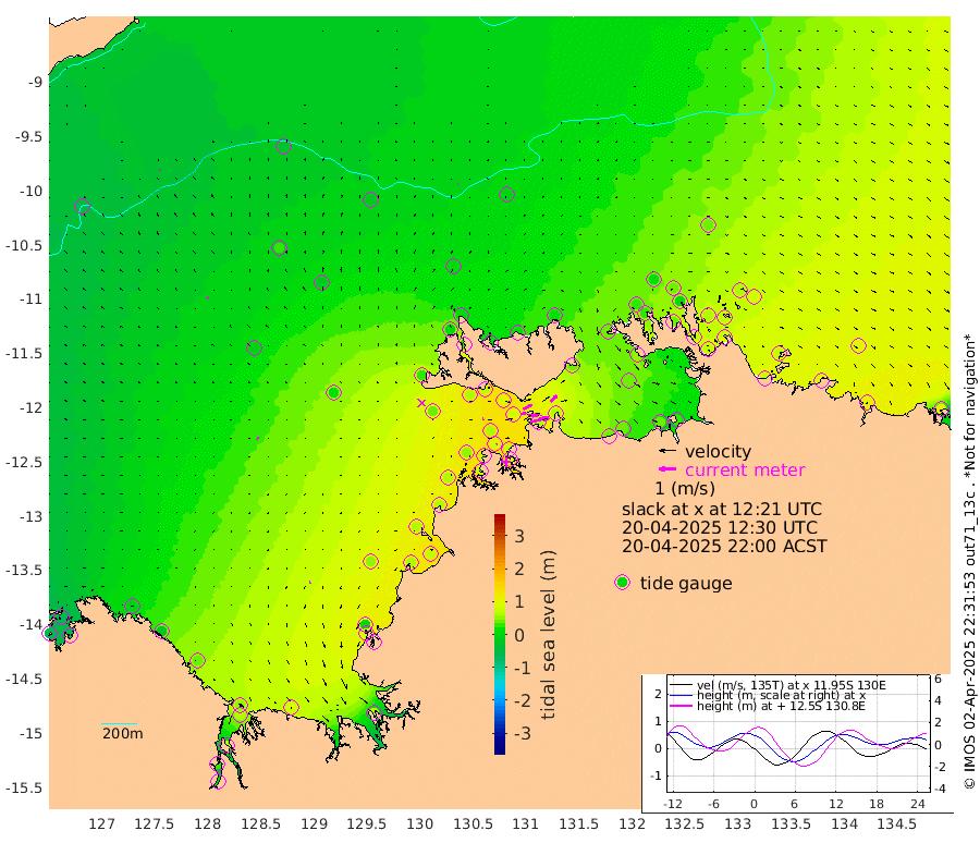 105cm/s 78T +4cm/s rms + 6cm/s 51T. Darwin_C1 52m 55cm/s 88T +4cm/s rms + 7cm/s -161T. Darwin_CW1 22m 30cm/s 76T +4cm/s rms + 8cm/s 61T. Darwin_CW2 34m 53cm/s 47T +3cm/s rms + 9cm/s 98T. Darwin_CW3 22m 50cm/s 90T +5cm/s rms + 7cm/s 88T. Darwin_C3 56m 57cm/s 63T +2cm/s rms + 9cm/s -126T. Darwin_CTbW 22m 2cm/s 86T +9cm/s rms + 2cm/s -110T. NWSLYN 196m 5cm/s 73T +1cm/s rms + 1cm/s -47T. DARBGF 30m 5cm/s -60T +7cm/s rms + 2cm/s -137T. ITFTIS 464m 9cm/s -28T +9cm/s rms + 1cm/s 74T. ITFMHB 146m 5cm/s -112T +4cm/s rms + 1cm/s -134T. ITFJBG 61m 9cm/s -69T +6cm/s rms + 4cm/s 121T. ITFFTB 108m 5cm/s 47T +4cm/s rms + 3cm/s 80T. NRSDAR 19m -58cm Carronade Island -57cm Guy Point -59cm Napier Broome Bay -5cm Lesueur Island 40cm Reveley Island -12cm Rocky Island 59cm Cape Domett 47cm Lacrosse Island 59cm Adolphus Island 25cm Pender Point 12cm Wyndham -4cm The Boxers 31cm Unnamed Shoal -28cm Loxton Shoal 80cm Pelican Island -11cm Calder Shoal -15cm Evans Shoal 65cm Quoin Island 78cm Port Keats 81cm Jones Point 8cm Catfish Island 56cm Cape Scott Offshore 60cm Cape Ford 70cm Anson Bay 4cm Goodrich Bank 64cm Peron Island North 58cm Point Jenny 59cm Native Point 56cm Fish Reef 74cm Tapa Bay 23cm Point Fawcett (Offshore) 72cm Burge Point 67cm Munkunuwa 38cm Beagle A 91cm Parsons Bank 64cm Fenton Patches -1cm Lynedoch Bank 89cm Hancox Shoal Area 78cm Nightcliff 92cm Darwin 80cm Charles Point Patches 66cm Glyde Point 42cm Chambers Bay 45cm Point Stuart 57cm Cape Hotham 42cm Christine Reef 44cm West Alligator Head 31cm East Field Island 48cm Two Hills Bay 18cm Newby Shoal 44cm Camp Point 68cm Medina Inlet South 28cm South Barlow Point 10cm St. Asaph Bay 7cm Cape Van Dieman 16cm Snake Bay 7cm Cache Point -49cm Echo Shoal 17cm Point Jahleel (Off) 39cm Cape Don 33cm Port Essington 33cm Smith Point - West 38cm NW Peacock Island 18cm North Of Jones Shoal 9cm Peacock Island 69cm Point David 44cm D'urville Point 37cm Money Shoal 70cm Copeland Island 82cm Cape Cockburn 58cm One Tree Point 88cm Hogmany Shoal 62cm New Year Island - West 70cm Grant Island 77cm Aurari Bay 91cm Cuthbert Point 79cm North Goulburn Island 94cm Paxie Shoal 103cm Entrance Island 112cm Yabooma Island