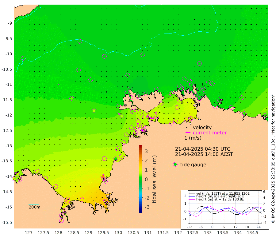 68cm/s 78T +4cm/s rms + 6cm/s 51T. Darwin_C1 52m 46cm/s 92T +4cm/s rms + 7cm/s -161T. Darwin_CW1 22m 27cm/s 72T +4cm/s rms + 8cm/s 61T. Darwin_CW2 34m 44cm/s 47T +3cm/s rms + 9cm/s 98T. Darwin_CW3 22m 39cm/s 91T +5cm/s rms + 7cm/s 88T. Darwin_C3 56m 44cm/s 66T +2cm/s rms + 9cm/s -126T. Darwin_CTbW 22m 1cm/s 59T +9cm/s rms + 2cm/s -110T. NWSLYN 196m 5cm/s -50T +1cm/s rms + 1cm/s -47T. DARBGF 30m 2cm/s -26T +7cm/s rms + 2cm/s -137T. ITFTIS 464m 1cm/s -112T +9cm/s rms + 1cm/s 74T. ITFMHB 146m 8cm/s -39T +4cm/s rms + 1cm/s -134T. ITFJBG 61m 7cm/s -46T +6cm/s rms + 4cm/s 121T. ITFFTB 108m 12cm/s -42T +4cm/s rms + 3cm/s 80T. NRSDAR 19m 84cm Carronade Island 86cm Guy Point 93cm Napier Broome Bay 91cm Lesueur Island 94cm Reveley Island 79cm Rocky Island 139cm Cape Domett 132cm Lacrosse Island 156cm Adolphus Island 170cm Pender Point 186cm Wyndham 39cm The Boxers 19cm Unnamed Shoal 13cm Loxton Shoal 128cm Pelican Island 22cm Calder Shoal 4cm Evans Shoal 185cm Quoin Island 114cm Port Keats 94cm Jones Point 234cm Catfish Island 75cm Cape Scott Offshore 21cm Cape Ford 75cm Anson Bay 0cm Goodrich Bank 55cm Peron Island North 67cm Point Jenny 65cm Native Point 63cm Fish Reef 68cm Tapa Bay 31cm Point Fawcett (Offshore) 73cm Burge Point 45cm Munkunuwa 60cm Beagle A 56cm Parsons Bank 77cm Fenton Patches 2cm Lynedoch Bank 69cm Hancox Shoal Area 84cm Nightcliff 74cm Darwin 67cm Charles Point Patches 80cm Glyde Point 106cm Chambers Bay 99cm Point Stuart 74cm Cape Hotham 102cm Christine Reef 112cm West Alligator Head 124cm East Field Island 77cm Two Hills Bay 64cm Newby Shoal 81cm Camp Point 61cm Medina Inlet South 14cm South Barlow Point 13cm St. Asaph Bay -2cm Cape Van Dieman -5cm Snake Bay 6cm Cache Point 17cm Echo Shoal 11cm Point Jahleel (Off) 34cm Cape Don 4cm Port Essington 6cm Smith Point - West 2cm NW Peacock Island 3cm North Of Jones Shoal 0cm Peacock Island -4cm Point David 1cm D'urville Point 2cm Money Shoal -3cm Copeland Island 1cm Cape Cockburn 2cm One Tree Point 0cm Hogmany Shoal 6cm New Year Island - West 3cm Grant Island 10cm Aurari Bay 20cm Cuthbert Point 10cm North Goulburn Island 28cm Paxie Shoal 27cm Entrance Island 33cm Yabooma Island