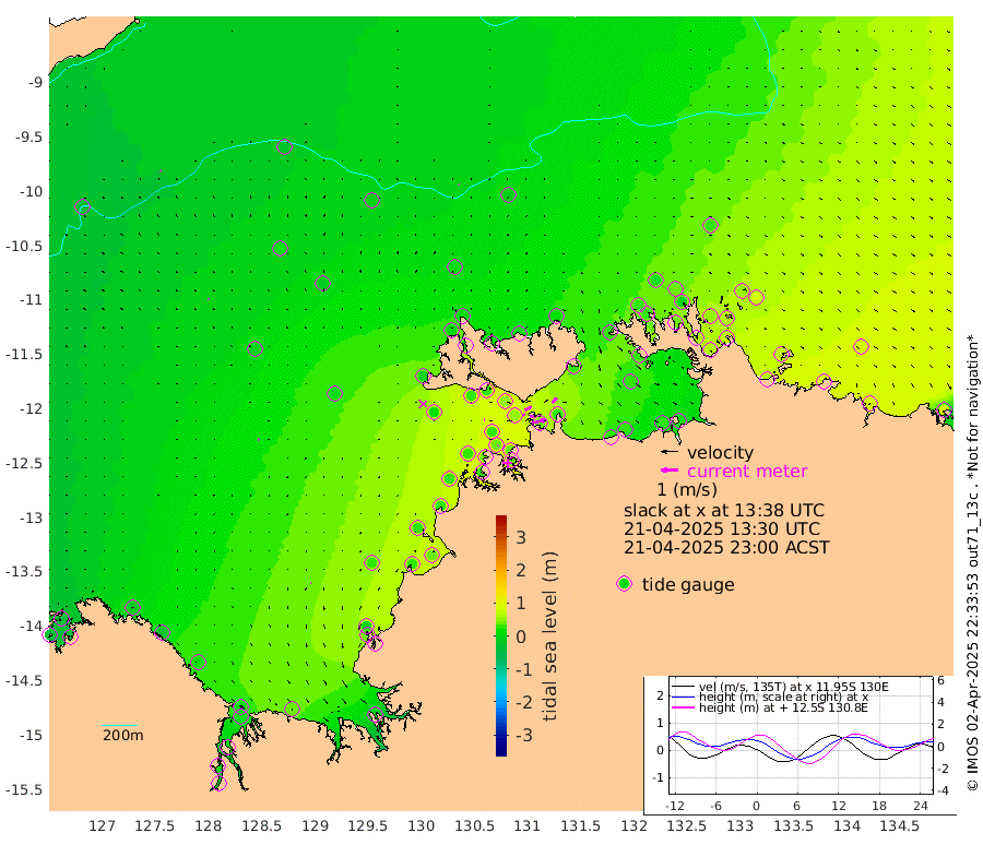 78cm/s 78T +4cm/s rms + 6cm/s 51T. Darwin_C1 52m 31cm/s 88T +4cm/s rms + 7cm/s -161T. Darwin_CW1 22m 14cm/s 78T +4cm/s rms + 8cm/s 61T. Darwin_CW2 34m 39cm/s 46T +3cm/s rms + 9cm/s 98T. Darwin_CW3 22m 23cm/s 91T +5cm/s rms + 7cm/s 88T. Darwin_C3 56m 43cm/s 63T +2cm/s rms + 9cm/s -126T. Darwin_CTbW 22m 3cm/s 128T +9cm/s rms + 2cm/s -110T. NWSLYN 196m 3cm/s 94T +1cm/s rms + 1cm/s -47T. DARBGF 30m 4cm/s -71T +7cm/s rms + 2cm/s -137T. ITFTIS 464m 5cm/s -32T +9cm/s rms + 1cm/s 74T. ITFMHB 146m 3cm/s -129T +4cm/s rms + 1cm/s -134T. ITFJBG 61m 5cm/s -82T +6cm/s rms + 4cm/s 121T. ITFFTB 108m 3cm/s 60T +4cm/s rms + 3cm/s 80T. NRSDAR 19m -40cm Carronade Island -38cm Guy Point -42cm Napier Broome Bay -12cm Lesueur Island 13cm Reveley Island -26cm Rocky Island 15cm Cape Domett 8cm Lacrosse Island 14cm Adolphus Island -8cm Pender Point -16cm Wyndham -7cm The Boxers 20cm Unnamed Shoal -24cm Loxton Shoal 35cm Pelican Island -14cm Calder Shoal -11cm Evans Shoal 10cm Quoin Island 31cm Port Keats 36cm Jones Point -5cm Catfish Island 25cm Cape Scott Offshore 24cm Cape Ford 34cm Anson Bay 3cm Goodrich Bank 31cm Peron Island North 29cm Point Jenny 30cm Native Point 24cm Fish Reef 39cm Tapa Bay 9cm Point Fawcett (Offshore) 31cm Burge Point 30cm Munkunuwa 14cm Beagle A 50cm Parsons Bank 27cm Fenton Patches -1cm Lynedoch Bank 50cm Hancox Shoal Area 37cm Nightcliff 44cm Darwin 39cm Charles Point Patches 35cm Glyde Point 24cm Chambers Bay 27cm Point Stuart 33cm Cape Hotham 25cm Christine Reef 25cm West Alligator Head 15cm East Field Island 31cm Two Hills Bay 1cm Newby Shoal 24cm Camp Point 30cm Medina Inlet South 13cm South Barlow Point 2cm St. Asaph Bay 6cm Cape Van Dieman 11cm Snake Bay 7cm Cache Point -37cm Echo Shoal 14cm Point Jahleel (Off) 29cm Cape Don 28cm Port Essington 30cm Smith Point - West 35cm NW Peacock Island 17cm North Of Jones Shoal 8cm Peacock Island 61cm Point David 39cm D'urville Point 34cm Money Shoal 62cm Copeland Island 72cm Cape Cockburn 50cm One Tree Point 81cm Hogmany Shoal 54cm New Year Island - West 61cm Grant Island 67cm Aurari Bay 81cm Cuthbert Point 69cm North Goulburn Island 80cm Paxie Shoal 89cm Entrance Island 97cm Yabooma Island