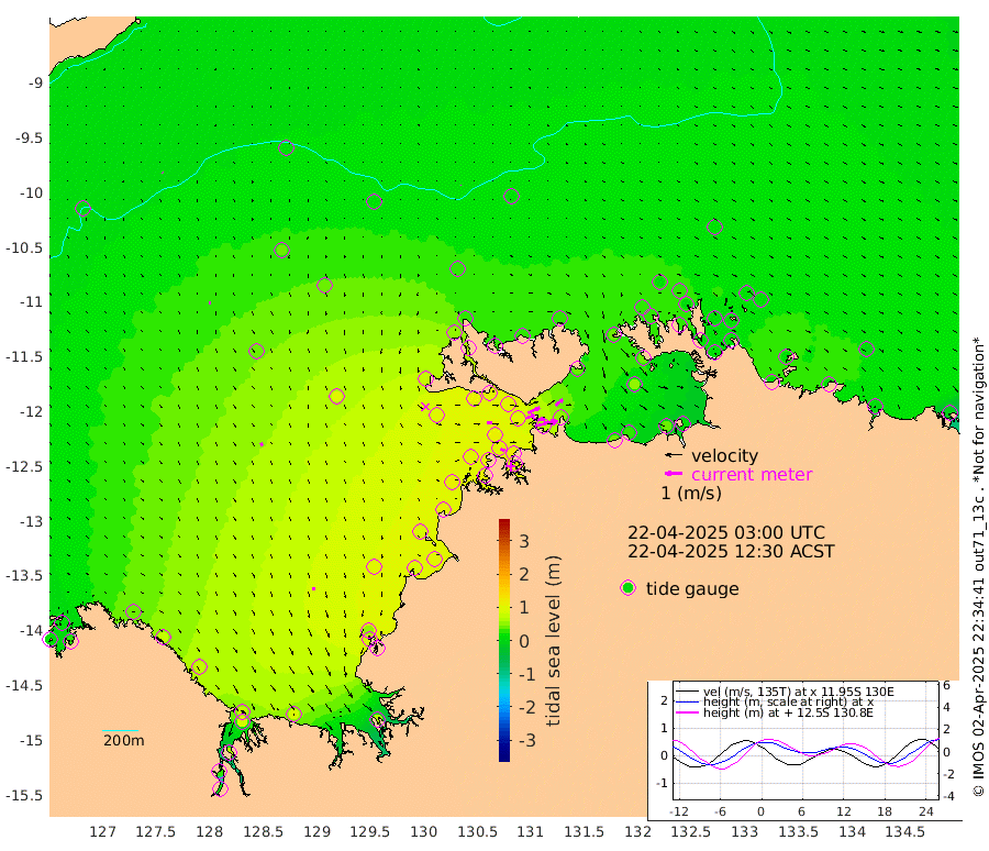 128cm/s 78T +4cm/s rms + 6cm/s 51T. Darwin_C1 52m 70cm/s 92T +4cm/s rms + 7cm/s -161T. Darwin_CW1 22m 52cm/s 72T +4cm/s rms + 8cm/s 61T. Darwin_CW2 34m 55cm/s 52T +3cm/s rms + 9cm/s 98T. Darwin_CW3 22m 66cm/s 89T +5cm/s rms + 7cm/s 88T. Darwin_C3 56m 76cm/s 65T +2cm/s rms + 9cm/s -126T. Darwin_CTbW 22m 1cm/s -168T +9cm/s rms + 2cm/s -110T. NWSLYN 196m 29cm/s 87T +1cm/s rms + 1cm/s -47T. DARBGF 30m 2cm/s 159T +7cm/s rms + 2cm/s -137T. ITFTIS 464m 13cm/s 180T +9cm/s rms + 1cm/s 74T. ITFMHB 146m 15cm/s 165T +4cm/s rms + 1cm/s -134T. ITFJBG 61m 15cm/s 148T +6cm/s rms + 4cm/s 121T. ITFFTB 108m 25cm/s 113T +4cm/s rms + 3cm/s 80T. NRSDAR 19m 22cm Carronade Island 22cm Guy Point 27cm Napier Broome Bay 38cm Lesueur Island 68cm Reveley Island 76cm Rocky Island 81cm Cape Domett 76cm Lacrosse Island 67cm Adolphus Island 32cm Pender Point 21cm Wyndham 45cm The Boxers 40cm Unnamed Shoal 18cm Loxton Shoal 80cm Pelican Island 41cm Calder Shoal 21cm Evans Shoal 57cm Quoin Island 106cm Port Keats 81cm Jones Point 49cm Catfish Island 90cm Cape Scott Offshore 83cm Cape Ford 97cm Anson Bay 24cm Goodrich Bank 89cm Peron Island North 105cm Point Jenny 105cm Native Point 99cm Fish Reef 104cm Tapa Bay 68cm Point Fawcett (Offshore) 110cm Burge Point 101cm Munkunuwa 98cm Beagle A 101cm Parsons Bank 109cm Fenton Patches 16cm Lynedoch Bank 96cm Hancox Shoal Area 114cm Nightcliff 99cm Darwin 92cm Charles Point Patches 67cm Glyde Point 42cm Chambers Bay 32cm Point Stuart 50cm Cape Hotham 53cm Christine Reef 35cm West Alligator Head 20cm East Field Island 41cm Two Hills Bay 90cm Newby Shoal 36cm Camp Point 100cm Medina Inlet South 60cm South Barlow Point 49cm St. Asaph Bay 26cm Cape Van Dieman 27cm Snake Bay 28cm Cache Point 6cm Echo Shoal 30cm Point Jahleel (Off) 41cm Cape Don 23cm Port Essington 31cm Smith Point - West 24cm NW Peacock Island 21cm North Of Jones Shoal 7cm Peacock Island 12cm Point David 27cm D'urville Point 12cm Money Shoal 11cm Copeland Island 22cm Cape Cockburn 16cm One Tree Point 12cm Hogmany Shoal 16cm New Year Island - West 18cm Grant Island 13cm Aurari Bay 16cm Cuthbert Point 17cm North Goulburn Island 8cm Paxie Shoal 8cm Entrance Island -7cm Yabooma Island
