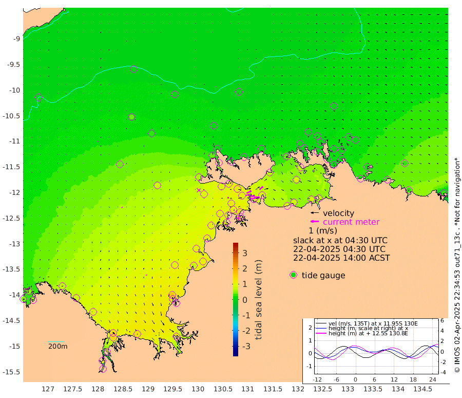 107cm/s 78T +4cm/s rms + 6cm/s 51T. Darwin_C1 52m 66cm/s 91T +4cm/s rms + 7cm/s -161T. Darwin_CW1 22m 48cm/s 72T +4cm/s rms + 8cm/s 61T. Darwin_CW2 34m 56cm/s 50T +3cm/s rms + 9cm/s 98T. Darwin_CW3 22m 64cm/s 90T +5cm/s rms + 7cm/s 88T. Darwin_C3 56m 64cm/s 65T +2cm/s rms + 9cm/s -126T. Darwin_CTbW 22m 1cm/s 41T +9cm/s rms + 2cm/s -110T. NWSLYN 196m 15cm/s 78T +1cm/s rms + 1cm/s -47T. DARBGF 30m 1cm/s -7T +7cm/s rms + 2cm/s -137T. ITFTIS 464m 5cm/s -174T +9cm/s rms + 1cm/s 74T. ITFMHB 146m 6cm/s -178T +4cm/s rms + 1cm/s -134T. ITFJBG 61m 4cm/s 157T +6cm/s rms + 4cm/s 121T. ITFFTB 108m 9cm/s 94T +4cm/s rms + 3cm/s 80T. NRSDAR 19m 48cm Carronade Island 49cm Guy Point 57cm Napier Broome Bay 71cm Lesueur Island 96cm Reveley Island 82cm Rocky Island 135cm Cape Domett 128cm Lacrosse Island 135cm Adolphus Island 119cm Pender Point 120cm Wyndham 45cm The Boxers 36cm Unnamed Shoal 8cm Loxton Shoal 131cm Pelican Island 32cm Calder Shoal 6cm Evans Shoal 147cm Quoin Island 139cm Port Keats 116cm Jones Point 162cm Catfish Island 103cm Cape Scott Offshore 73cm Cape Ford 111cm Anson Bay 9cm Goodrich Bank 90cm Peron Island North 108cm Point Jenny 107cm Native Point 103cm Fish Reef 110cm Tapa Bay 58cm Point Fawcett (Offshore) 119cm Burge Point 94cm Munkunuwa 99cm Beagle A 102cm Parsons Bank 120cm Fenton Patches 5cm Lynedoch Bank 106cm Hancox Shoal Area 127cm Nightcliff 114cm Darwin 104cm Charles Point Patches 94cm Glyde Point 92cm Chambers Bay 81cm Point Stuart 79cm Cape Hotham 93cm Christine Reef 89cm West Alligator Head 87cm East Field Island 71cm Two Hills Bay 89cm Newby Shoal 74cm Camp Point 103cm Medina Inlet South 43cm South Barlow Point 34cm St. Asaph Bay 10cm Cape Van Dieman 9cm Snake Bay 15cm Cache Point 2cm Echo Shoal 20cm Point Jahleel (Off) 43cm Cape Don 14cm Port Essington 17cm Smith Point - West 12cm NW Peacock Island 10cm North Of Jones Shoal 3cm Peacock Island 6cm Point David 13cm D'urville Point 7cm Money Shoal 6cm Copeland Island 14cm Cape Cockburn 10cm One Tree Point 7cm Hogmany Shoal 14cm New Year Island - West 12cm Grant Island 17cm Aurari Bay 24cm Cuthbert Point 18cm North Goulburn Island 28cm Paxie Shoal 29cm Entrance Island 27cm Yabooma Island