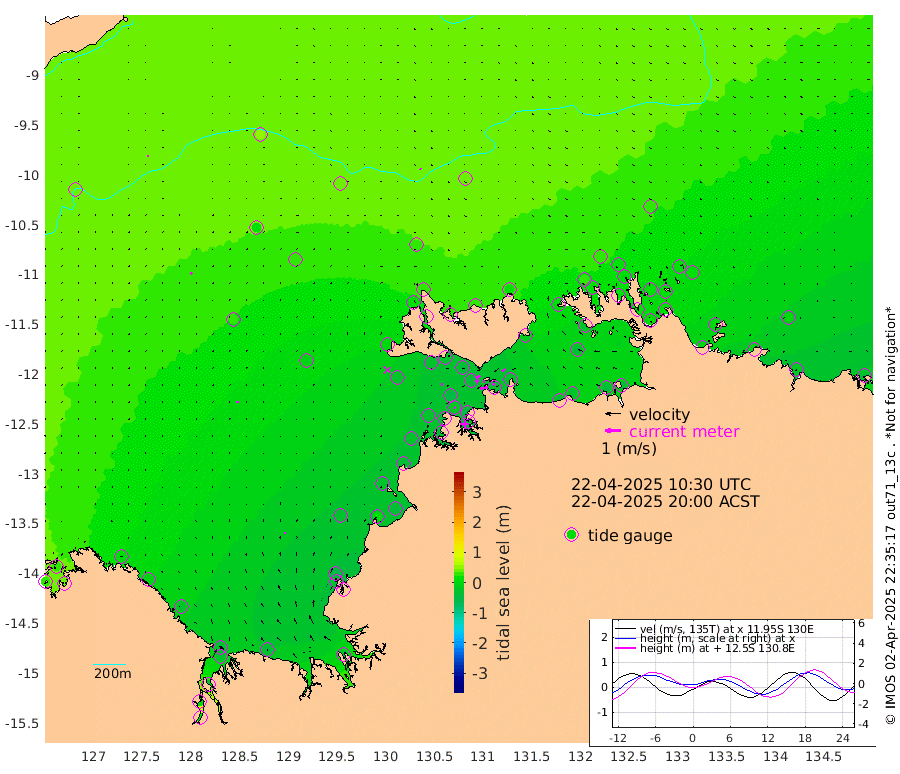 49cm/s -102T +4cm/s rms + 6cm/s 51T. Darwin_C1 52m 15cm/s -86T +4cm/s rms + 7cm/s -161T. Darwin_CW1 22m 21cm/s -112T +4cm/s rms + 8cm/s 61T. Darwin_CW2 34m 24cm/s -132T +3cm/s rms + 9cm/s 98T. Darwin_CW3 22m 16cm/s -91T +5cm/s rms + 7cm/s 88T. Darwin_C3 56m 33cm/s -115T +2cm/s rms + 9cm/s -126T. Darwin_CTbW 22m 6cm/s 130T +9cm/s rms + 2cm/s -110T. NWSLYN 196m 11cm/s -91T +1cm/s rms + 1cm/s -47T. DARBGF 30m 6cm/s 18T +7cm/s rms + 2cm/s -137T. ITFTIS 464m 10cm/s 16T +9cm/s rms + 1cm/s 74T. ITFMHB 146m 12cm/s -9T +4cm/s rms + 1cm/s -134T. ITFJBG 61m 10cm/s -8T +6cm/s rms + 4cm/s 121T. ITFFTB 108m 11cm/s -67T +4cm/s rms + 3cm/s 80T. NRSDAR 19m 26cm Carronade Island 29cm Guy Point 34cm Napier Broome Bay 8cm Lesueur Island -23cm Reveley Island -7cm Rocky Island -29cm Cape Domett -36cm Lacrosse Island -28cm Adolphus Island 1cm Pender Point 1cm Wyndham 25cm The Boxers 15cm Unnamed Shoal 48cm Loxton Shoal -39cm Pelican Island 25cm Calder Shoal 38cm Evans Shoal -31cm Quoin Island -41cm Port Keats -36cm Jones Point -55cm Catfish Island -31cm Cape Scott Offshore 20cm Cape Ford -37cm Anson Bay 33cm Goodrich Bank -24cm Peron Island North -34cm Point Jenny -32cm Native Point -32cm Fish Reef -36cm Tapa Bay 2cm Point Fawcett (Offshore) -38cm Burge Point -32cm Munkunuwa -31cm Beagle A -35cm Parsons Bank -46cm Fenton Patches 36cm Lynedoch Bank -39cm Hancox Shoal Area -56cm Nightcliff -32cm Darwin -18cm Charles Point Patches -28cm Glyde Point -36cm Chambers Bay -31cm Point Stuart -29cm Cape Hotham -34cm Christine Reef -37cm West Alligator Head -35cm East Field Island -23cm Two Hills Bay -3cm Newby Shoal -16cm Camp Point -27cm Medina Inlet South 9cm South Barlow Point 15cm St. Asaph Bay 31cm Cape Van Dieman 31cm Snake Bay 28cm Cache Point 42cm Echo Shoal 19cm Point Jahleel (Off) 5cm Cape Don 25cm Port Essington 17cm Smith Point - West 21cm NW Peacock Island 26cm North Of Jones Shoal 8cm Peacock Island 15cm Point David 18cm D'urville Point 28cm Money Shoal 12cm Copeland Island 15cm Cape Cockburn 18cm One Tree Point 22cm Hogmany Shoal 15cm New Year Island - West 16cm Grant Island -1cm Aurari Bay 2cm Cuthbert Point 6cm North Goulburn Island 3cm Paxie Shoal -14cm Entrance Island -24cm Yabooma Island
