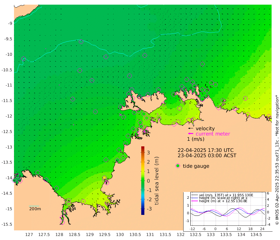 7cm/s 79T +4cm/s rms + 6cm/s 51T. Darwin_C1 52m 8cm/s -80T +4cm/s rms + 7cm/s -161T. Darwin_CW1 22m 1cm/s 55T +4cm/s rms + 8cm/s 61T. Darwin_CW2 34m 17cm/s 31T +3cm/s rms + 9cm/s 98T. Darwin_CW3 22m 3cm/s -97T +5cm/s rms + 7cm/s 88T. Darwin_C3 56m 3cm/s 61T +2cm/s rms + 9cm/s -126T. Darwin_CTbW 22m 4cm/s -34T +9cm/s rms + 2cm/s -110T. NWSLYN 196m 8cm/s -88T +1cm/s rms + 1cm/s -47T. DARBGF 30m 5cm/s -110T +7cm/s rms + 2cm/s -137T. ITFTIS 464m 6cm/s -44T +9cm/s rms + 1cm/s 74T. ITFMHB 146m 3cm/s -110T +4cm/s rms + 1cm/s -134T. ITFJBG 61m 8cm/s -71T +6cm/s rms + 4cm/s 121T. ITFFTB 108m 8cm/s -50T +4cm/s rms + 3cm/s 80T. NRSDAR 19m -40cm Carronade Island -41cm Guy Point -51cm Napier Broome Bay -10cm Lesueur Island 17cm Reveley Island -46cm Rocky Island 36cm Cape Domett 39cm Lacrosse Island 49cm Adolphus Island 35cm Pender Point 43cm Wyndham -48cm The Boxers -28cm Unnamed Shoal -75cm Loxton Shoal 58cm Pelican Island -57cm Calder Shoal -62cm Evans Shoal 68cm Quoin Island 32cm Port Keats 45cm Jones Point 106cm Catfish Island 14cm Cape Scott Offshore -37cm Cape Ford 23cm Anson Bay -50cm Goodrich Bank 3cm Peron Island North 8cm Point Jenny 6cm Native Point 6cm Fish Reef 18cm Tapa Bay -30cm Point Fawcett (Offshore) 13cm Burge Point -1cm Munkunuwa -2cm Beagle A 18cm Parsons Bank 21cm Fenton Patches -50cm Lynedoch Bank 33cm Hancox Shoal Area 34cm Nightcliff 23cm Darwin 10cm Charles Point Patches 36cm Glyde Point 65cm Chambers Bay 61cm Point Stuart 42cm Cape Hotham 49cm Christine Reef 68cm West Alligator Head 76cm East Field Island 39cm Two Hills Bay -38cm Newby Shoal 40cm Camp Point 2cm Medina Inlet South -39cm South Barlow Point -43cm St. Asaph Bay -49cm Cape Van Dieman -49cm Snake Bay -44cm Cache Point -65cm Echo Shoal -31cm Point Jahleel (Off) -6cm Cape Don -26cm Port Essington -23cm Smith Point - West -20cm NW Peacock Island -32cm North Of Jones Shoal -9cm Peacock Island 8cm Point David -16cm D'urville Point -16cm Money Shoal 13cm Copeland Island 9cm Cape Cockburn -2cm One Tree Point 15cm Hogmany Shoal 5cm New Year Island - West 6cm Grant Island 34cm Aurari Bay 41cm Cuthbert Point 24cm North Goulburn Island 51cm Paxie Shoal 73cm Entrance Island 105cm Yabooma Island