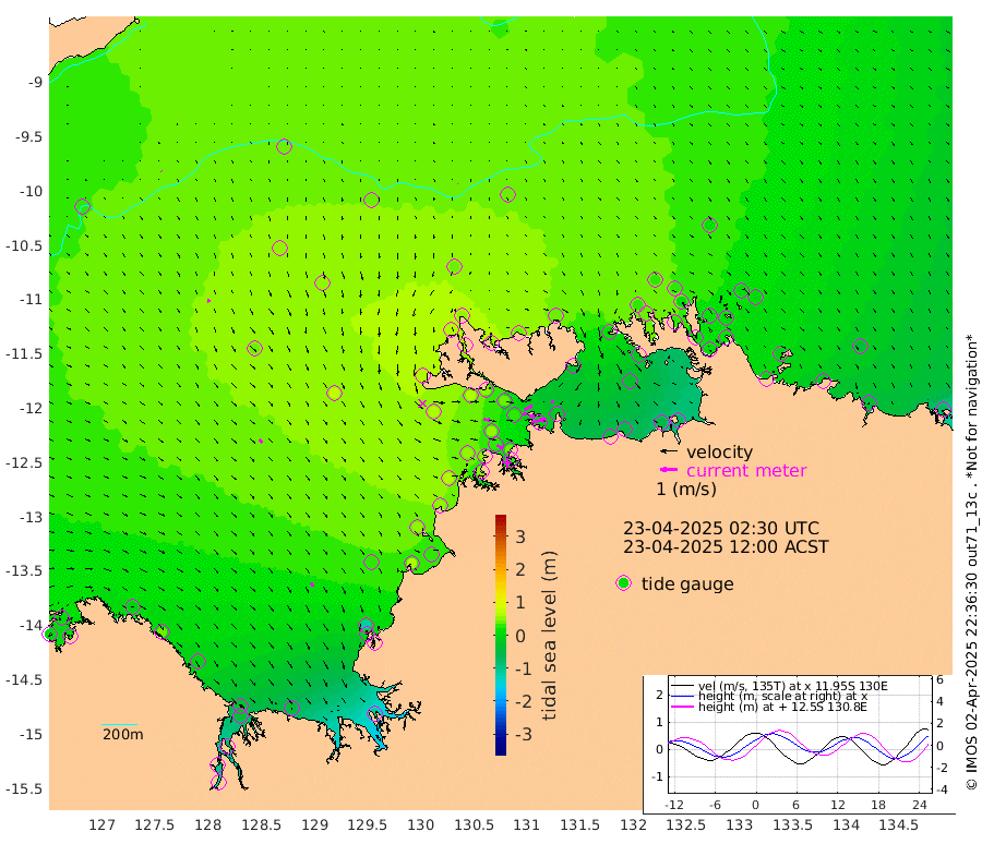 77cm/s 78T +4cm/s rms + 6cm/s 51T. Darwin_C1 52m 36cm/s 94T +4cm/s rms + 7cm/s -161T. Darwin_CW1 22m 28cm/s 72T +4cm/s rms + 8cm/s 61T. Darwin_CW2 34m 18cm/s 69T +3cm/s rms + 9cm/s 98T. Darwin_CW3 22m 27cm/s 88T +5cm/s rms + 7cm/s 88T. Darwin_C3 56m 51cm/s 65T +2cm/s rms + 9cm/s -126T. Darwin_CTbW 22m 3cm/s -172T +9cm/s rms + 2cm/s -110T. NWSLYN 196m 38cm/s 93T +1cm/s rms + 1cm/s -47T. DARBGF 30m 5cm/s 130T +7cm/s rms + 2cm/s -137T. ITFTIS 464m 17cm/s 168T +9cm/s rms + 1cm/s 74T. ITFMHB 146m 24cm/s 151T +4cm/s rms + 1cm/s -134T. ITFJBG 61m 27cm/s 138T +6cm/s rms + 4cm/s 121T. ITFFTB 108m 38cm/s 121T +4cm/s rms + 3cm/s 80T. NRSDAR 19m 9cm Carronade Island 5cm Guy Point 11cm Napier Broome Bay -2cm Lesueur Island -3cm Reveley Island 43cm Rocky Island -33cm Cape Domett -26cm Lacrosse Island -65cm Adolphus Island -99cm Pender Point -116cm Wyndham 45cm The Boxers 46cm Unnamed Shoal 41cm Loxton Shoal -37cm Pelican Island 53cm Calder Shoal 44cm Evans Shoal -106cm Quoin Island 9cm Port Keats -8cm Jones Point -113cm Catfish Island 32cm Cape Scott Offshore 60cm Cape Ford 34cm Anson Bay 44cm Goodrich Bank 45cm Peron Island North 56cm Point Jenny 57cm Native Point 51cm Fish Reef 46cm Tapa Bay 60cm Point Fawcett (Offshore) 47cm Burge Point 60cm Munkunuwa 62cm Beagle A 43cm Parsons Bank 47cm Fenton Patches 35cm Lynedoch Bank 27cm Hancox Shoal Area 41cm Nightcliff 27cm Darwin 30cm Charles Point Patches -3cm Glyde Point -44cm Chambers Bay -49cm Point Stuart -14cm Cape Hotham -26cm Christine Reef -56cm West Alligator Head -79cm East Field Island -20cm Two Hills Bay 69cm Newby Shoal -31cm Camp Point 48cm Medina Inlet South 62cm South Barlow Point 58cm St. Asaph Bay 47cm Cape Van Dieman 47cm Snake Bay 44cm Cache Point 30cm Echo Shoal 37cm Point Jahleel (Off) 21cm Cape Don 28cm Port Essington 36cm Smith Point - West 30cm NW Peacock Island 32cm North Of Jones Shoal 10cm Peacock Island 8cm Point David 31cm D'urville Point 15cm Money Shoal 5cm Copeland Island 14cm Cape Cockburn 12cm One Tree Point 1cm Hogmany Shoal 9cm New Year Island - West 10cm Grant Island -6cm Aurari Bay -15cm Cuthbert Point -1cm North Goulburn Island -35cm Paxie Shoal -41cm Entrance Island -72cm Yabooma Island