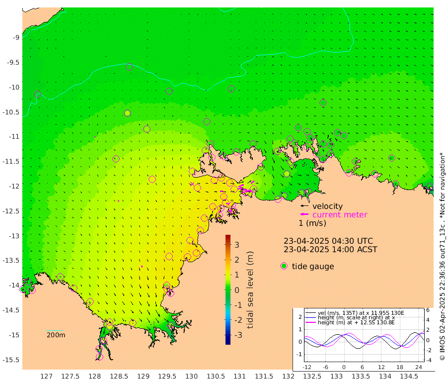 122cm/s 78T +4cm/s rms + 6cm/s 51T. Darwin_C1 52m 75cm/s 90T +4cm/s rms + 7cm/s -161T. Darwin_CW1 22m 57cm/s 73T +4cm/s rms + 8cm/s 61T. Darwin_CW2 34m 53cm/s 52T +3cm/s rms + 9cm/s 98T. Darwin_CW3 22m 72cm/s 89T +5cm/s rms + 7cm/s 88T. Darwin_C3 56m 74cm/s 65T +2cm/s rms + 9cm/s -126T. Darwin_CTbW 22m 1cm/s 85T +9cm/s rms + 2cm/s -110T. NWSLYN 196m 34cm/s 87T +1cm/s rms + 1cm/s -47T. DARBGF 30m 2cm/s 62T +7cm/s rms + 2cm/s -137T. ITFTIS 464m 10cm/s 172T +9cm/s rms + 1cm/s 74T. ITFMHB 146m 20cm/s 161T +4cm/s rms + 1cm/s -134T. ITFJBG 61m 17cm/s 139T +6cm/s rms + 4cm/s 121T. ITFFTB 108m 30cm/s 115T +4cm/s rms + 3cm/s 80T. NRSDAR 19m 17cm Carronade Island 13cm Guy Point 24cm Napier Broome Bay 47cm Lesueur Island 77cm Reveley Island 74cm Rocky Island 98cm Cape Domett 95cm Lacrosse Island 75cm Adolphus Island 36cm Pender Point 21cm Wyndham 52cm The Boxers 57cm Unnamed Shoal 12cm Loxton Shoal 99cm Pelican Island 46cm Calder Shoal 16cm Evans Shoal 64cm Quoin Island 131cm Port Keats 111cm Jones Point 56cm Catfish Island 112cm Cape Scott Offshore 116cm Cape Ford 124cm Anson Bay 25cm Goodrich Bank 109cm Peron Island North 130cm Point Jenny 130cm Native Point 126cm Fish Reef 131cm Tapa Bay 82cm Point Fawcett (Offshore) 140cm Burge Point 125cm Munkunuwa 123cm Beagle A 124cm Parsons Bank 140cm Fenton Patches 15cm Lynedoch Bank 118cm Hancox Shoal Area 142cm Nightcliff 128cm Darwin 119cm Charles Point Patches 87cm Glyde Point 55cm Chambers Bay 42cm Point Stuart 65cm Cape Hotham 61cm Christine Reef 44cm West Alligator Head 28cm East Field Island 50cm Two Hills Bay 106cm Newby Shoal 50cm Camp Point 125cm Medina Inlet South 71cm South Barlow Point 57cm St. Asaph Bay 29cm Cape Van Dieman 30cm Snake Bay 30cm Cache Point -1cm Echo Shoal 33cm Point Jahleel (Off) 48cm Cape Don 26cm Port Essington 32cm Smith Point - West 25cm NW Peacock Island 21cm North Of Jones Shoal 7cm Peacock Island 17cm Point David 28cm D'urville Point 15cm Money Shoal 15cm Copeland Island 26cm Cape Cockburn 19cm One Tree Point 13cm Hogmany Shoal 22cm New Year Island - West 21cm Grant Island 20cm Aurari Bay 21cm Cuthbert Point 23cm North Goulburn Island 18cm Paxie Shoal 18cm Entrance Island 5cm Yabooma Island