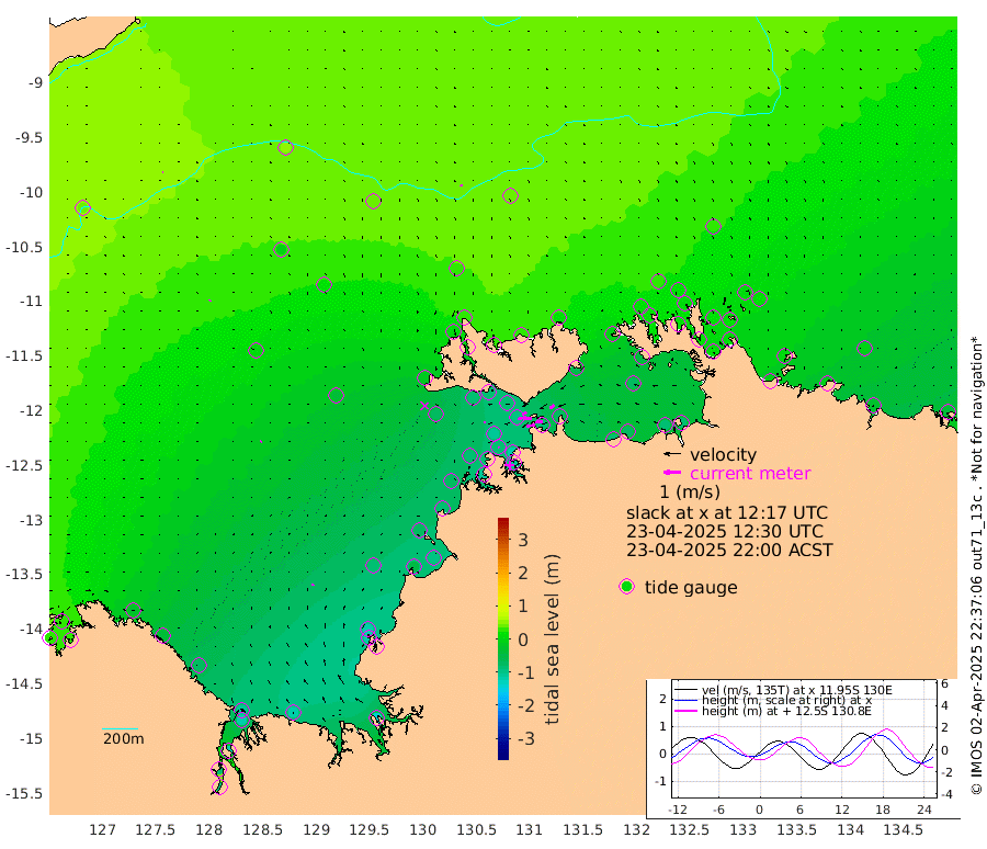 50cm/s -102T +4cm/s rms + 6cm/s 51T. Darwin_C1 52m 38cm/s -88T +4cm/s rms + 7cm/s -161T. Darwin_CW1 22m 39cm/s -108T +4cm/s rms + 8cm/s 61T. Darwin_CW2 34m 31cm/s -139T +3cm/s rms + 9cm/s 98T. Darwin_CW3 22m 53cm/s -91T +5cm/s rms + 7cm/s 88T. Darwin_C3 56m 28cm/s -114T +2cm/s rms + 9cm/s -126T. Darwin_CTbW 22m 8cm/s 150T +9cm/s rms + 2cm/s -110T. NWSLYN 196m 11cm/s -103T +1cm/s rms + 1cm/s -47T. DARBGF 30m 3cm/s 50T +7cm/s rms + 2cm/s -137T. ITFTIS 464m 4cm/s 45T +9cm/s rms + 1cm/s 74T. ITFMHB 146m 9cm/s 11T +4cm/s rms + 1cm/s -134T. ITFJBG 61m 4cm/s 48T +6cm/s rms + 4cm/s 121T. ITFFTB 108m 9cm/s -76T +4cm/s rms + 3cm/s 80T. NRSDAR 19m 23cm Carronade Island 27cm Guy Point 29cm Napier Broome Bay -28cm Lesueur Island -76cm Reveley Island -37cm Rocky Island -113cm Cape Domett -112cm Lacrosse Island -116cm Adolphus Island -81cm Pender Point -79cm Wyndham 9cm The Boxers -1cm Unnamed Shoal 46cm Loxton Shoal -120cm Pelican Island 14cm Calder Shoal 40cm Evans Shoal -137cm Quoin Island -119cm Port Keats -113cm Jones Point -120cm Catfish Island -81cm Cape Scott Offshore -53cm Cape Ford -92cm Anson Bay 30cm Goodrich Bank -71cm Peron Island North -79cm Point Jenny -78cm Native Point -85cm Fish Reef -90cm Tapa Bay -21cm Point Fawcett (Offshore) -102cm Burge Point -81cm Munkunuwa -75cm Beagle A -89cm Parsons Bank -108cm Fenton Patches 34cm Lynedoch Bank -94cm Hancox Shoal Area -116cm Nightcliff -102cm Darwin -83cm Charles Point Patches -81cm Glyde Point -79cm Chambers Bay -72cm Point Stuart -73cm Cape Hotham -71cm Christine Reef -81cm West Alligator Head -82cm East Field Island -56cm Two Hills Bay -38cm Newby Shoal -59cm Camp Point -83cm Medina Inlet South -10cm South Barlow Point 2cm St. Asaph Bay 29cm Cape Van Dieman 27cm Snake Bay 26cm Cache Point 44cm Echo Shoal 13cm Point Jahleel (Off) -10cm Cape Don 21cm Port Essington 17cm Smith Point - West 21cm NW Peacock Island 26cm North Of Jones Shoal 9cm Peacock Island 15cm Point David 18cm D'urville Point 25cm Money Shoal 12cm Copeland Island 14cm Cape Cockburn 16cm One Tree Point 22cm Hogmany Shoal 11cm New Year Island - West 13cm Grant Island -6cm Aurari Bay -3cm Cuthbert Point 3cm North Goulburn Island -9cm Paxie Shoal -25cm Entrance Island -38cm Yabooma Island