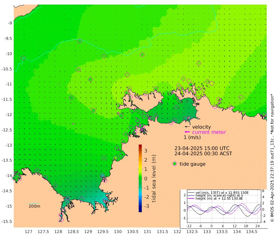 33cm/s 78T +4cm/s rms + 6cm/s 51T. Darwin_C1 52m 1cm/s 38T +4cm/s rms + 7cm/s -161T. Darwin_CW1 22m 1cm/s 162T +4cm/s rms + 8cm/s 61T. Darwin_CW2 34m 3cm/s 131T +3cm/s rms + 9cm/s 98T. Darwin_CW3 22m 12cm/s -90T +5cm/s rms + 7cm/s 88T. Darwin_C3 56m 27cm/s 62T +2cm/s rms + 9cm/s -126T. Darwin_CTbW 22m 8cm/s 152T +9cm/s rms + 2cm/s -110T. NWSLYN 196m 25cm/s 99T +1cm/s rms + 1cm/s -47T. DARBGF 30m 2cm/s 72T +7cm/s rms + 2cm/s -137T. ITFTIS 464m 7cm/s 151T +9cm/s rms + 1cm/s 74T. ITFMHB 146m 19cm/s 140T +4cm/s rms + 1cm/s -134T. ITFJBG 61m 20cm/s 132T +6cm/s rms + 4cm/s 121T. ITFFTB 108m 27cm/s 126T +4cm/s rms + 3cm/s 80T. NRSDAR 19m -16cm Carronade Island -16cm Guy Point -20cm Napier Broome Bay -28cm Lesueur Island -41cm Reveley Island -47cm Rocky Island -78cm Cape Domett -72cm Lacrosse Island -104cm Adolphus Island -129cm Pender Point -142cm Wyndham 18cm The Boxers 32cm Unnamed Shoal 14cm Loxton Shoal -59cm Pelican Island 20cm Calder Shoal 26cm Evans Shoal -147cm Quoin Island -40cm Port Keats -33cm Jones Point -112cm Catfish Island -2cm Cape Scott Offshore 35cm Cape Ford 4cm Anson Bay 34cm Goodrich Bank 11cm Peron Island North 22cm Point Jenny 21cm Native Point 10cm Fish Reef 15cm Tapa Bay 34cm Point Fawcett (Offshore) -1cm Burge Point 12cm Munkunuwa 16cm Beagle A 11cm Parsons Bank 0cm Fenton Patches 25cm Lynedoch Bank 6cm Hancox Shoal Area -3cm Nightcliff -7cm Darwin 5cm Charles Point Patches -18cm Glyde Point -38cm Chambers Bay -46cm Point Stuart -21cm Cape Hotham -32cm Christine Reef -56cm West Alligator Head -75cm East Field Island -22cm Two Hills Bay 13cm Newby Shoal -29cm Camp Point 6cm Medina Inlet South 33cm South Barlow Point 33cm St. Asaph Bay 39cm Cape Van Dieman 37cm Snake Bay 38cm Cache Point 7cm Echo Shoal 31cm Point Jahleel (Off) 22cm Cape Don 40cm Port Essington 44cm Smith Point - West 46cm NW Peacock Island 37cm North Of Jones Shoal 14cm Peacock Island 50cm Point David 49cm D'urville Point 42cm Money Shoal 50cm Copeland Island 59cm Cape Cockburn 44cm One Tree Point 65cm Hogmany Shoal 44cm New Year Island - West 48cm Grant Island 41cm Aurari Bay 46cm Cuthbert Point 48cm North Goulburn Island 34cm Paxie Shoal 35cm Entrance Island 26cm Yabooma Island
