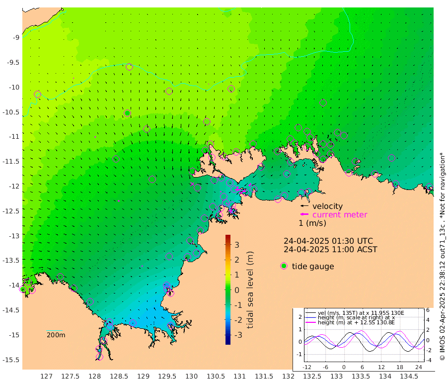 42cm/s -102T +4cm/s rms + 6cm/s 51T. Darwin_C1 52m 44cm/s -92T +4cm/s rms + 7cm/s -161T. Darwin_CW1 22m 31cm/s -105T +4cm/s rms + 8cm/s 61T. Darwin_CW2 34m 39cm/s -141T +3cm/s rms + 9cm/s 98T. Darwin_CW3 22m 60cm/s -90T +5cm/s rms + 7cm/s 88T. Darwin_C3 56m 18cm/s -115T +2cm/s rms + 9cm/s -126T. Darwin_CTbW 22m 3cm/s -151T +9cm/s rms + 2cm/s -110T. NWSLYN 196m 12cm/s 112T +1cm/s rms + 1cm/s -47T. DARBGF 30m 7cm/s 131T +7cm/s rms + 2cm/s -137T. ITFTIS 464m 13cm/s 158T +9cm/s rms + 1cm/s 74T. ITFMHB 146m 12cm/s 126T +4cm/s rms + 1cm/s -134T. ITFJBG 61m 20cm/s 128T +6cm/s rms + 4cm/s 121T. ITFFTB 108m 16cm/s 136T +4cm/s rms + 3cm/s 80T. NRSDAR 19m 27cm Carronade Island 23cm Guy Point 26cm Napier Broome Bay -30cm Lesueur Island -87cm Reveley Island -5cm Rocky Island -154cm Cape Domett -135cm Lacrosse Island -173cm Adolphus Island -165cm Pender Point -165cm Wyndham 18cm The Boxers 13cm Unnamed Shoal 59cm Loxton Shoal -170cm Pelican Island 36cm Calder Shoal 51cm Evans Shoal -217cm Quoin Island -139cm Port Keats -143cm Jones Point -193cm Catfish Island -84cm Cape Scott Offshore -65cm Cape Ford -99cm Anson Bay 38cm Goodrich Bank -67cm Peron Island North -73cm Point Jenny -71cm Native Point -74cm Fish Reef -92cm Tapa Bay -6cm Point Fawcett (Offshore) -99cm Burge Point -68cm Munkunuwa -49cm Beagle A -95cm Parsons Bank -94cm Fenton Patches 39cm Lynedoch Bank -109cm Hancox Shoal Area -110cm Nightcliff -118cm Darwin -103cm Charles Point Patches -104cm Glyde Point -120cm Chambers Bay -112cm Point Stuart -94cm Cape Hotham -103cm Christine Reef -122cm West Alligator Head -130cm East Field Island -82cm Two Hills Bay -10cm Newby Shoal -96cm Camp Point -81cm Medina Inlet South 7cm South Barlow Point 20cm St. Asaph Bay 38cm Cape Van Dieman 37cm Snake Bay 33cm Cache Point 63cm Echo Shoal 17cm Point Jahleel (Off) -26cm Cape Don 7cm Port Essington 11cm Smith Point - West 10cm NW Peacock Island 22cm North Of Jones Shoal 6cm Peacock Island -18cm Point David 7cm D'urville Point 0cm Money Shoal -22cm Copeland Island -22cm Cape Cockburn -13cm One Tree Point -30cm Hogmany Shoal -17cm New Year Island - West -20cm Grant Island -42cm Aurari Bay -61cm Cuthbert Point -40cm North Goulburn Island -84cm Paxie Shoal -97cm Entrance Island -131cm Yabooma Island