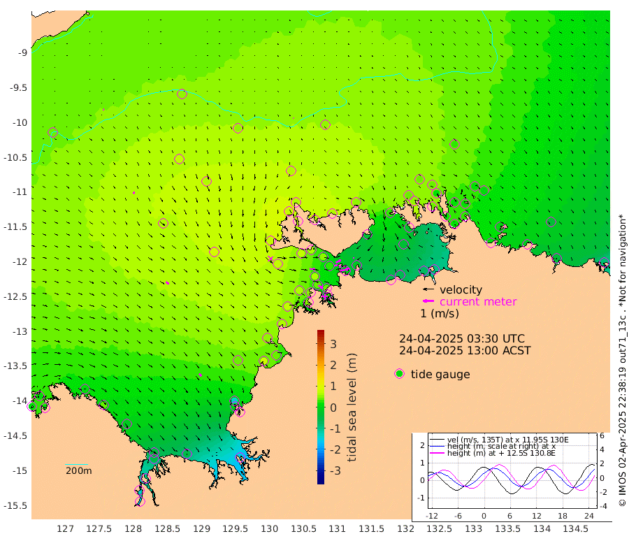 67cm/s 78T +4cm/s rms + 6cm/s 51T. Darwin_C1 52m 29cm/s 93T +4cm/s rms + 7cm/s -161T. Darwin_CW1 22m 26cm/s 72T +4cm/s rms + 8cm/s 61T. Darwin_CW2 34m 9cm/s 100T +3cm/s rms + 9cm/s 98T. Darwin_CW3 22m 17cm/s 86T +5cm/s rms + 7cm/s 88T. Darwin_C3 56m 51cm/s 64T +2cm/s rms + 9cm/s -126T. Darwin_CTbW 22m 3cm/s 171T +9cm/s rms + 2cm/s -110T. NWSLYN 196m 47cm/s 94T +1cm/s rms + 1cm/s -47T. DARBGF 30m 6cm/s 101T +7cm/s rms + 2cm/s -137T. ITFTIS 464m 17cm/s 159T +9cm/s rms + 1cm/s 74T. ITFMHB 146m 32cm/s 146T +4cm/s rms + 1cm/s -134T. ITFJBG 61m 34cm/s 132T +6cm/s rms + 4cm/s 121T. ITFFTB 108m 49cm/s 124T +4cm/s rms + 3cm/s 80T. NRSDAR 19m 9cm Carronade Island 1cm Guy Point 12cm Napier Broome Bay 1cm Lesueur Island -14cm Reveley Island 34cm Rocky Island -53cm Cape Domett -41cm Lacrosse Island -97cm Adolphus Island -138cm Pender Point -159cm Wyndham 58cm The Boxers 69cm Unnamed Shoal 50cm Loxton Shoal -55cm Pelican Island 67cm Calder Shoal 52cm Evans Shoal -151cm Quoin Island 1cm Port Keats -10cm Jones Point -144cm Catfish Island 36cm Cape Scott Offshore 79cm Cape Ford 40cm Anson Bay 57cm Goodrich Bank 52cm Peron Island North 67cm Point Jenny 69cm Native Point 63cm Fish Reef 55cm Tapa Bay 76cm Point Fawcett (Offshore) 55cm Burge Point 68cm Munkunuwa 78cm Beagle A 47cm Parsons Bank 57cm Fenton Patches 45cm Lynedoch Bank 28cm Hancox Shoal Area 45cm Nightcliff 30cm Darwin 37cm Charles Point Patches -5cm Glyde Point -56cm Chambers Bay -63cm Point Stuart -18cm Cape Hotham -40cm Christine Reef -74cm West Alligator Head -100cm East Field Island -28cm Two Hills Bay 83cm Newby Shoal -37cm Camp Point 57cm Medina Inlet South 77cm South Barlow Point 72cm St. Asaph Bay 62cm Cape Van Dieman 62cm Snake Bay 58cm Cache Point 38cm Echo Shoal 47cm Point Jahleel (Off) 26cm Cape Don 38cm Port Essington 45cm Smith Point - West 39cm NW Peacock Island 42cm North Of Jones Shoal 14cm Peacock Island 17cm Point David 41cm D'urville Point 24cm Money Shoal 13cm Copeland Island 23cm Cape Cockburn 20cm One Tree Point 8cm Hogmany Shoal 19cm New Year Island - West 18cm Grant Island 1cm Aurari Bay -13cm Cuthbert Point 5cm North Goulburn Island -35cm Paxie Shoal -42cm Entrance Island -79cm Yabooma Island