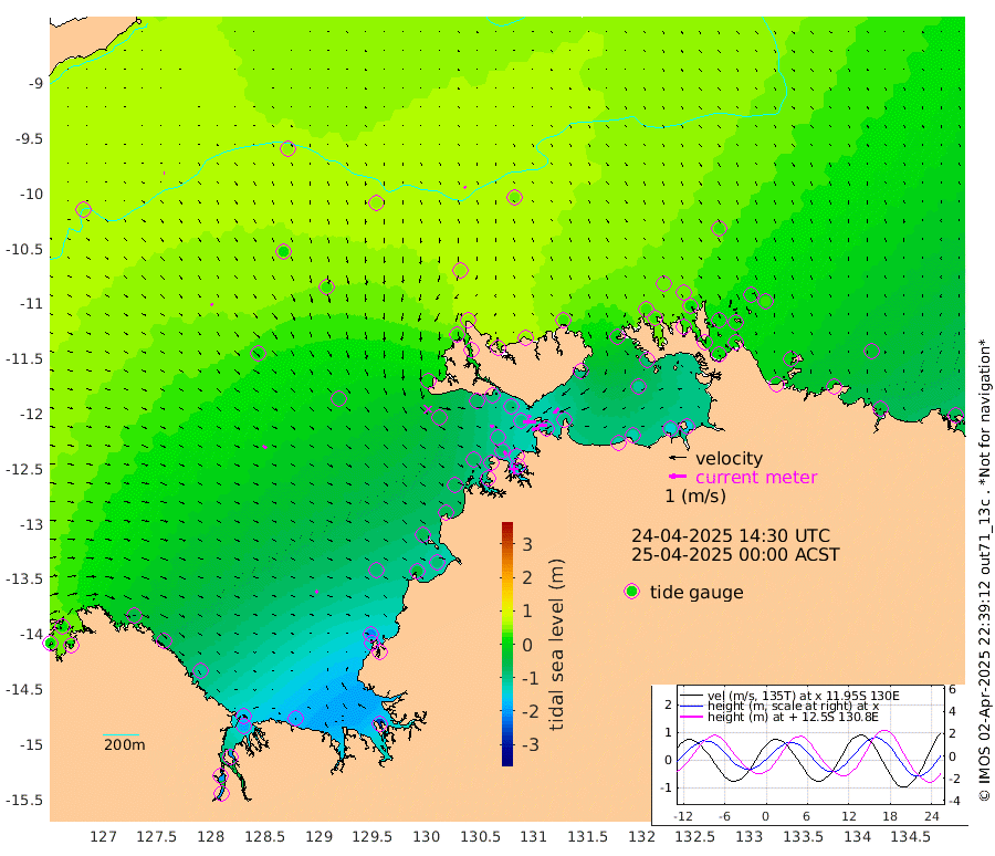 43cm/s -100T +4cm/s rms + 6cm/s 51T. Darwin_C1 52m 52cm/s -92T +4cm/s rms + 7cm/s -161T. Darwin_CW1 22m 34cm/s -107T +4cm/s rms + 8cm/s 61T. Darwin_CW2 34m 40cm/s -140T +3cm/s rms + 9cm/s 98T. Darwin_CW3 22m 65cm/s -90T +5cm/s rms + 7cm/s 88T. Darwin_C3 56m 16cm/s -114T +2cm/s rms + 9cm/s -126T. Darwin_CTbW 22m 12cm/s 157T +9cm/s rms + 2cm/s -110T. NWSLYN 196m 20cm/s 108T +1cm/s rms + 1cm/s -47T. DARBGF 30m 6cm/s 92T +7cm/s rms + 2cm/s -137T. ITFTIS 464m 11cm/s 141T +9cm/s rms + 1cm/s 74T. ITFMHB 146m 17cm/s 120T +4cm/s rms + 1cm/s -134T. ITFJBG 61m 25cm/s 123T +6cm/s rms + 4cm/s 121T. ITFFTB 108m 24cm/s 134T +4cm/s rms + 3cm/s 80T. NRSDAR 19m 16cm Carronade Island 17cm Guy Point 17cm Napier Broome Bay -51cm Lesueur Island -111cm Reveley Island -62cm Rocky Island -181cm Cape Domett -167cm Lacrosse Island -210cm Adolphus Island -199cm Pender Point -205cm Wyndham 20cm The Boxers 15cm Unnamed Shoal 54cm Loxton Shoal -178cm Pelican Island 32cm Calder Shoal 55cm Evans Shoal -265cm Quoin Island -153cm Port Keats -146cm Jones Point -205cm Catfish Island -81cm Cape Scott Offshore -42cm Cape Ford -88cm Anson Bay 48cm Goodrich Bank -66cm Peron Island North -60cm Point Jenny -60cm Native Point -73cm Fish Reef -79cm Tapa Bay 6cm Point Fawcett (Offshore) -101cm Burge Point -69cm Munkunuwa -52cm Beagle A -89cm Parsons Bank -101cm Fenton Patches 44cm Lynedoch Bank -98cm Hancox Shoal Area -113cm Nightcliff -116cm Darwin -89cm Charles Point Patches -104cm Glyde Point -116cm Chambers Bay -120cm Point Stuart -99cm Cape Hotham -105cm Christine Reef -136cm West Alligator Head -151cm East Field Island -85cm Two Hills Bay -23cm Newby Shoal -93cm Camp Point -79cm Medina Inlet South 13cm South Barlow Point 28cm St. Asaph Bay 50cm Cape Van Dieman 44cm Snake Bay 46cm Cache Point 54cm Echo Shoal 26cm Point Jahleel (Off) -9cm Cape Don 32cm Port Essington 33cm Smith Point - West 34cm NW Peacock Island 40cm North Of Jones Shoal 14cm Peacock Island 20cm Point David 34cm D'urville Point 33cm Money Shoal 17cm Copeland Island 20cm Cape Cockburn 20cm One Tree Point 25cm Hogmany Shoal 15cm New Year Island - West 16cm Grant Island -6cm Aurari Bay -10cm Cuthbert Point 4cm North Goulburn Island -26cm Paxie Shoal -41cm Entrance Island -64cm Yabooma Island