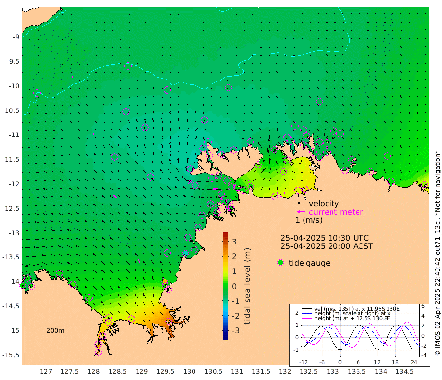 41cm/s -102T +4cm/s rms + 6cm/s 51T. Darwin_C1 52m 5cm/s -84T +4cm/s rms + 7cm/s -161T. Darwin_CW1 22m 23cm/s -107T +4cm/s rms + 8cm/s 61T. Darwin_CW2 34m 8cm/s 14T +3cm/s rms + 9cm/s 98T. Darwin_CW3 22m 6cm/s -118T +5cm/s rms + 7cm/s 88T. Darwin_C3 56m 33cm/s -117T +2cm/s rms + 9cm/s -126T. Darwin_CTbW 22m 7cm/s -25T +9cm/s rms + 2cm/s -110T. NWSLYN 196m 62cm/s -86T +1cm/s rms + 1cm/s -47T. DARBGF 30m 6cm/s -86T +7cm/s rms + 2cm/s -137T. ITFTIS 464m 20cm/s -25T +9cm/s rms + 1cm/s 74T. ITFMHB 146m 44cm/s -32T +4cm/s rms + 1cm/s -134T. ITFJBG 61m 46cm/s -50T +6cm/s rms + 4cm/s 121T. ITFFTB 108m 67cm/s -55T +4cm/s rms + 3cm/s 80T. NRSDAR 19m 9cm Carronade Island 15cm Guy Point 20cm Napier Broome Bay 5cm Lesueur Island 29cm Reveley Island 24cm Rocky Island 90cm Cape Domett 66cm Lacrosse Island 142cm Adolphus Island 216cm Pender Point 239cm Wyndham -67cm The Boxers -82cm Unnamed Shoal -53cm Loxton Shoal 69cm Pelican Island -79cm Calder Shoal -67cm Evans Shoal 216cm Quoin Island 12cm Port Keats 11cm Jones Point 183cm Catfish Island -49cm Cape Scott Offshore -134cm Cape Ford -58cm Anson Bay -79cm Goodrich Bank -72cm Peron Island North -88cm Point Jenny -88cm Native Point -83cm Fish Reef -77cm Tapa Bay -104cm Point Fawcett (Offshore) -64cm Burge Point -80cm Munkunuwa -100cm Beagle A -59cm Parsons Bank -73cm Fenton Patches -59cm Lynedoch Bank -45cm Hancox Shoal Area -56cm Nightcliff -40cm Darwin -59cm Charles Point Patches 4cm Glyde Point 65cm Chambers Bay 82cm Point Stuart 19cm Cape Hotham 55cm Christine Reef 99cm West Alligator Head 132cm East Field Island 36cm Two Hills Bay -88cm Newby Shoal 43cm Camp Point -70cm Medina Inlet South -99cm South Barlow Point -98cm St. Asaph Bay -86cm Cape Van Dieman -83cm Snake Bay -83cm Cache Point -48cm Echo Shoal -68cm Point Jahleel (Off) -39cm Cape Don -64cm Port Essington -74cm Smith Point - West -68cm NW Peacock Island -67cm North Of Jones Shoal -23cm Peacock Island -49cm Point David -72cm D'urville Point -53cm Money Shoal -46cm Copeland Island -60cm Cape Cockburn -47cm One Tree Point -53cm Hogmany Shoal -47cm New Year Island - West -46cm Grant Island -31cm Aurari Bay -15cm Cuthbert Point -34cm North Goulburn Island 13cm Paxie Shoal 13cm Entrance Island 46cm Yabooma Island