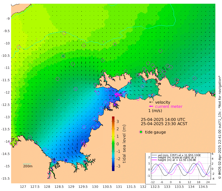 131cm/s -101T +4cm/s rms + 6cm/s 51T. Darwin_C1 52m 114cm/s -91T +4cm/s rms + 7cm/s -161T. Darwin_CW1 22m 83cm/s -107T +4cm/s rms + 8cm/s 61T. Darwin_CW2 34m 70cm/s -137T +3cm/s rms + 9cm/s 98T. Darwin_CW3 22m 131cm/s -91T +5cm/s rms + 7cm/s 88T. Darwin_C3 56m 71cm/s -115T +2cm/s rms + 9cm/s -126T. Darwin_CTbW 22m 11cm/s 166T +9cm/s rms + 2cm/s -110T. NWSLYN 196m 17cm/s -112T +1cm/s rms + 1cm/s -47T. DARBGF 30m 7cm/s 109T +7cm/s rms + 2cm/s -137T. ITFTIS 464m 8cm/s 126T +9cm/s rms + 1cm/s 74T. ITFMHB 146m 12cm/s 40T +4cm/s rms + 1cm/s -134T. ITFJBG 61m 13cm/s 106T +6cm/s rms + 4cm/s 121T. ITFFTB 108m 10cm/s -100T +4cm/s rms + 3cm/s 80T. NRSDAR 19m 47cm Carronade Island 50cm Guy Point 53cm Napier Broome Bay -69cm Lesueur Island -165cm Reveley Island -75cm Rocky Island -245cm Cape Domett -228cm Lacrosse Island -254cm Adolphus Island -185cm Pender Point -173cm Wyndham -13cm The Boxers -37cm Unnamed Shoal 57cm Loxton Shoal -262cm Pelican Island 2cm Calder Shoal 43cm Evans Shoal -292cm Quoin Island -258cm Port Keats -250cm Jones Point -208cm Catfish Island -177cm Cape Scott Offshore -189cm Cape Ford -199cm Anson Bay 19cm Goodrich Bank -171cm Peron Island North -174cm Point Jenny -174cm Native Point -188cm Fish Reef -202cm Tapa Bay -69cm Point Fawcett (Offshore) -225cm Burge Point -183cm Munkunuwa -158cm Beagle A -212cm Parsons Bank -224cm Fenton Patches 28cm Lynedoch Bank -216cm Hancox Shoal Area -235cm Nightcliff -240cm Darwin -209cm Charles Point Patches -184cm Glyde Point -156cm Chambers Bay -151cm Point Stuart -161cm Cape Hotham -145cm Christine Reef -163cm West Alligator Head -159cm East Field Island -128cm Two Hills Bay -98cm Newby Shoal -136cm Camp Point -193cm Medina Inlet South -55cm South Barlow Point -25cm St. Asaph Bay 16cm Cape Van Dieman 9cm Snake Bay 11cm Cache Point 72cm Echo Shoal -12cm Point Jahleel (Off) -59cm Cape Don -12cm Port Essington -14cm Smith Point - West -10cm NW Peacock Island 8cm North Of Jones Shoal 1cm Peacock Island -32cm Point David -16cm D'urville Point -4cm Money Shoal -35cm Copeland Island -46cm Cape Cockburn -27cm One Tree Point -40cm Hogmany Shoal -35cm New Year Island - West -37cm Grant Island -61cm Aurari Bay -70cm Cuthbert Point -53cm North Goulburn Island -79cm Paxie Shoal -103cm Entrance Island -124cm Yabooma Island