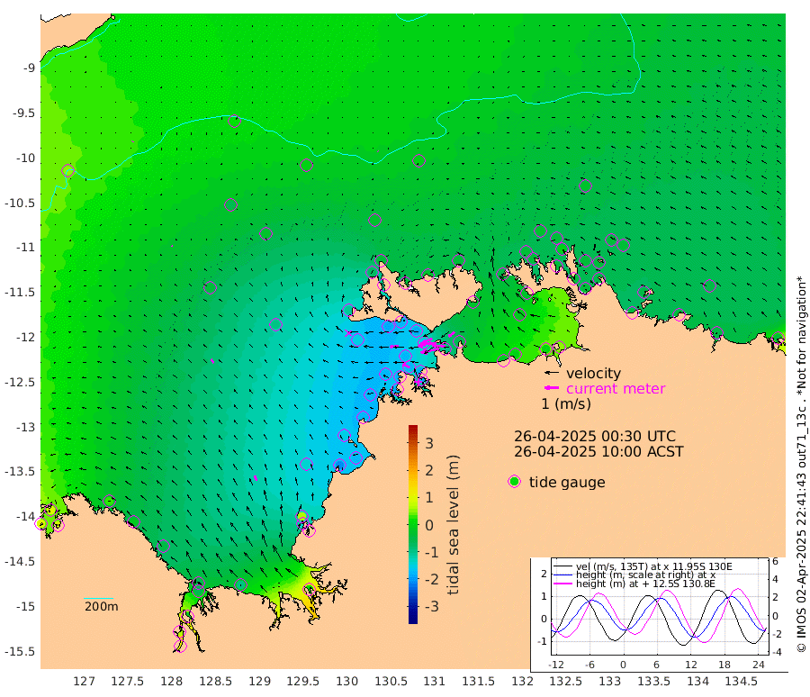 134cm/s -103T +4cm/s rms + 6cm/s 51T. Darwin_C1 52m 94cm/s -88T +4cm/s rms + 7cm/s -161T. Darwin_CW1 22m 96cm/s -108T +4cm/s rms + 8cm/s 61T. Darwin_CW2 34m 51cm/s -125T +3cm/s rms + 9cm/s 98T. Darwin_CW3 22m 116cm/s -92T +5cm/s rms + 7cm/s 88T. Darwin_C3 56m 81cm/s -115T +2cm/s rms + 9cm/s -126T. Darwin_CTbW 22m 4cm/s -45T +9cm/s rms + 2cm/s -110T. NWSLYN 196m 63cm/s -91T +1cm/s rms + 1cm/s -47T. DARBGF 30m 3cm/s -149T +7cm/s rms + 2cm/s -137T. ITFTIS 464m 10cm/s -8T +9cm/s rms + 1cm/s 74T. ITFMHB 146m 39cm/s -22T +4cm/s rms + 1cm/s -134T. ITFJBG 61m 29cm/s -40T +6cm/s rms + 4cm/s 121T. ITFFTB 108m 57cm/s -62T +4cm/s rms + 3cm/s 80T. NRSDAR 19m 91cm Carronade Island 95cm Guy Point 88cm Napier Broome Bay 24cm Lesueur Island -49cm Reveley Island -17cm Rocky Island -66cm Cape Domett -57cm Lacrosse Island -12cm Adolphus Island 66cm Pender Point 114cm Wyndham -35cm The Boxers -62cm Unnamed Shoal 21cm Loxton Shoal -96cm Pelican Island -32cm Calder Shoal -1cm Evans Shoal 11cm Quoin Island -144cm Port Keats -145cm Jones Point 67cm Catfish Island -141cm Cape Scott Offshore -213cm Cape Ford -171cm Anson Bay -27cm Goodrich Bank -151cm Peron Island North -174cm Point Jenny -174cm Native Point -173cm Fish Reef -184cm Tapa Bay -111cm Point Fawcett (Offshore) -189cm Burge Point -187cm Munkunuwa -152cm Beagle A -182cm Parsons Bank -178cm Fenton Patches -7cm Lynedoch Bank -165cm Hancox Shoal Area -181cm Nightcliff -182cm Darwin -176cm Charles Point Patches -97cm Glyde Point -23cm Chambers Bay -1cm Point Stuart -61cm Cape Hotham -22cm Christine Reef 9cm West Alligator Head 47cm East Field Island -26cm Two Hills Bay -94cm Newby Shoal -31cm Camp Point -177cm Medina Inlet South -99cm South Barlow Point -74cm St. Asaph Bay -37cm Cape Van Dieman -38cm Snake Bay -32cm Cache Point 51cm Echo Shoal -35cm Point Jahleel (Off) -54cm Cape Don -42cm Port Essington -44cm Smith Point - West -37cm NW Peacock Island -26cm North Of Jones Shoal -11cm Peacock Island -44cm Point David -45cm D'urville Point -29cm Money Shoal -43cm Copeland Island -54cm Cape Cockburn -40cm One Tree Point -42cm Hogmany Shoal -37cm New Year Island - West -42cm Grant Island -42cm Aurari Bay -45cm Cuthbert Point -48cm North Goulburn Island -45cm Paxie Shoal -47cm Entrance Island -37cm Yabooma Island