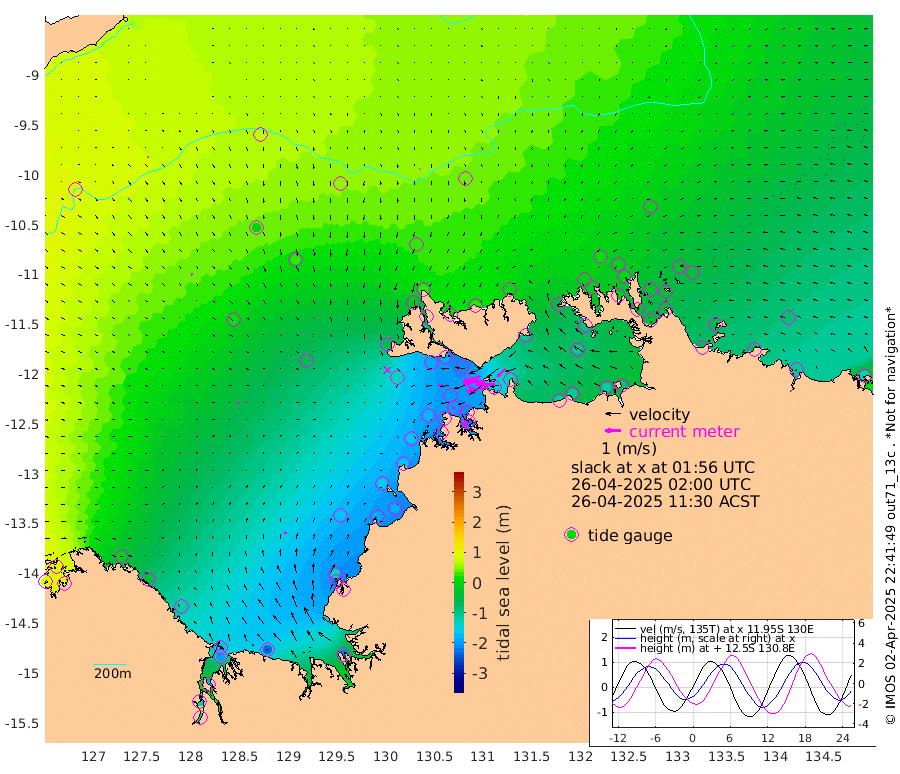 138cm/s -102T +4cm/s rms + 6cm/s 51T. Darwin_C1 52m 119cm/s -90T +4cm/s rms + 7cm/s -161T. Darwin_CW1 22m 93cm/s -107T +4cm/s rms + 8cm/s 61T. Darwin_CW2 34m 70cm/s -134T +3cm/s rms + 9cm/s 98T. Darwin_CW3 22m 144cm/s -91T +5cm/s rms + 7cm/s 88T. Darwin_C3 56m 75cm/s -115T +2cm/s rms + 9cm/s -126T. Darwin_CTbW 22m 3cm/s -168T +9cm/s rms + 2cm/s -110T. NWSLYN 196m 27cm/s -101T +1cm/s rms + 1cm/s -47T. DARBGF 30m 6cm/s 110T +7cm/s rms + 2cm/s -137T. ITFTIS 464m 7cm/s 98T +9cm/s rms + 1cm/s 74T. ITFMHB 146m 15cm/s 14T +4cm/s rms + 1cm/s -134T. ITFJBG 61m 9cm/s 73T +6cm/s rms + 4cm/s 121T. ITFFTB 108m 21cm/s -80T +4cm/s rms + 3cm/s 80T. NRSDAR 19m 96cm Carronade Island 94cm Guy Point 96cm Napier Broome Bay -1cm Lesueur Island -121cm Reveley Island -34cm Rocky Island -195cm Cape Domett -169cm Lacrosse Island -185cm Adolphus Island -127cm Pender Point -95cm Wyndham 11cm The Boxers -7cm Unnamed Shoal 77cm Loxton Shoal -225cm Pelican Island 25cm Calder Shoal 54cm Evans Shoal -220cm Quoin Island -223cm Port Keats -223cm Jones Point -133cm Catfish Island -161cm Cape Scott Offshore -184cm Cape Ford -191cm Anson Bay 31cm Goodrich Bank -154cm Peron Island North -167cm Point Jenny -165cm Native Point -171cm Fish Reef -192cm Tapa Bay -63cm Point Fawcett (Offshore) -208cm Burge Point -182cm Munkunuwa -130cm Beagle A -204cm Parsons Bank -193cm Fenton Patches 42cm Lynedoch Bank -202cm Hancox Shoal Area -213cm Nightcliff -222cm Darwin -197cm Charles Point Patches -155cm Glyde Point -121cm Chambers Bay -106cm Point Stuart -125cm Cape Hotham -109cm Christine Reef -113cm West Alligator Head -96cm East Field Island -93cm Two Hills Bay -56cm Newby Shoal -102cm Camp Point -183cm Medina Inlet South -47cm South Barlow Point -16cm St. Asaph Bay 25cm Cape Van Dieman 22cm Snake Bay 24cm Cache Point 101cm Echo Shoal 4cm Point Jahleel (Off) -49cm Cape Don -7cm Port Essington -6cm Smith Point - West -2cm NW Peacock Island 16cm North Of Jones Shoal 3cm Peacock Island -30cm Point David -9cm D'urville Point -2cm Money Shoal -33cm Copeland Island -39cm Cape Cockburn -24cm One Tree Point -37cm Hogmany Shoal -23cm New Year Island - West -31cm Grant Island -50cm Aurari Bay -69cm Cuthbert Point -51cm North Goulburn Island -87cm Paxie Shoal -103cm Entrance Island -127cm Yabooma Island