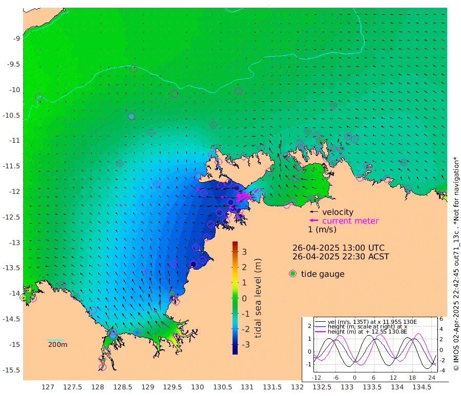 174cm/s -102T +4cm/s rms + 6cm/s 51T. Darwin_C1 52m 129cm/s -90T +4cm/s rms + 7cm/s -161T. Darwin_CW1 22m 119cm/s -108T +4cm/s rms + 8cm/s 61T. Darwin_CW2 34m 68cm/s -130T +3cm/s rms + 9cm/s 98T. Darwin_CW3 22m 151cm/s -91T +5cm/s rms + 7cm/s 88T. Darwin_C3 56m 105cm/s -115T +2cm/s rms + 9cm/s -126T. Darwin_CTbW 22m 3cm/s -130T +9cm/s rms + 2cm/s -110T. NWSLYN 196m 73cm/s -92T +1cm/s rms + 1cm/s -47T. DARBGF 30m 4cm/s -179T +7cm/s rms + 2cm/s -137T. ITFTIS 464m 10cm/s -8T +9cm/s rms + 1cm/s 74T. ITFMHB 146m 42cm/s -18T +4cm/s rms + 1cm/s -134T. ITFJBG 61m 29cm/s -42T +6cm/s rms + 4cm/s 121T. ITFFTB 108m 62cm/s -62T +4cm/s rms + 3cm/s 80T. NRSDAR 19m 54cm Carronade Island 61cm Guy Point 64cm Napier Broome Bay -62cm Lesueur Island -137cm Reveley Island -56cm Rocky Island -168cm Cape Domett -165cm Lacrosse Island -126cm Adolphus Island 0cm Pender Point 38cm Wyndham -85cm The Boxers -117cm Unnamed Shoal -7cm Loxton Shoal -203cm Pelican Island -79cm Calder Shoal -31cm Evans Shoal -103cm Quoin Island -252cm Port Keats -244cm Jones Point -37cm Catfish Island -226cm Cape Scott Offshore -330cm Cape Ford -258cm Anson Bay -64cm Goodrich Bank -243cm Peron Island North -258cm Point Jenny -259cm Native Point -267cm Fish Reef -276cm Tapa Bay -174cm Point Fawcett (Offshore) -288cm Burge Point -262cm Munkunuwa -247cm Beagle A -272cm Parsons Bank -287cm Fenton Patches -38cm Lynedoch Bank -260cm Hancox Shoal Area -283cm Nightcliff -286cm Darwin -276cm Charles Point Patches -182cm Glyde Point -91cm Chambers Bay -70cm Point Stuart -141cm Cape Hotham -90cm Christine Reef -64cm West Alligator Head -27cm East Field Island -93cm Two Hills Bay -182cm Newby Shoal -97cm Camp Point -266cm Medina Inlet South -156cm South Barlow Point -124cm St. Asaph Bay -73cm Cape Van Dieman -78cm Snake Bay -74cm Cache Point 20cm Echo Shoal -81cm Point Jahleel (Off) -104cm Cape Don -83cm Port Essington -90cm Smith Point - West -81cm NW Peacock Island -64cm North Of Jones Shoal -24cm Peacock Island -84cm Point David -90cm D'urville Point -65cm Money Shoal -84cm Copeland Island -111cm Cape Cockburn -80cm One Tree Point -98cm Hogmany Shoal -85cm New Year Island - West -87cm Grant Island -91cm Aurari Bay -91cm Cuthbert Point -92cm North Goulburn Island -78cm Paxie Shoal -93cm Entrance Island -81cm Yabooma Island