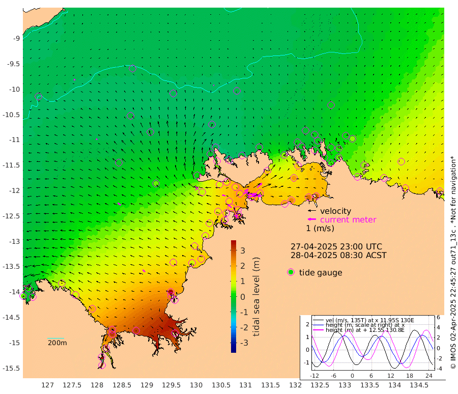 113cm/s 80T +4cm/s rms + 6cm/s 51T. Darwin_C1 52m 111cm/s 91T +4cm/s rms + 7cm/s -161T. Darwin_CW1 22m 63cm/s 70T +4cm/s rms + 8cm/s 61T. Darwin_CW2 34m 82cm/s 44T +3cm/s rms + 9cm/s 98T. Darwin_CW3 22m 121cm/s 90T +5cm/s rms + 7cm/s 88T. Darwin_C3 56m 51cm/s 66T +2cm/s rms + 9cm/s -126T. Darwin_CTbW 22m 10cm/s -10T +9cm/s rms + 2cm/s -110T. NWSLYN 196m 42cm/s -75T +1cm/s rms + 1cm/s -47T. DARBGF 30m 12cm/s -94T +7cm/s rms + 2cm/s -137T. ITFTIS 464m 17cm/s -54T +9cm/s rms + 1cm/s 74T. ITFMHB 146m 37cm/s -50T +4cm/s rms + 1cm/s -134T. ITFJBG 61m 47cm/s -58T +6cm/s rms + 4cm/s 121T. ITFFTB 108m 64cm/s -51T +4cm/s rms + 3cm/s 80T. NRSDAR 19m 26cm Carronade Island 38cm Guy Point 21cm Napier Broome Bay 105cm Lesueur Island 202cm Reveley Island 80cm Rocky Island 309cm Cape Domett 279cm Lacrosse Island 371cm Adolphus Island 369cm Pender Point 388cm Wyndham -18cm The Boxers -35cm Unnamed Shoal -61cm Loxton Shoal 312cm Pelican Island -40cm Calder Shoal -56cm Evans Shoal 460cm Quoin Island 247cm Port Keats 232cm Jones Point 403cm Catfish Island 133cm Cape Scott Offshore 90cm Cape Ford 138cm Anson Bay -54cm Goodrich Bank 113cm Peron Island North 101cm Point Jenny 96cm Native Point 109cm Fish Reef 129cm Tapa Bay 3cm Point Fawcett (Offshore) 151cm Burge Point 97cm Munkunuwa 71cm Beagle A 148cm Parsons Bank 143cm Fenton Patches -50cm Lynedoch Bank 170cm Hancox Shoal Area 168cm Nightcliff 183cm Darwin 149cm Charles Point Patches 180cm Glyde Point 222cm Chambers Bay 230cm Point Stuart 180cm Cape Hotham 210cm Christine Reef 257cm West Alligator Head 281cm East Field Island 173cm Two Hills Bay 37cm Newby Shoal 174cm Camp Point 119cm Medina Inlet South -15cm South Barlow Point -33cm St. Asaph Bay -59cm Cape Van Dieman -55cm Snake Bay -44cm Cache Point -62cm Echo Shoal -16cm Point Jahleel (Off) 50cm Cape Don -11cm Port Essington -11cm Smith Point - West -10cm NW Peacock Island -27cm North Of Jones Shoal -8cm Peacock Island 19cm Point David -9cm D'urville Point -7cm Money Shoal 26cm Copeland Island 35cm Cape Cockburn 17cm One Tree Point 48cm Hogmany Shoal 22cm New Year Island - West 29cm Grant Island 54cm Aurari Bay 89cm Cuthbert Point 53cm North Goulburn Island 111cm Paxie Shoal 136cm Entrance Island 185cm Yabooma Island