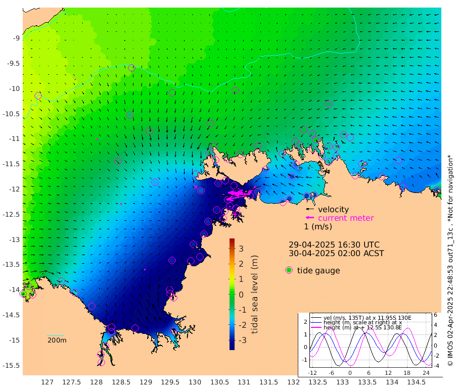 264cm/s -101T +4cm/s rms + 6cm/s 51T. Darwin_C1 52m 215cm/s -91T +4cm/s rms + 7cm/s -161T. Darwin_CW1 22m 131cm/s -106T +4cm/s rms + 8cm/s 61T. Darwin_CW2 34m 133cm/s -136T +3cm/s rms + 9cm/s 98T. Darwin_CW3 22m 216cm/s -90T +5cm/s rms + 7cm/s 88T. Darwin_C3 56m 148cm/s -115T +2cm/s rms + 9cm/s -126T. Darwin_CTbW 22m 9cm/s -161T +9cm/s rms + 2cm/s -110T. NWSLYN 196m 24cm/s -115T +1cm/s rms + 1cm/s -47T. DARBGF 30m 12cm/s 126T +7cm/s rms + 2cm/s -137T. ITFTIS 464m 14cm/s 137T +9cm/s rms + 1cm/s 74T. ITFMHB 146m 16cm/s 66T +4cm/s rms + 1cm/s -134T. ITFJBG 61m 25cm/s 115T +6cm/s rms + 4cm/s 121T. ITFFTB 108m 14cm/s -127T +4cm/s rms + 3cm/s 80T. NRSDAR 19m 30cm Carronade Island 30cm Guy Point 30cm Napier Broome Bay -129cm Lesueur Island -265cm Reveley Island -126cm Rocky Island -389cm Cape Domett -351cm Lacrosse Island -405cm Adolphus Island -319cm Pender Point -301cm Wyndham -60cm The Boxers -84cm Unnamed Shoal 36cm Loxton Shoal -412cm Pelican Island -30cm Calder Shoal 16cm Evans Shoal -472cm Quoin Island -402cm Port Keats -386cm Jones Point -371cm Catfish Island -282cm Cape Scott Offshore -324cm Cape Ford -313cm Anson Bay -14cm Goodrich Bank -286cm Peron Island North -275cm Point Jenny -273cm Native Point -297cm Fish Reef -314cm Tapa Bay -139cm Point Fawcett (Offshore) -347cm Burge Point -283cm Munkunuwa -239cm Beagle A -341cm Parsons Bank -330cm Fenton Patches -2cm Lynedoch Bank -339cm Hancox Shoal Area -347cm Nightcliff -382cm Darwin -345cm Charles Point Patches -297cm Glyde Point -249cm Chambers Bay -253cm Point Stuart -263cm Cape Hotham -238cm Christine Reef -268cm West Alligator Head -257cm East Field Island -226cm Two Hills Bay -175cm Newby Shoal -224cm Camp Point -310cm Medina Inlet South -117cm South Barlow Point -71cm St. Asaph Bay -18cm Cape Van Dieman -32cm Snake Bay -30cm Cache Point 73cm Echo Shoal -59cm Point Jahleel (Off) -138cm Cape Don -76cm Port Essington -75cm Smith Point - West -73cm NW Peacock Island -43cm North Of Jones Shoal -18cm Peacock Island -108cm Point David -82cm D'urville Point -67cm Money Shoal -112cm Copeland Island -150cm Cape Cockburn -105cm One Tree Point -146cm Hogmany Shoal -110cm New Year Island - West -120cm Grant Island -142cm Aurari Bay -177cm Cuthbert Point -146cm North Goulburn Island -187cm Paxie Shoal -209cm Entrance Island -236cm Yabooma Island