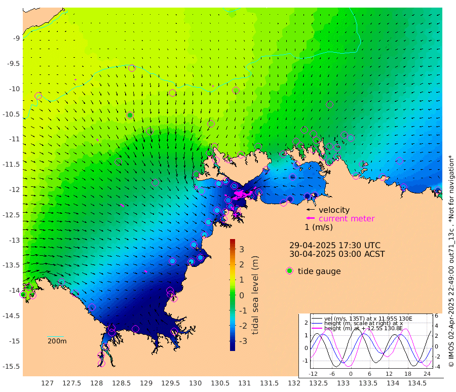 191cm/s -101T +4cm/s rms + 6cm/s 51T. Darwin_C1 52m 166cm/s -92T +4cm/s rms + 7cm/s -161T. Darwin_CW1 22m 72cm/s -105T +4cm/s rms + 8cm/s 61T. Darwin_CW2 34m 123cm/s -138T +3cm/s rms + 9cm/s 98T. Darwin_CW3 22m 150cm/s -90T +5cm/s rms + 7cm/s 88T. Darwin_C3 56m 99cm/s -116T +2cm/s rms + 9cm/s -126T. Darwin_CTbW 22m 12cm/s 179T +9cm/s rms + 2cm/s -110T. NWSLYN 196m 37cm/s 108T +1cm/s rms + 1cm/s -47T. DARBGF 30m 15cm/s 112T +7cm/s rms + 2cm/s -137T. ITFTIS 464m 26cm/s 147T +9cm/s rms + 1cm/s 74T. ITFMHB 146m 36cm/s 124T +4cm/s rms + 1cm/s -134T. ITFJBG 61m 53cm/s 124T +6cm/s rms + 4cm/s 121T. ITFFTB 108m 52cm/s 135T +4cm/s rms + 3cm/s 80T. NRSDAR 19m -8cm Carronade Island -10cm Guy Point -11cm Napier Broome Bay -128cm Lesueur Island -240cm Reveley Island -113cm Rocky Island -374cm Cape Domett -333cm Lacrosse Island -430cm Adolphus Island -408cm Pender Point -421cm Wyndham -5cm The Boxers -20cm Unnamed Shoal 69cm Loxton Shoal -380cm Pelican Island 31cm Calder Shoal 59cm Evans Shoal -522cm Quoin Island -327cm Port Keats -315cm Jones Point -455cm Catfish Island -186cm Cape Scott Offshore -162cm Cape Ford -202cm Anson Bay 40cm Goodrich Bank -177cm Peron Island North -160cm Point Jenny -157cm Native Point -178cm Fish Reef -195cm Tapa Bay -36cm Point Fawcett (Offshore) -230cm Burge Point -158cm Munkunuwa -126cm Beagle A -229cm Parsons Bank -217cm Fenton Patches 38cm Lynedoch Bank -242cm Hancox Shoal Area -237cm Nightcliff -271cm Darwin -227cm Charles Point Patches -250cm Glyde Point -268cm Chambers Bay -287cm Point Stuart -241cm Cape Hotham -253cm Christine Reef -314cm West Alligator Head -332cm East Field Island -228cm Two Hills Bay -88cm Newby Shoal -225cm Camp Point -190cm Medina Inlet South -21cm South Barlow Point 14cm St. Asaph Bay 42cm Cape Van Dieman 30cm Snake Bay 26cm Cache Point 89cm Echo Shoal -8cm Point Jahleel (Off) -94cm Cape Don -25cm Port Essington -22cm Smith Point - West -26cm NW Peacock Island 5cm North Of Jones Shoal -2cm Peacock Island -74cm Point David -32cm D'urville Point -30cm Money Shoal -80cm Copeland Island -106cm Cape Cockburn -68cm One Tree Point -113cm Hogmany Shoal -78cm New Year Island - West -87cm Grant Island -120cm Aurari Bay -164cm Cuthbert Point -119cm North Goulburn Island -183cm Paxie Shoal -213cm Entrance Island -261cm Yabooma Island