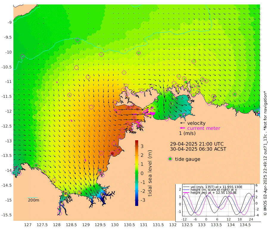 221cm/s 78T +4cm/s rms + 6cm/s 51T. Darwin_C1 52m 160cm/s 89T +4cm/s rms + 7cm/s -161T. Darwin_CW1 22m 139cm/s 74T +4cm/s rms + 8cm/s 61T. Darwin_CW2 34m 82cm/s 53T +3cm/s rms + 9cm/s 98T. Darwin_CW3 22m 187cm/s 88T +5cm/s rms + 7cm/s 88T. Darwin_C3 56m 125cm/s 65T +2cm/s rms + 9cm/s -126T. Darwin_CTbW 22m 6cm/s 134T +9cm/s rms + 2cm/s -110T. NWSLYN 196m 98cm/s 88T +1cm/s rms + 1cm/s -47T. DARBGF 30m 3cm/s 109T +7cm/s rms + 2cm/s -137T. ITFTIS 464m 27cm/s 176T +9cm/s rms + 1cm/s 74T. ITFMHB 146m 56cm/s 164T +4cm/s rms + 1cm/s -134T. ITFJBG 61m 46cm/s 143T +6cm/s rms + 4cm/s 121T. ITFFTB 108m 96cm/s 116T +4cm/s rms + 3cm/s 80T. NRSDAR 19m -112cm Carronade Island -112cm Guy Point -118cm Napier Broome Bay -1cm Lesueur Island 115cm Reveley Island 57cm Rocky Island 132cm Cape Domett 126cm Lacrosse Island 66cm Adolphus Island -69cm Pender Point -137cm Wyndham 76cm The Boxers 92cm Unnamed Shoal 15cm Loxton Shoal 175cm Pelican Island 85cm Calder Shoal 45cm Evans Shoal 52cm Quoin Island 236cm Port Keats 227cm Jones Point -47cm Catfish Island 240cm Cape Scott Offshore 348cm Cape Ford 274cm Anson Bay 68cm Goodrich Bank 258cm Peron Island North 268cm Point Jenny 267cm Native Point 278cm Fish Reef 287cm Tapa Bay 197cm Point Fawcett (Offshore) 291cm Burge Point 300cm Munkunuwa 242cm Beagle A 284cm Parsons Bank 276cm Fenton Patches 38cm Lynedoch Bank 258cm Hancox Shoal Area 284cm Nightcliff 290cm Darwin 284cm Charles Point Patches 150cm Glyde Point 29cm Chambers Bay 0cm Point Stuart 99cm Cape Hotham 31cm Christine Reef -11cm West Alligator Head -71cm East Field Island 46cm Two Hills Bay 161cm Newby Shoal 42cm Camp Point 287cm Medina Inlet South 176cm South Barlow Point 143cm St. Asaph Bay 79cm Cape Van Dieman 83cm Snake Bay 74cm Cache Point -22cm Echo Shoal 76cm Point Jahleel (Off) 89cm Cape Don 77cm Port Essington 82cm Smith Point - West 67cm NW Peacock Island 64cm North Of Jones Shoal 23cm Peacock Island 55cm Point David 76cm D'urville Point 46cm Money Shoal 53cm Copeland Island 73cm Cape Cockburn 59cm One Tree Point 57cm Hogmany Shoal 48cm New Year Island - West 54cm Grant Island 43cm Aurari Bay 36cm Cuthbert Point 51cm North Goulburn Island 27cm Paxie Shoal 22cm Entrance Island -3cm Yabooma Island