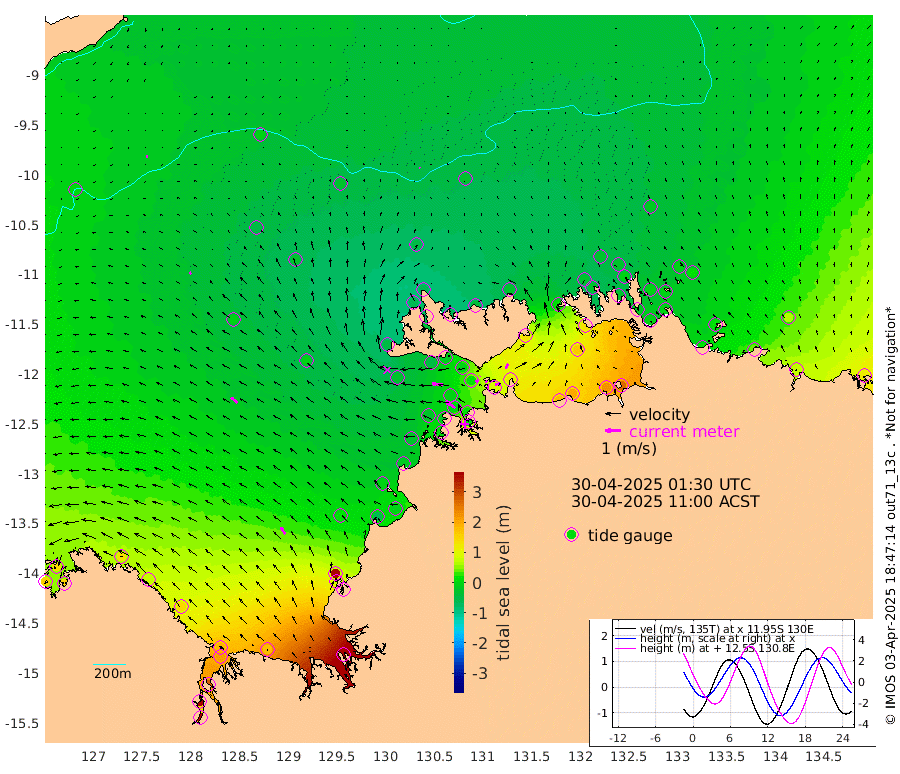 4cm/s 99T +4cm/s rms + 6cm/s 51T. Darwin_C1 52m 33cm/s 86T +4cm/s rms + 7cm/s -161T. Darwin_CW1 22m 20cm/s -111T +4cm/s rms + 8cm/s 61T. Darwin_CW2 34m 35cm/s 32T +3cm/s rms + 9cm/s 98T. Darwin_CW3 22m 11cm/s 112T +5cm/s rms + 7cm/s 88T. Darwin_C3 56m 4cm/s -146T +2cm/s rms + 9cm/s -126T. Darwin_CTbW 22m 6cm/s -5T +9cm/s rms + 2cm/s -110T. NWSLYN 196m 69cm/s -85T +1cm/s rms + 1cm/s -47T. DARBGF 30m 8cm/s -88T +7cm/s rms + 2cm/s -137T. ITFTIS 464m 16cm/s -34T +9cm/s rms + 1cm/s 74T. ITFMHB 146m 52cm/s -32T +4cm/s rms + 1cm/s -134T. ITFJBG 61m 50cm/s -50T +6cm/s rms + 4cm/s 121T. ITFFTB 108m 79cm/s -55T +4cm/s rms + 3cm/s 80T. NRSDAR 19m 142cm Carronade Island 155cm Guy Point 146cm Napier Broome Bay 129cm Lesueur Island 136cm Reveley Island 70cm Rocky Island 207cm Cape Domett 189cm Lacrosse Island 277cm Adolphus Island 355cm Pender Point 406cm Wyndham -8cm The Boxers -47cm Unnamed Shoal -10cm Loxton Shoal 176cm Pelican Island -28cm Calder Shoal -28cm Evans Shoal 351cm Quoin Island 102cm Port Keats 83cm Jones Point 382cm Catfish Island 17cm Cape Scott Offshore -65cm Cape Ford -1cm Anson Bay -47cm Goodrich Bank -10cm Peron Island North -20cm Point Jenny -24cm Native Point -23cm Fish Reef -14cm Tapa Bay -55cm Point Fawcett (Offshore) 1cm Burge Point -47cm Munkunuwa -31cm Beagle A -7cm Parsons Bank -1cm Fenton Patches -31cm Lynedoch Bank 22cm Hancox Shoal Area 14cm Nightcliff 16cm Darwin -2cm Charles Point Patches 80cm Glyde Point 174cm Chambers Bay 192cm Point Stuart 105cm Cape Hotham 168cm Christine Reef 220cm West Alligator Head 265cm East Field Island 129cm Two Hills Bay -3cm Newby Shoal 126cm Camp Point -22cm Medina Inlet South -69cm South Barlow Point -62cm St. Asaph Bay -56cm Cape Van Dieman -58cm Snake Bay -40cm Cache Point 8cm Echo Shoal -24cm Point Jahleel (Off) 16cm Cape Don -28cm Port Essington -30cm Smith Point - West -25cm NW Peacock Island -29cm North Of Jones Shoal -11cm Peacock Island -12cm Point David -31cm D'urville Point -16cm Money Shoal -8cm Copeland Island -4cm Cape Cockburn -9cm One Tree Point 14cm Hogmany Shoal -2cm New Year Island - West -1cm Grant Island 12cm Aurari Bay 43cm Cuthbert Point 15cm North Goulburn Island 65cm Paxie Shoal 77cm Entrance Island 115cm Yabooma Island