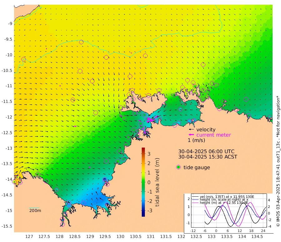113cm/s -100T +4cm/s rms + 6cm/s 51T. Darwin_C1 52m 96cm/s -92T +4cm/s rms + 7cm/s -161T. Darwin_CW1 22m 44cm/s -107T +4cm/s rms + 8cm/s 61T. Darwin_CW2 34m 77cm/s -135T +3cm/s rms + 9cm/s 98T. Darwin_CW3 22m 92cm/s -90T +5cm/s rms + 7cm/s 88T. Darwin_C3 56m 52cm/s -116T +2cm/s rms + 9cm/s -126T. Darwin_CTbW 22m 13cm/s 142T +9cm/s rms + 2cm/s -110T. NWSLYN 196m 36cm/s 102T +1cm/s rms + 1cm/s -47T. DARBGF 30m 16cm/s 51T +7cm/s rms + 2cm/s -137T. ITFTIS 464m 17cm/s 84T +9cm/s rms + 1cm/s 74T. ITFMHB 146m 26cm/s 111T +4cm/s rms + 1cm/s -134T. ITFJBG 61m 39cm/s 106T +6cm/s rms + 4cm/s 121T. ITFFTB 108m 42cm/s 136T +4cm/s rms + 3cm/s 80T. NRSDAR 19m 84cm Carronade Island 79cm Guy Point 89cm Napier Broome Bay 27cm Lesueur Island -103cm Reveley Island -49cm Rocky Island -182cm Cape Domett -152cm Lacrosse Island -222cm Adolphus Island -226cm Pender Point -223cm Wyndham 101cm The Boxers 99cm Unnamed Shoal 133cm Loxton Shoal -196cm Pelican Island 115cm Calder Shoal 116cm Evans Shoal -300cm Quoin Island -136cm Port Keats -141cm Jones Point -250cm Catfish Island -48cm Cape Scott Offshore 18cm Cape Ford -55cm Anson Bay 114cm Goodrich Bank -33cm Peron Island North -22cm Point Jenny -19cm Native Point -31cm Fish Reef -46cm Tapa Bay 67cm Point Fawcett (Offshore) -63cm Burge Point -47cm Munkunuwa 13cm Beagle A -78cm Parsons Bank -52cm Fenton Patches 109cm Lynedoch Bank -86cm Hancox Shoal Area -80cm Nightcliff -88cm Darwin -47cm Charles Point Patches -93cm Glyde Point -132cm Chambers Bay -148cm Point Stuart -98cm Cape Hotham -119cm Christine Reef -172cm West Alligator Head -184cm East Field Island -96cm Two Hills Bay 69cm Newby Shoal -83cm Camp Point -42cm Medina Inlet South 76cm South Barlow Point 96cm St. Asaph Bay 115cm Cape Van Dieman 113cm Snake Bay 108cm Cache Point 138cm Echo Shoal 77cm Point Jahleel (Off) 17cm Cape Don 71cm Port Essington 70cm Smith Point - West 70cm NW Peacock Island 90cm North Of Jones Shoal 29cm Peacock Island 35cm Point David 66cm D'urville Point 73cm Money Shoal 28cm Copeland Island 38cm Cape Cockburn 42cm One Tree Point 29cm Hogmany Shoal 43cm New Year Island - West 33cm Grant Island 2cm Aurari Bay -27cm Cuthbert Point 7cm North Goulburn Island -45cm Paxie Shoal -75cm Entrance Island -119cm Yabooma Island