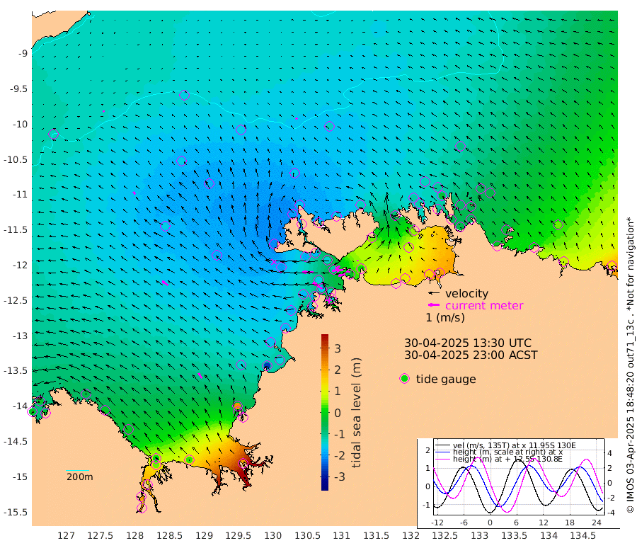 66cm/s -103T +4cm/s rms + 6cm/s 51T. Darwin_C1 52m 34cm/s -84T +4cm/s rms + 7cm/s -161T. Darwin_CW1 22m 61cm/s -106T +4cm/s rms + 8cm/s 61T. Darwin_CW2 34m 10cm/s -11T +3cm/s rms + 9cm/s 98T. Darwin_CW3 22m 63cm/s -94T +5cm/s rms + 7cm/s 88T. Darwin_C3 56m 44cm/s -116T +2cm/s rms + 9cm/s -126T. Darwin_CTbW 22m 16cm/s -40T +9cm/s rms + 2cm/s -110T. NWSLYN 196m 99cm/s -88T +1cm/s rms + 1cm/s -47T. DARBGF 30m 15cm/s -119T +7cm/s rms + 2cm/s -137T. ITFTIS 464m 27cm/s -37T +9cm/s rms + 1cm/s 74T. ITFMHB 146m 54cm/s -33T +4cm/s rms + 1cm/s -134T. ITFJBG 61m 64cm/s -56T +6cm/s rms + 4cm/s 121T. ITFFTB 108m 103cm/s -56T +4cm/s rms + 3cm/s 80T. NRSDAR 19m -23cm Carronade Island -21cm Guy Point -24cm Napier Broome Bay -45cm Lesueur Island -13cm Reveley Island -16cm Rocky Island 43cm Cape Domett 21cm Lacrosse Island 123cm Adolphus Island 215cm Pender Point 259cm Wyndham -157cm The Boxers -155cm Unnamed Shoal -147cm Loxton Shoal 31cm Pelican Island -178cm Calder Shoal -148cm Evans Shoal 195cm Quoin Island -63cm Port Keats -45cm Jones Point 225cm Catfish Island -142cm Cape Scott Offshore -270cm Cape Ford -157cm Anson Bay -156cm Goodrich Bank -164cm Peron Island North -180cm Point Jenny -182cm Native Point -178cm Fish Reef -171cm Tapa Bay -210cm Point Fawcett (Offshore) -159cm Burge Point -180cm Munkunuwa -192cm Beagle A -137cm Parsons Bank -157cm Fenton Patches -131cm Lynedoch Bank -114cm Hancox Shoal Area -141cm Nightcliff -135cm Darwin -168cm Charles Point Patches -30cm Glyde Point 88cm Chambers Bay 124cm Point Stuart 12cm Cape Hotham 73cm Christine Reef 151cm West Alligator Head 203cm East Field Island 47cm Two Hills Bay -189cm Newby Shoal 38cm Camp Point -176cm Medina Inlet South -200cm South Barlow Point -196cm St. Asaph Bay -164cm Cape Van Dieman -163cm Snake Bay -155cm Cache Point -126cm Echo Shoal -128cm Point Jahleel (Off) -81cm Cape Don -117cm Port Essington -121cm Smith Point - West -108cm NW Peacock Island -129cm North Of Jones Shoal -43cm Peacock Island -61cm Point David -110cm D'urville Point -94cm Money Shoal -51cm Copeland Island -75cm Cape Cockburn -73cm One Tree Point -55cm Hogmany Shoal -65cm New Year Island - West -59cm Grant Island -18cm Aurari Bay 13cm Cuthbert Point -31cm North Goulburn Island 34cm Paxie Shoal 69cm Entrance Island 129cm Yabooma Island