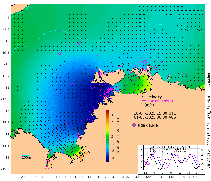 235cm/s -102T +4cm/s rms + 6cm/s 51T. Darwin_C1 52m 164cm/s -89T +4cm/s rms + 7cm/s -161T. Darwin_CW1 22m 149cm/s -108T +4cm/s rms + 8cm/s 61T. Darwin_CW2 34m 85cm/s -125T +3cm/s rms + 9cm/s 98T. Darwin_CW3 22m 192cm/s -91T +5cm/s rms + 7cm/s 88T. Darwin_C3 56m 137cm/s -115T +2cm/s rms + 9cm/s -126T. Darwin_CTbW 22m 11cm/s -60T +9cm/s rms + 2cm/s -110T. NWSLYN 196m 98cm/s -93T +1cm/s rms + 1cm/s -47T. DARBGF 30m 10cm/s -152T +7cm/s rms + 2cm/s -137T. ITFTIS 464m 15cm/s -24T +9cm/s rms + 1cm/s 74T. ITFMHB 146m 49cm/s -22T +4cm/s rms + 1cm/s -134T. ITFJBG 61m 41cm/s -50T +6cm/s rms + 4cm/s 121T. ITFFTB 108m 80cm/s -62T +4cm/s rms + 3cm/s 80T. NRSDAR 19m 31cm Carronade Island 33cm Guy Point 29cm Napier Broome Bay -88cm Lesueur Island -154cm Reveley Island -81cm Rocky Island -180cm Cape Domett -174cm Lacrosse Island -117cm Adolphus Island 17cm Pender Point 72cm Wyndham -153cm The Boxers -172cm Unnamed Shoal -87cm Loxton Shoal -210cm Pelican Island -154cm Calder Shoal -104cm Evans Shoal -98cm Quoin Island -284cm Port Keats -263cm Jones Point -11cm Catfish Island -282cm Cape Scott Offshore -411cm Cape Ford -316cm Anson Bay -131cm Goodrich Bank -305cm Peron Island North -310cm Point Jenny -311cm Native Point -323cm Fish Reef -328cm Tapa Bay -253cm Point Fawcett (Offshore) -336cm Burge Point -323cm Munkunuwa -295cm Beagle A -320cm Parsons Bank -321cm Fenton Patches -102cm Lynedoch Bank -295cm Hancox Shoal Area -321cm Nightcliff -339cm Darwin -343cm Charles Point Patches -196cm Glyde Point -62cm Chambers Bay -35cm Point Stuart -139cm Cape Hotham -66cm Christine Reef -21cm West Alligator Head 35cm East Field Island -87cm Two Hills Bay -247cm Newby Shoal -90cm Camp Point -331cm Medina Inlet South -234cm South Barlow Point -200cm St. Asaph Bay -141cm Cape Van Dieman -150cm Snake Bay -139cm Cache Point -44cm Echo Shoal -135cm Point Jahleel (Off) -145cm Cape Don -139cm Port Essington -141cm Smith Point - West -129cm NW Peacock Island -128cm North Of Jones Shoal -45cm Peacock Island -115cm Point David -137cm D'urville Point -114cm Money Shoal -109cm Copeland Island -151cm Cape Cockburn -122cm One Tree Point -130cm Hogmany Shoal -116cm New Year Island - West -119cm Grant Island -100cm Aurari Bay -94cm Cuthbert Point -112cm North Goulburn Island -82cm Paxie Shoal -66cm Entrance Island -32cm Yabooma Island