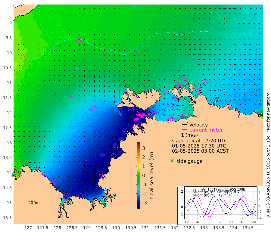 275cm/s -101T +4cm/s rms + 6cm/s 51T. Darwin_C1 52m 206cm/s -90T +4cm/s rms + 7cm/s -161T. Darwin_CW1 22m 128cm/s -106T +4cm/s rms + 8cm/s 61T. Darwin_CW2 34m 131cm/s -134T +3cm/s rms + 9cm/s 98T. Darwin_CW3 22m 204cm/s -90T +5cm/s rms + 7cm/s 88T. Darwin_C3 56m 156cm/s -115T +2cm/s rms + 9cm/s -126T. Darwin_CTbW 22m 6cm/s -113T +9cm/s rms + 2cm/s -110T. NWSLYN 196m 35cm/s -104T +1cm/s rms + 1cm/s -47T. DARBGF 30m 10cm/s 137T +7cm/s rms + 2cm/s -137T. ITFTIS 464m 8cm/s 128T +9cm/s rms + 1cm/s 74T. ITFMHB 146m 13cm/s 41T +4cm/s rms + 1cm/s -134T. ITFJBG 61m 13cm/s 107T +6cm/s rms + 4cm/s 121T. ITFFTB 108m 21cm/s -93T +4cm/s rms + 3cm/s 80T. NRSDAR 19m 12cm Carronade Island 11cm Guy Point 5cm Napier Broome Bay -123cm Lesueur Island -235cm Reveley Island -118cm Rocky Island -337cm Cape Domett -305cm Lacrosse Island -337cm Adolphus Island -261cm Pender Point -240cm Wyndham -82cm The Boxers -102cm Unnamed Shoal 0cm Loxton Shoal -357cm Pelican Island -57cm Calder Shoal -18cm Evans Shoal -397cm Quoin Island -358cm Port Keats -339cm Jones Point -332cm Catfish Island -269cm Cape Scott Offshore -301cm Cape Ford -297cm Anson Bay -40cm Goodrich Bank -276cm Peron Island North -262cm Point Jenny -259cm Native Point -282cm Fish Reef -294cm Tapa Bay -157cm Point Fawcett (Offshore) -318cm Burge Point -271cm Munkunuwa -226cm Beagle A -315cm Parsons Bank -297cm Fenton Patches -27cm Lynedoch Bank -308cm Hancox Shoal Area -316cm Nightcliff -351cm Darwin -323cm Charles Point Patches -264cm Glyde Point -209cm Chambers Bay -211cm Point Stuart -231cm Cape Hotham -199cm Christine Reef -222cm West Alligator Head -202cm East Field Island -200cm Two Hills Bay -178cm Newby Shoal -192cm Camp Point -295cm Medina Inlet South -134cm South Barlow Point -93cm St. Asaph Bay -45cm Cape Van Dieman -58cm Snake Bay -55cm Cache Point 38cm Echo Shoal -76cm Point Jahleel (Off) -142cm Cape Don -92cm Port Essington -90cm Smith Point - West -87cm NW Peacock Island -67cm North Of Jones Shoal -26cm Peacock Island -113cm Point David -95cm D'urville Point -81cm Money Shoal -114cm Copeland Island -156cm Cape Cockburn -114cm One Tree Point -149cm Hogmany Shoal -115cm New Year Island - West -124cm Grant Island -135cm Aurari Bay -164cm Cuthbert Point -144cm North Goulburn Island -173cm Paxie Shoal -178cm Entrance Island -193cm Yabooma Island